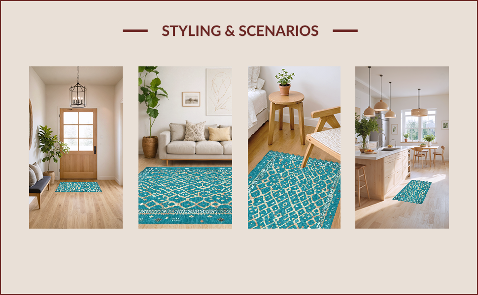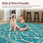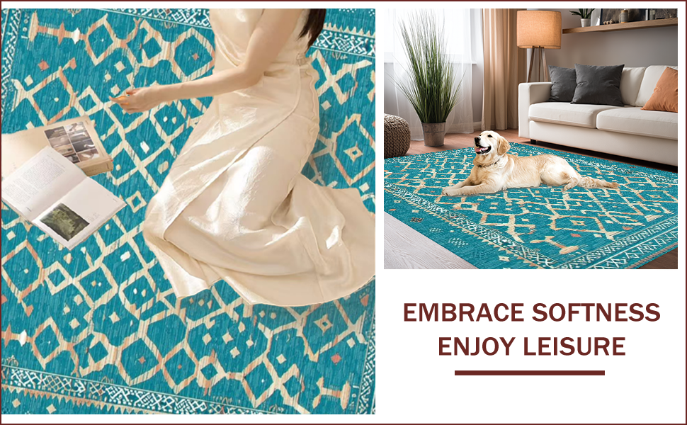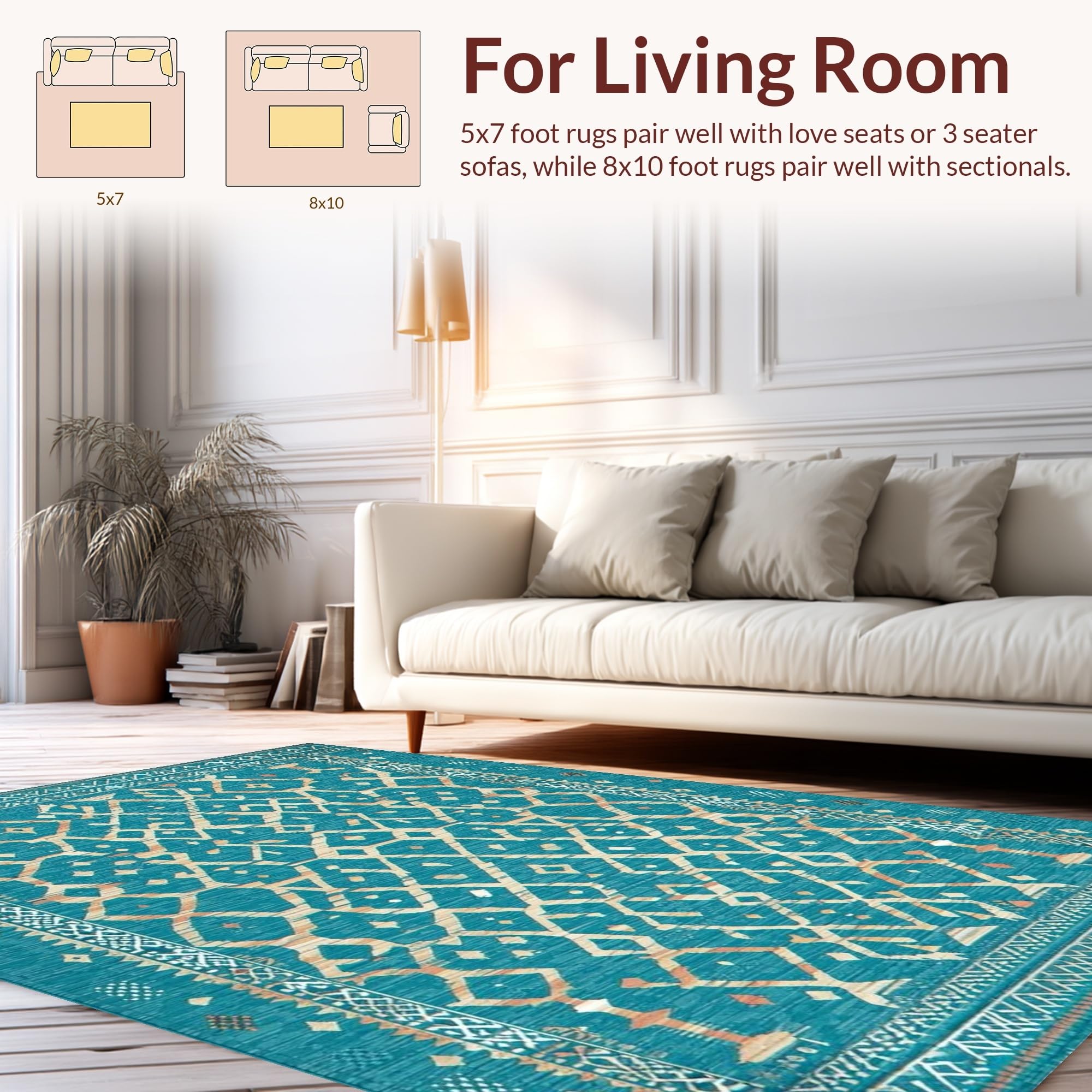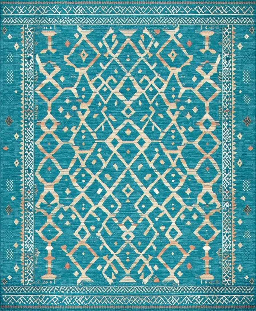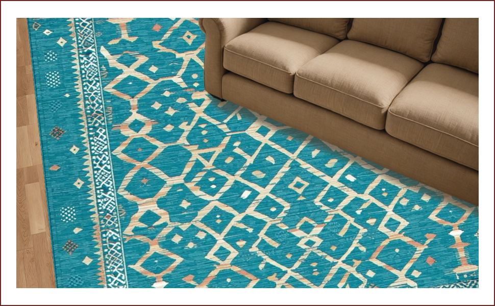 Ultra Soft Area Rug, Non Slip, Stain Resistant, Washable Area Rugs for Living Room, Bedroom, Elegant Teal Geometric Composition(Blue) Overview: