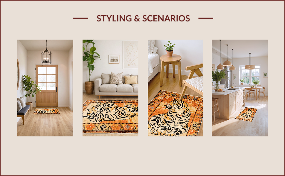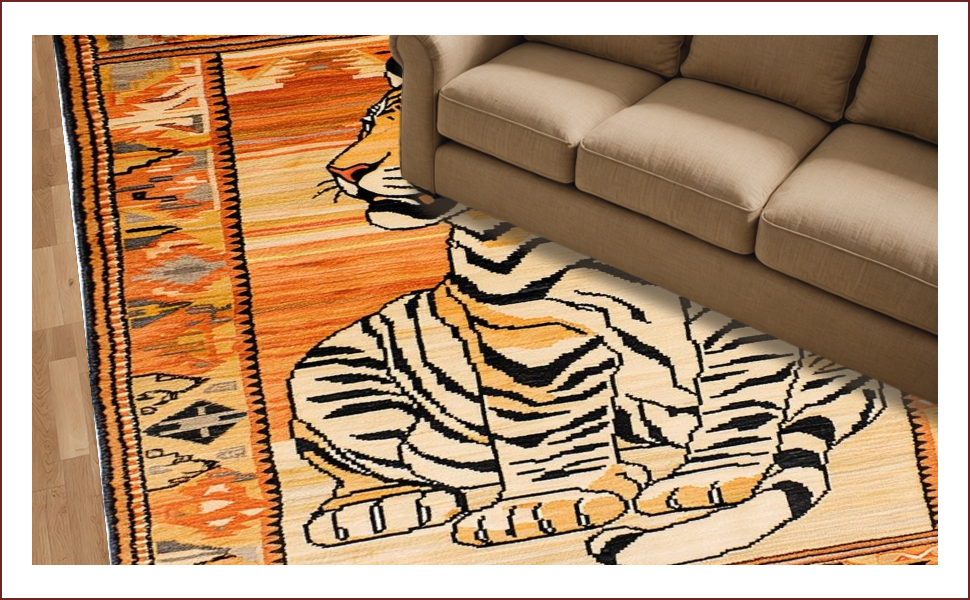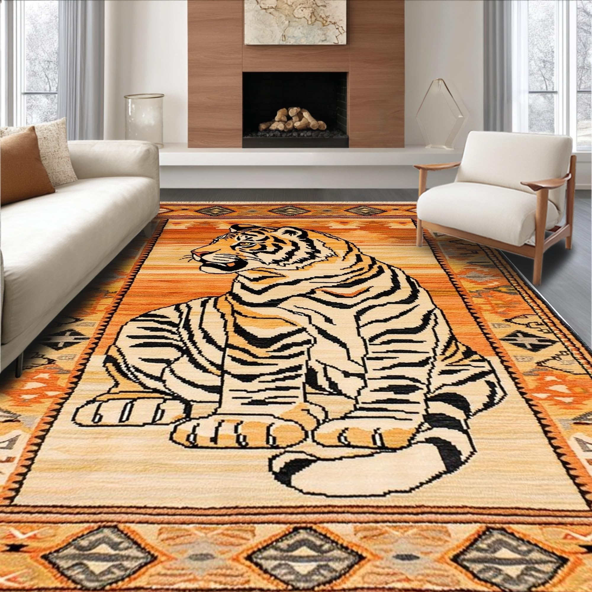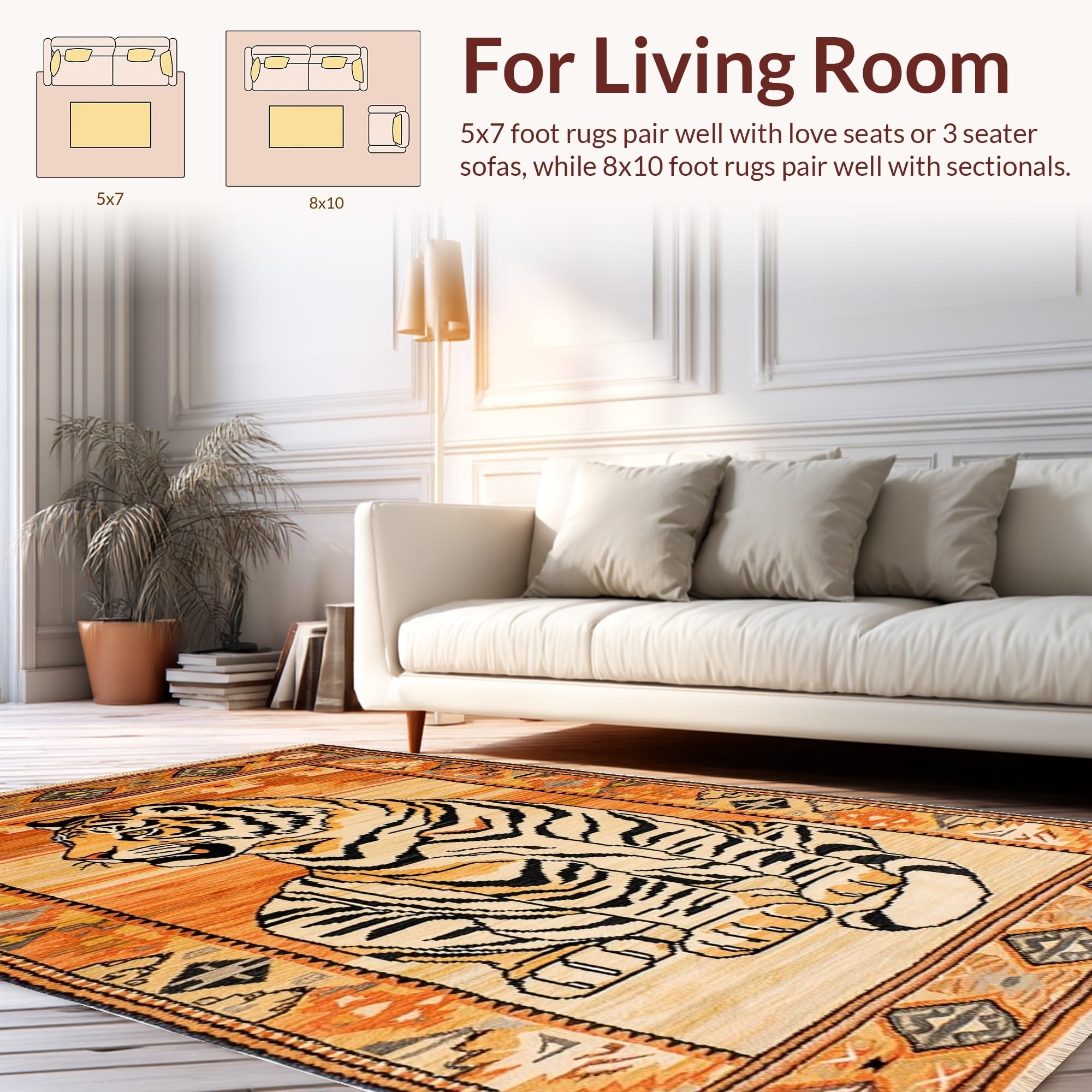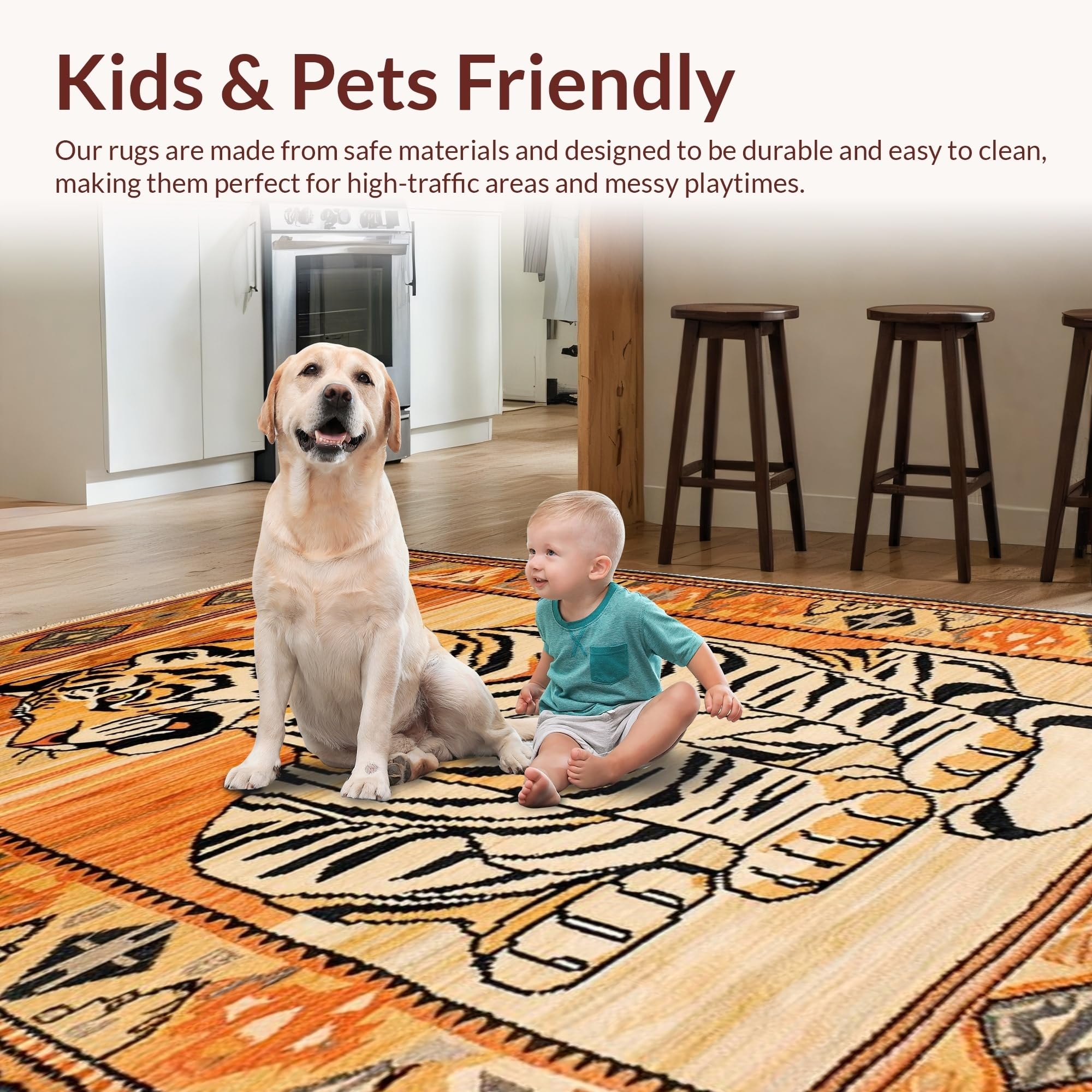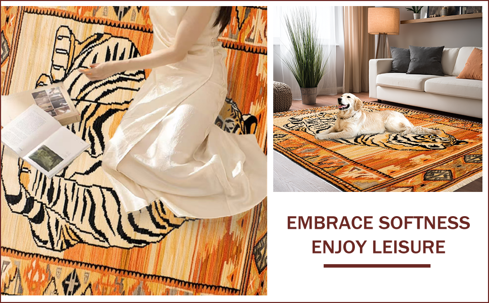 Ultra Soft Area Rug, Non Slip, Stain Resistant, Washable Area Rugs for Living Room, Bedroom, Elegant Textured Animal Print(Orange) Overview: