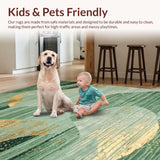 Ultra Soft Area Rug, Non Slip, Stain Resistant, Washable Area Rugs for Living Room, Bedroom, Elegant Textured Geometric Print(Green) Overview: