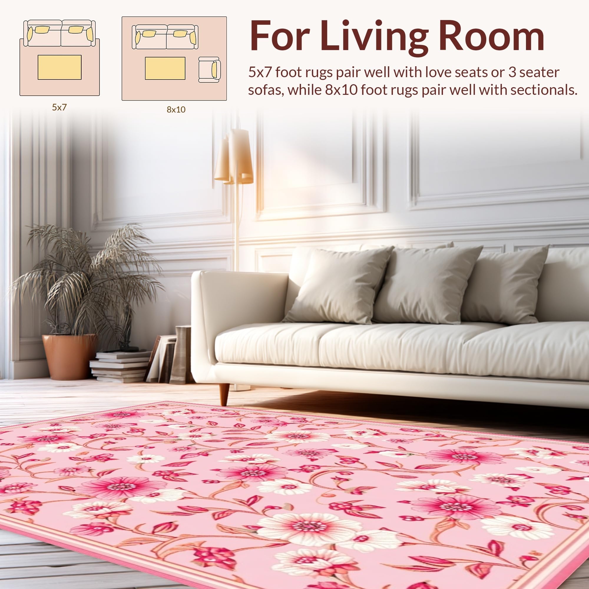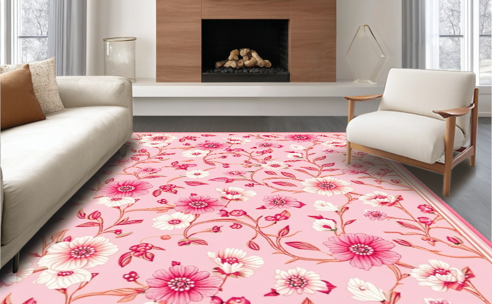Ultra Soft Area Rug, Non Slip, Stain Resistant, Washable Area Rugs for Living Room, Bedroom, Elegant Textured Petal Pattern(Pink) Overview: