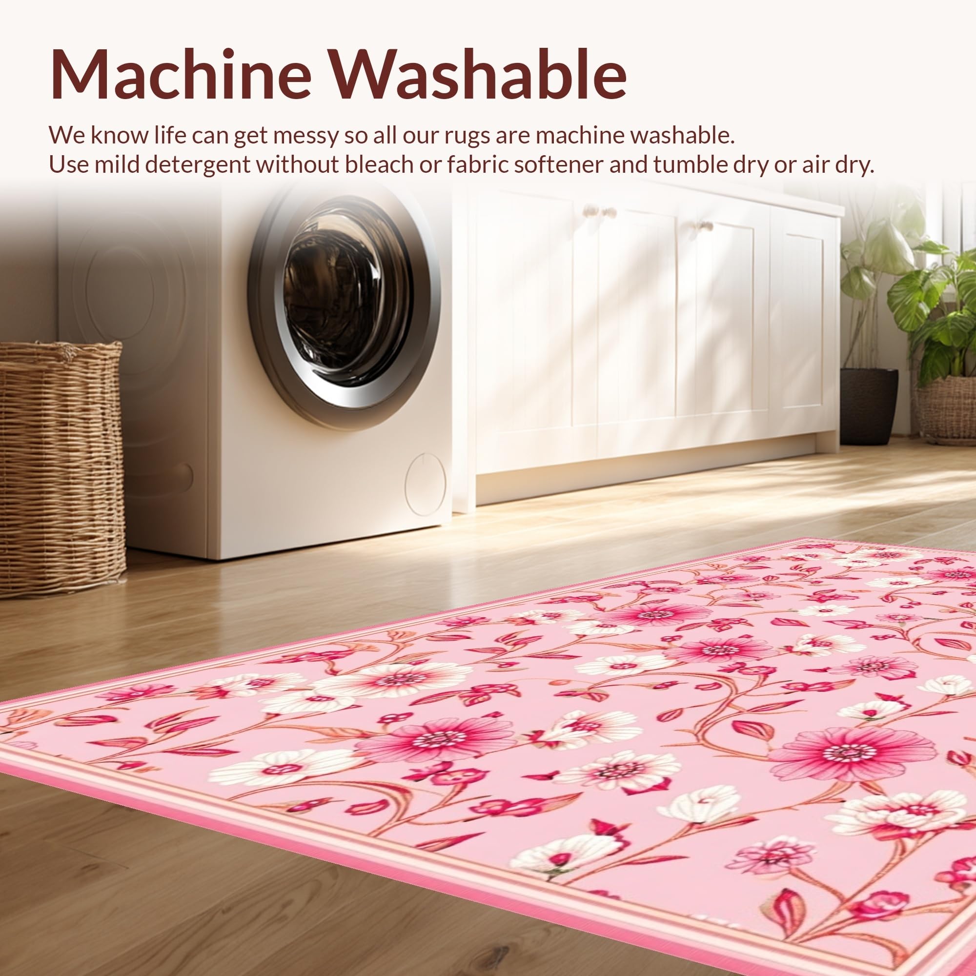 - Machine Washable: Our rugs can be easily thrown in the wash machine.