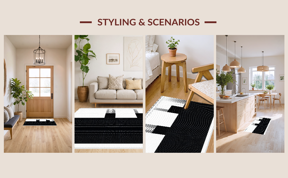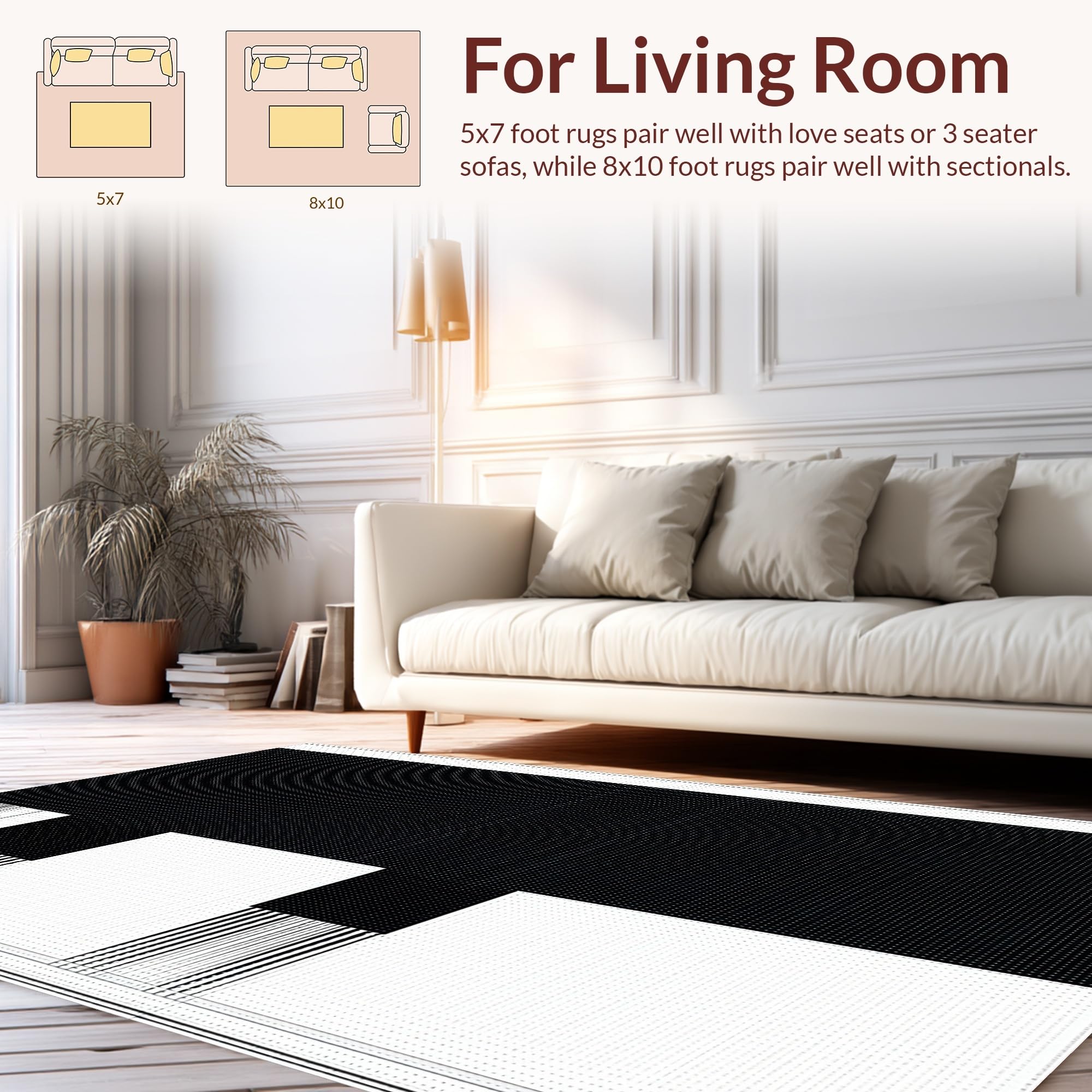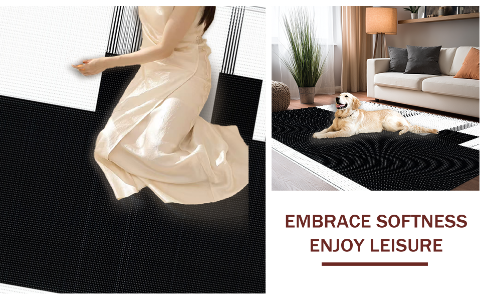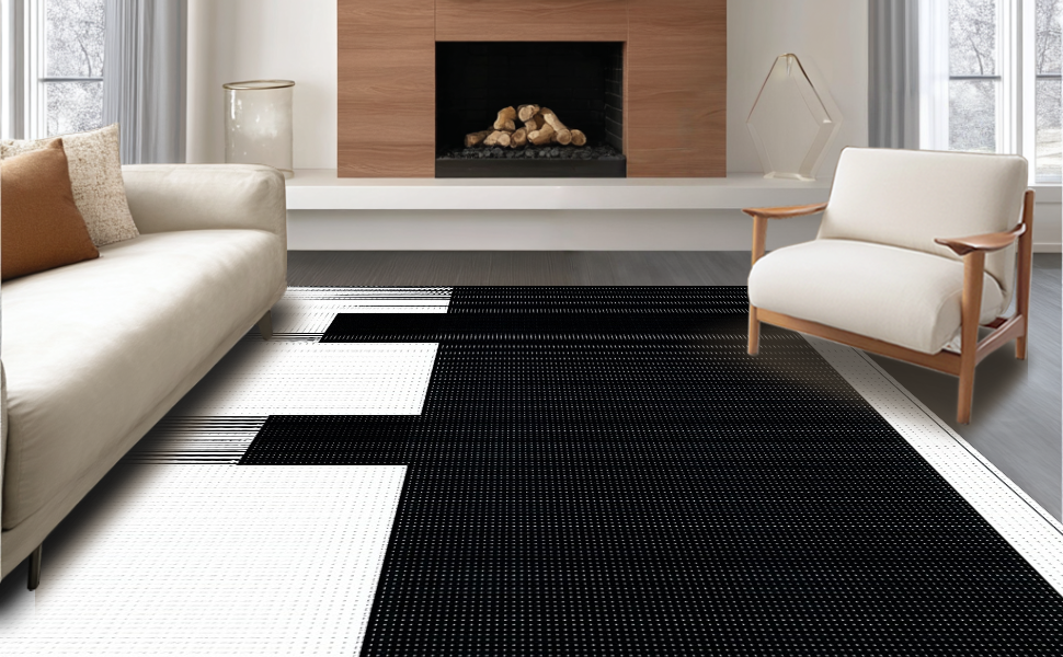 Ultra Soft Area Rug, Non Slip, Stain Resistant, Washable Area Rugs for Living Room, Bedroom, Elegant Textured Symmetrical Design(Black) Overview: