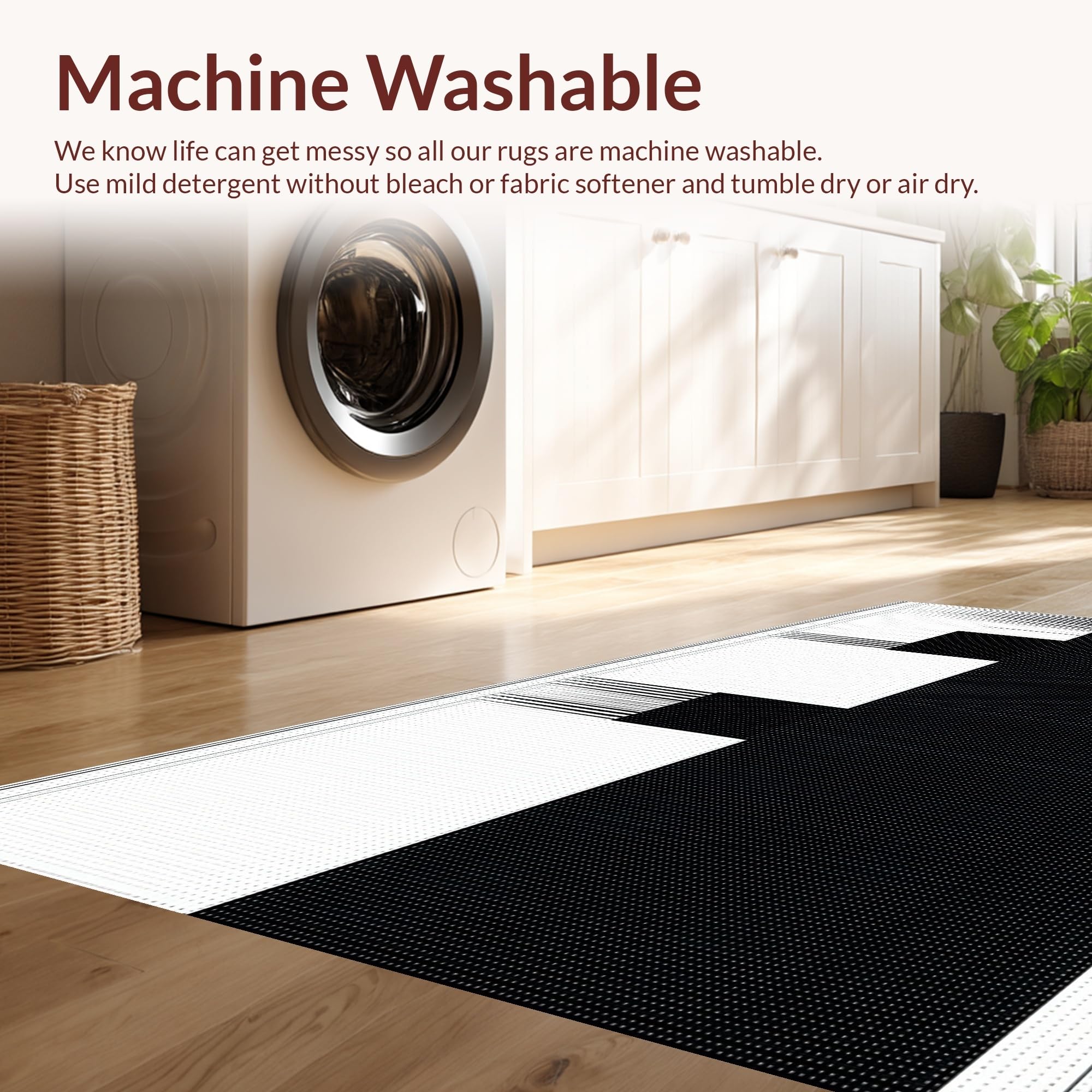 - Machine Washable: Our rugs can be easily thrown in the wash machine.