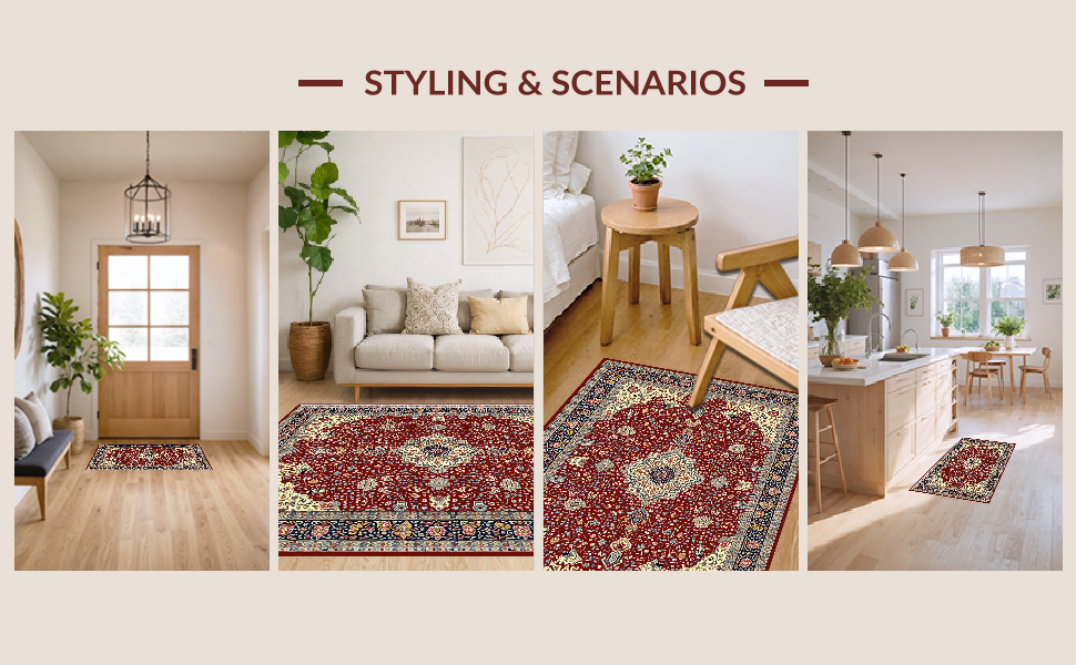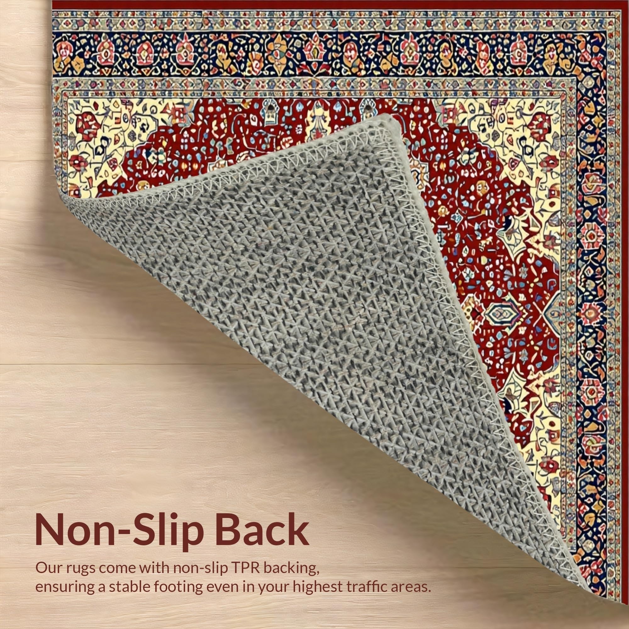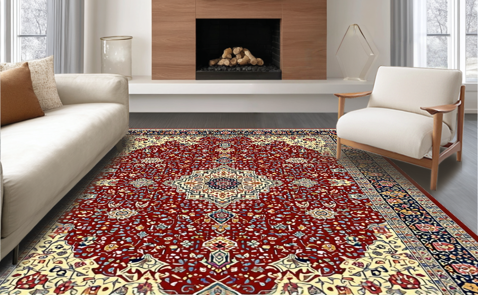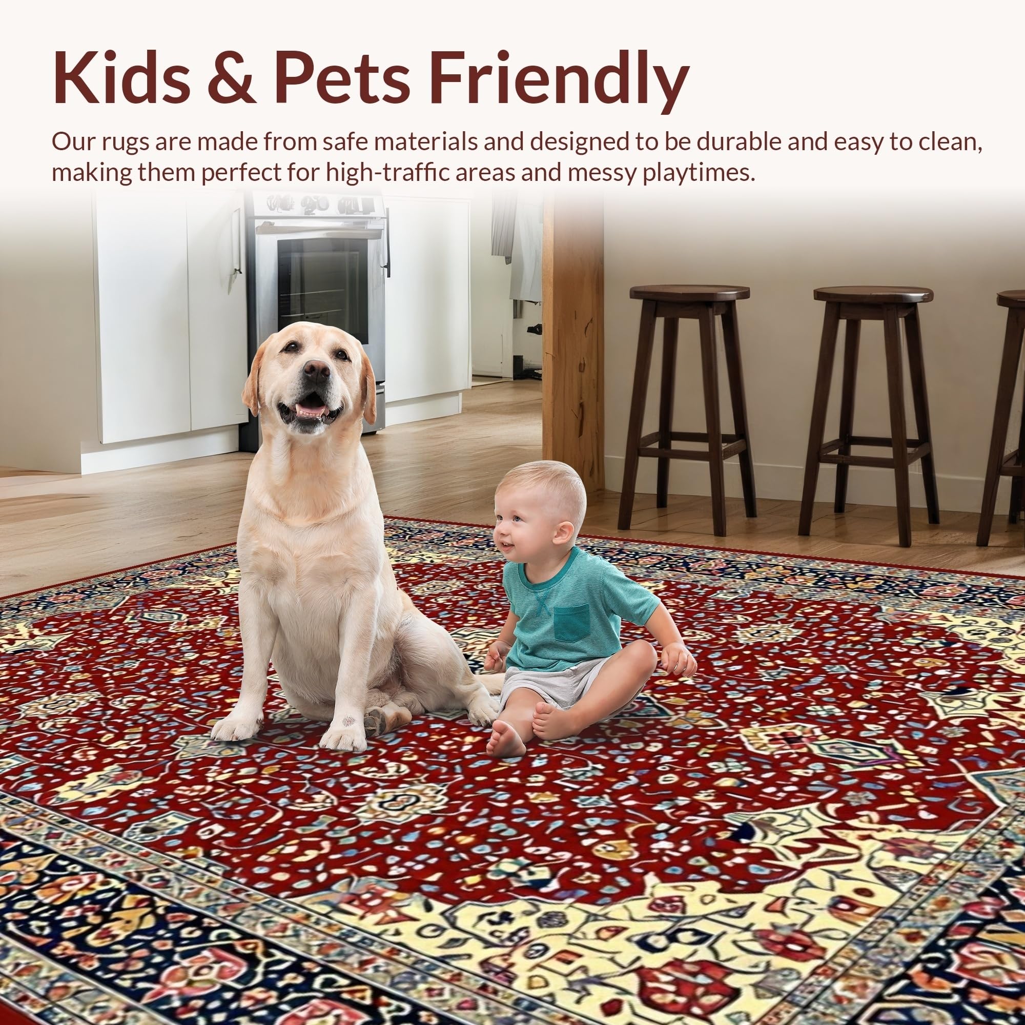 Ultra Soft Area Rug, Non Slip, Stain Resistant, Washable Area Rugs for Living Room, Bedroom, Elegant Tiled Geometric Charm(Red) Overview: