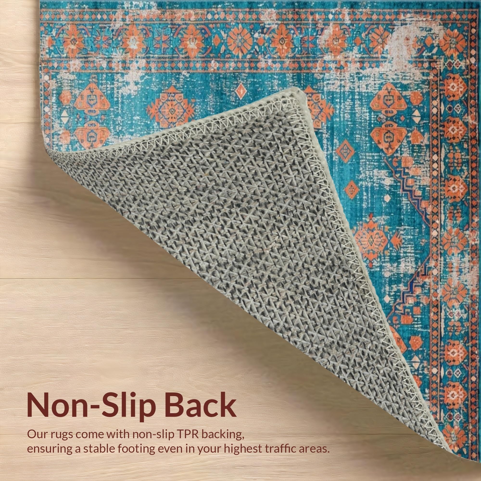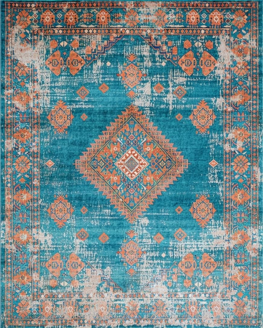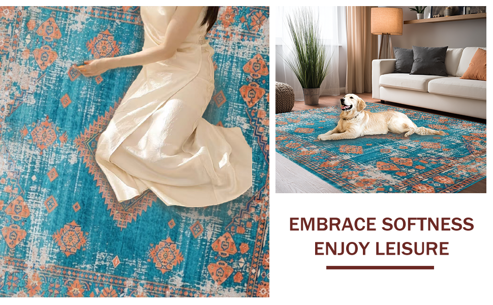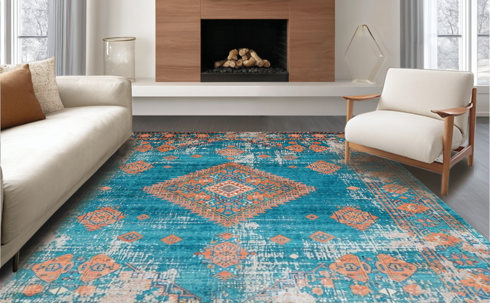 Ultra Soft Area Rug, Non Slip, Stain Resistant, Washable Area Rugs for Living Room, Bedroom, Elegant Tiled Patterned Design(Blue) Overview: