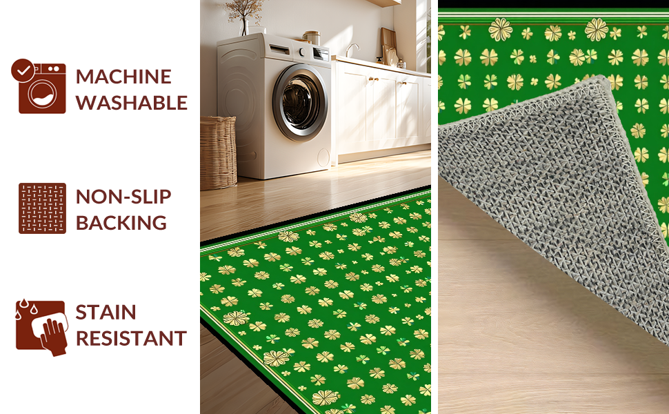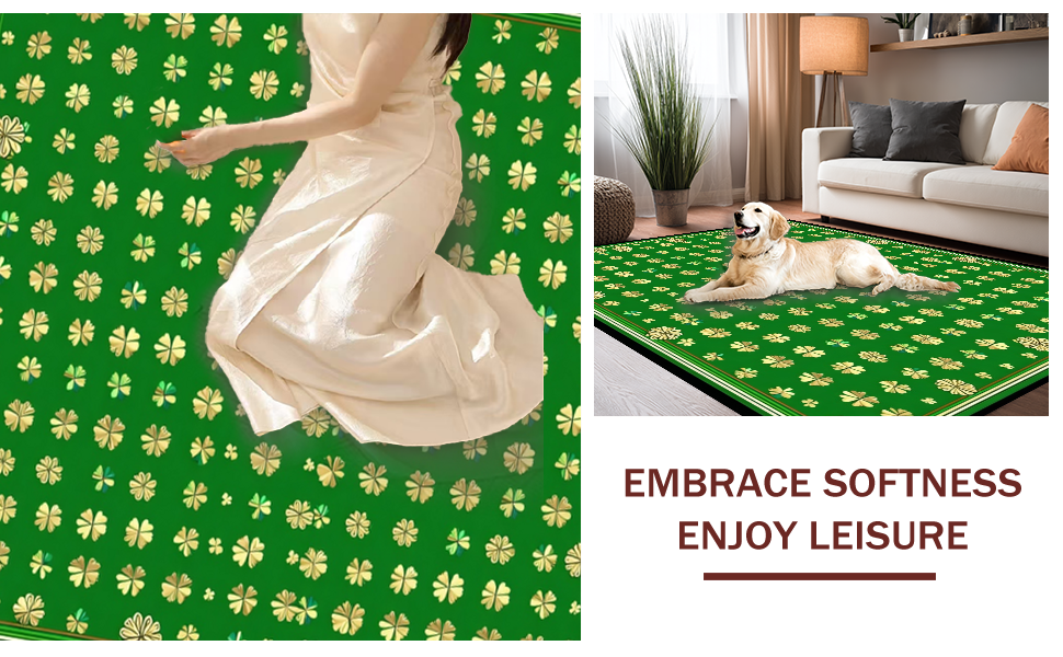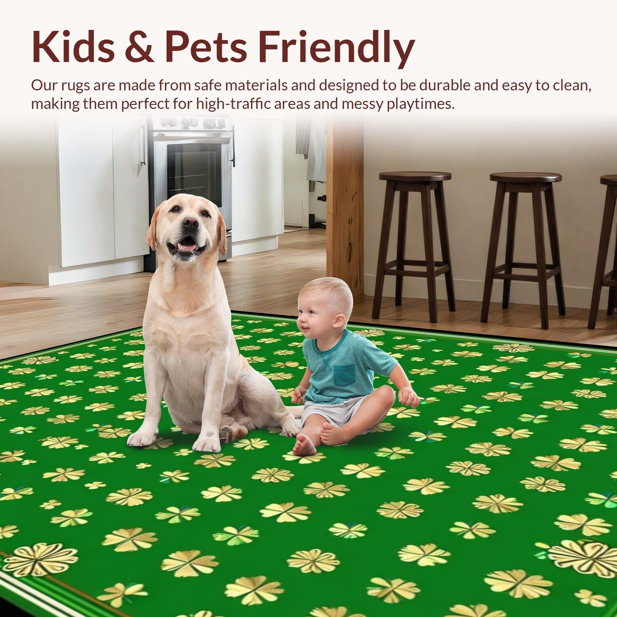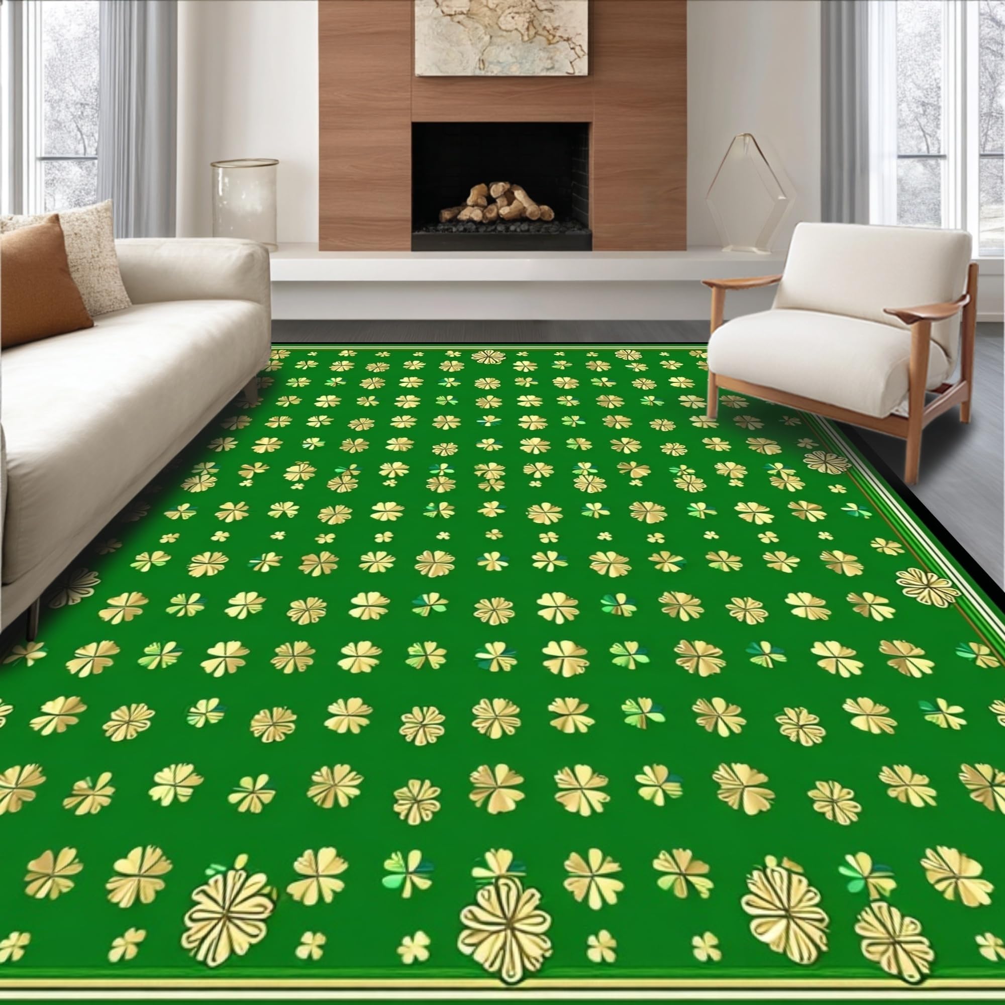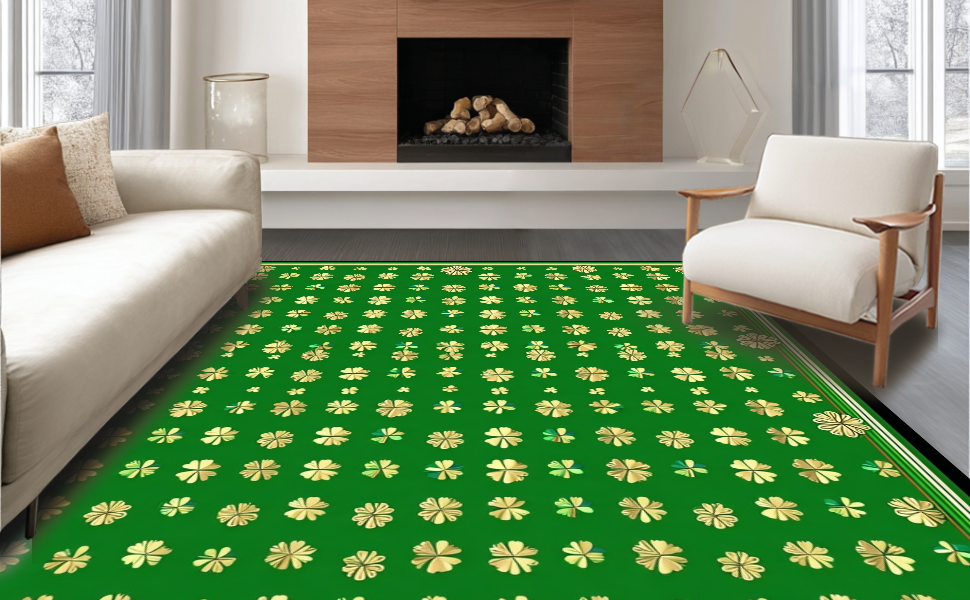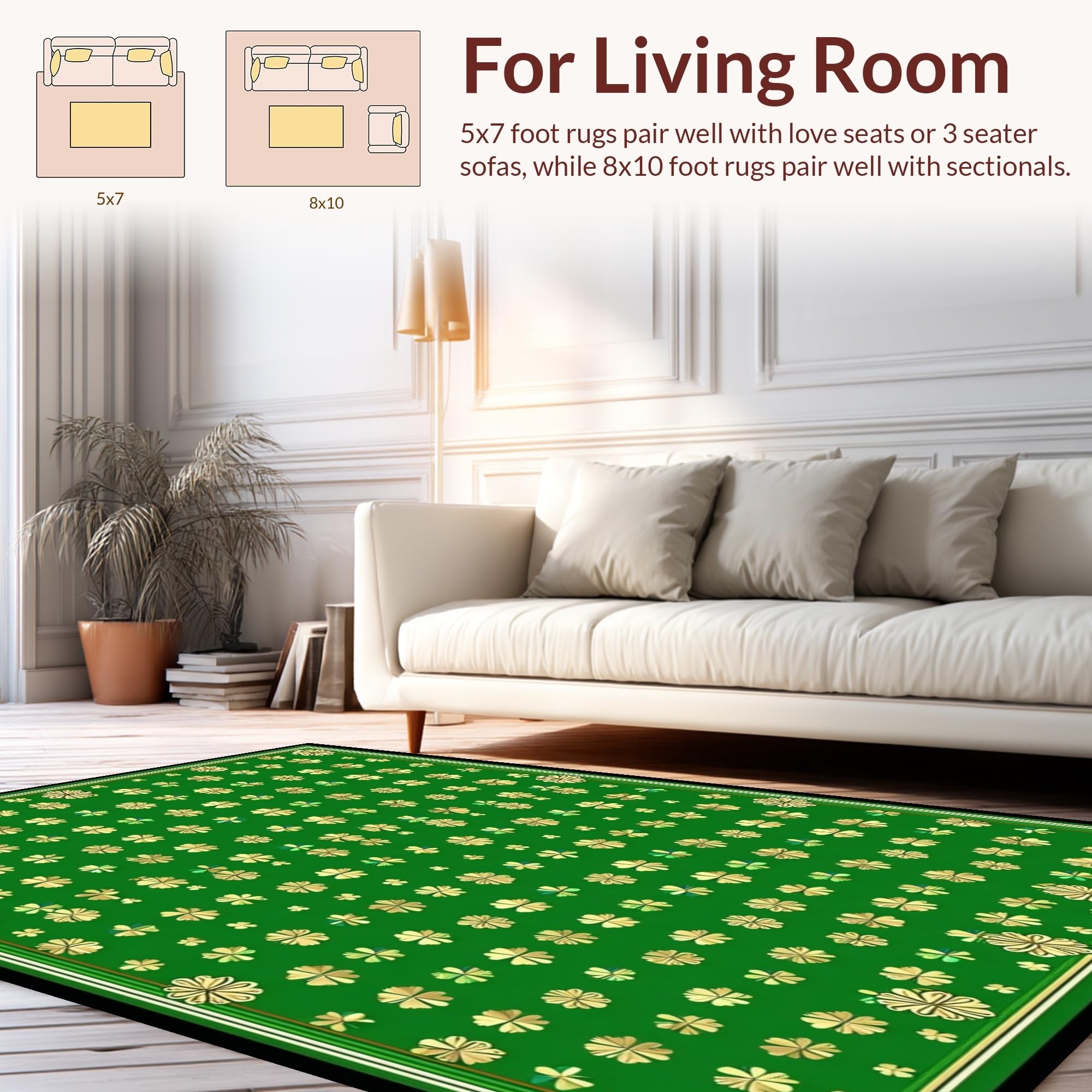 Ultra Soft Area Rug, Non Slip, Stain Resistant, Washable Area Rugs for Living Room, Bedroom, Elegant Traditional Clover Aesthetic(Green) Overview: