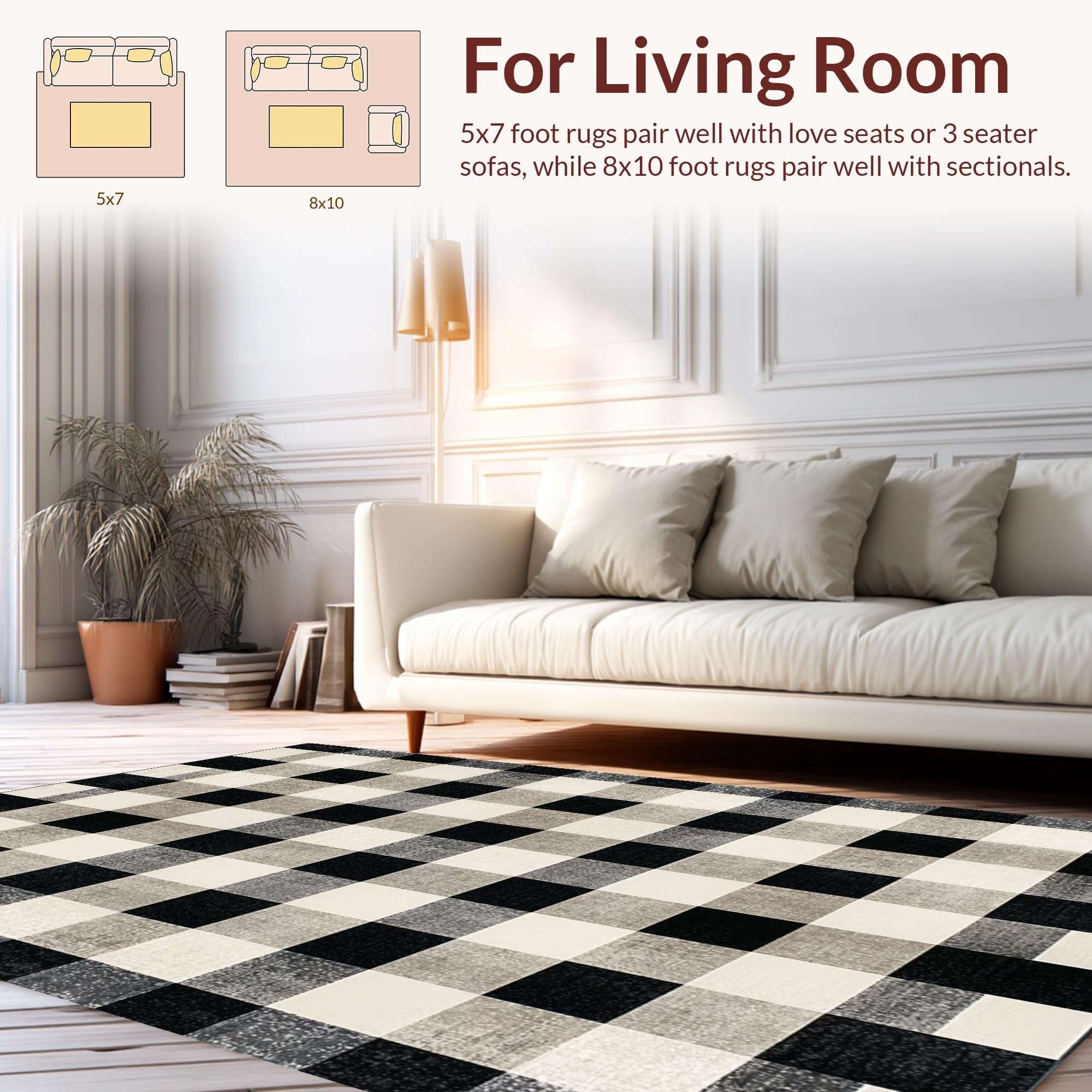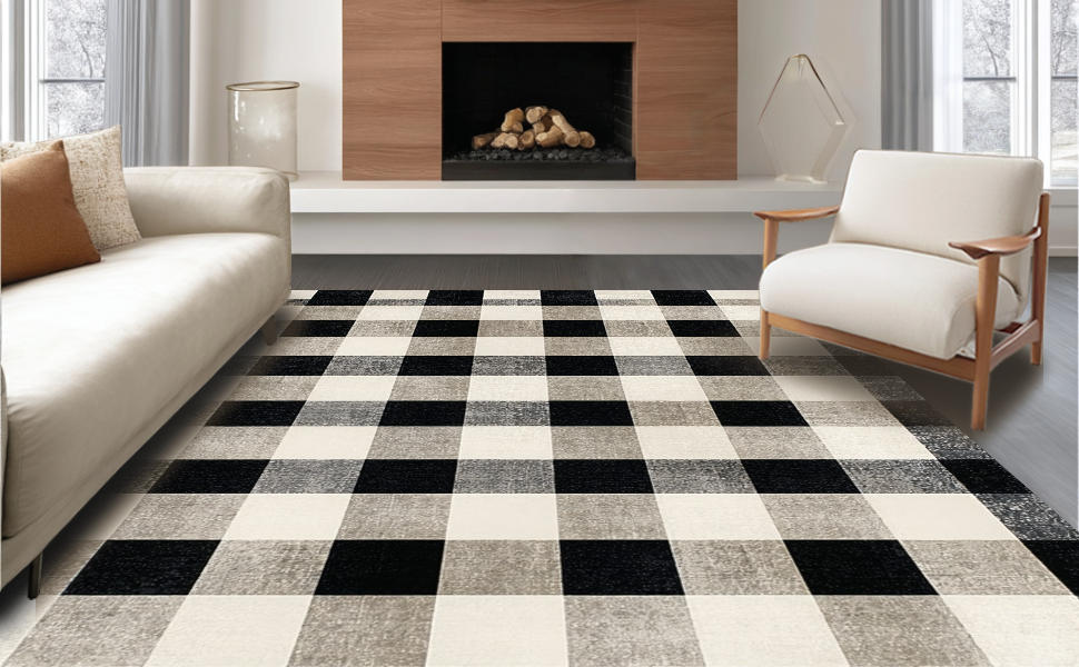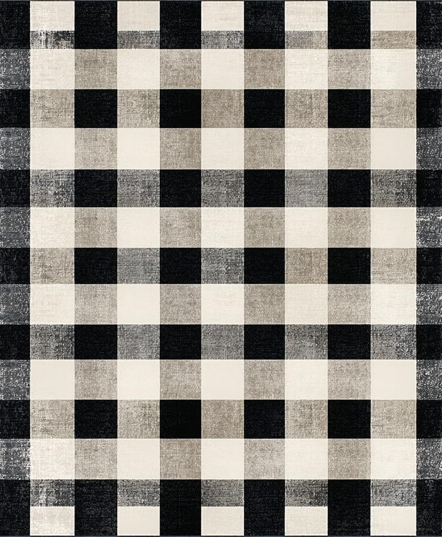 Ultra Soft Area Rug, Non Slip, Stain Resistant, Washable Area Rugs for Living Room, Bedroom, Elegant Transitional Black and Gray(Black) Overview: