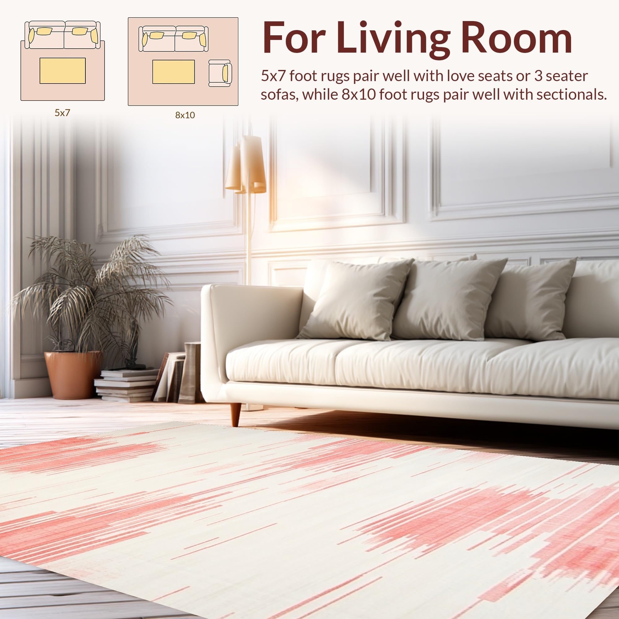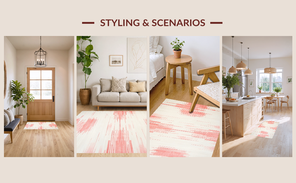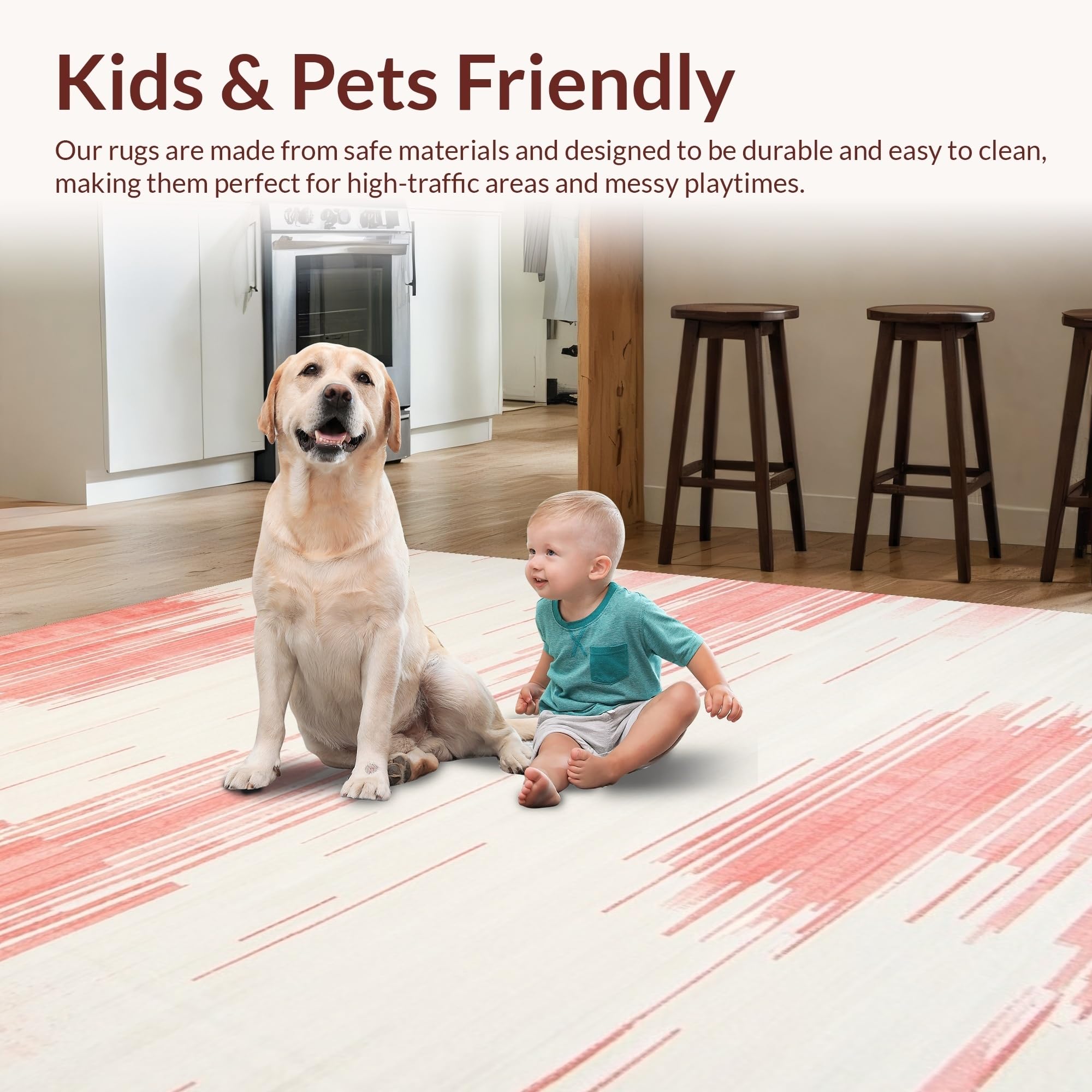 Ultra Soft Area Rug, Non Slip, Stain Resistant, Washable Area Rugs for Living Room, Bedroom, Elegant Transitional Ethereal Motif(Red) Overview: