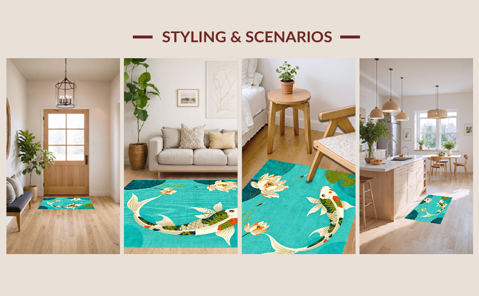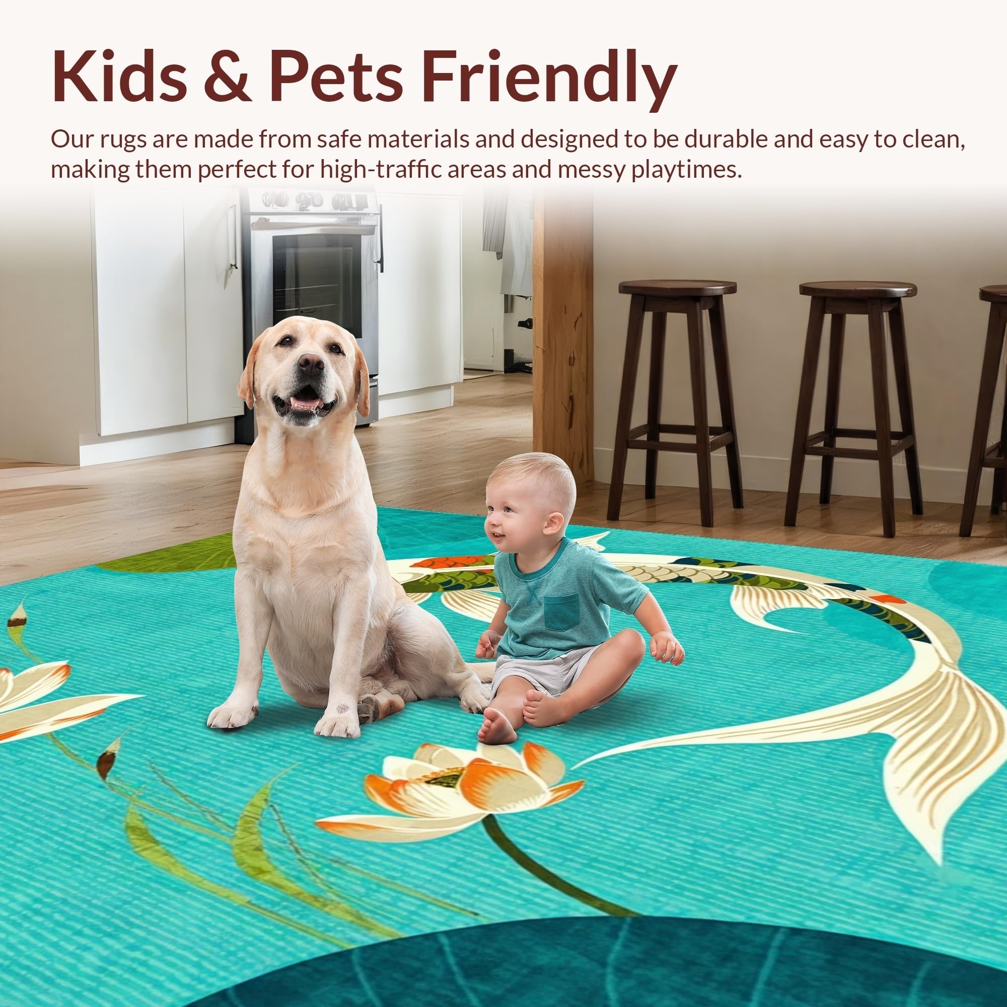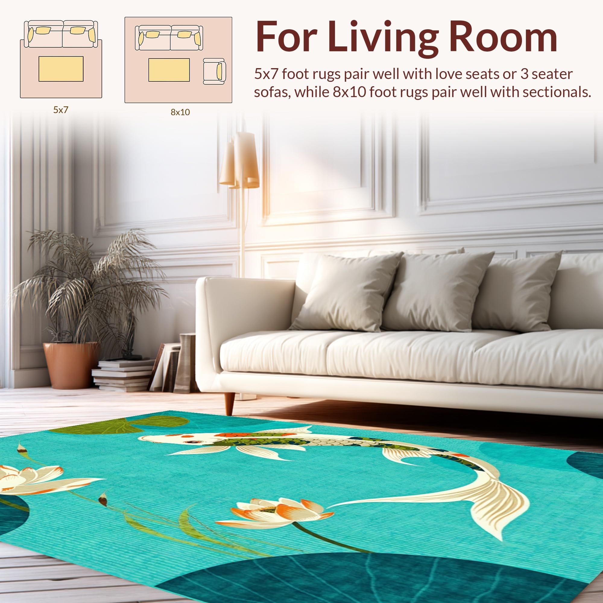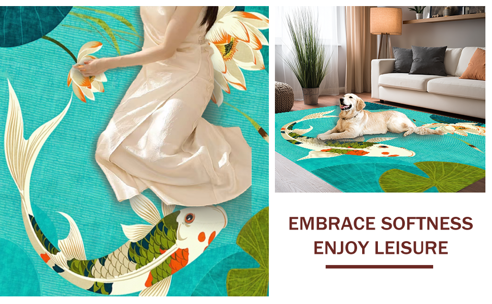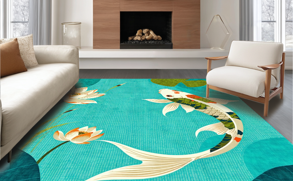 Ultra Soft Area Rug, Non Slip, Stain Resistant, Washable Area Rugs for Living Room, Bedroom, Elegant Transitional Fish Pattern(Blue) Overview: