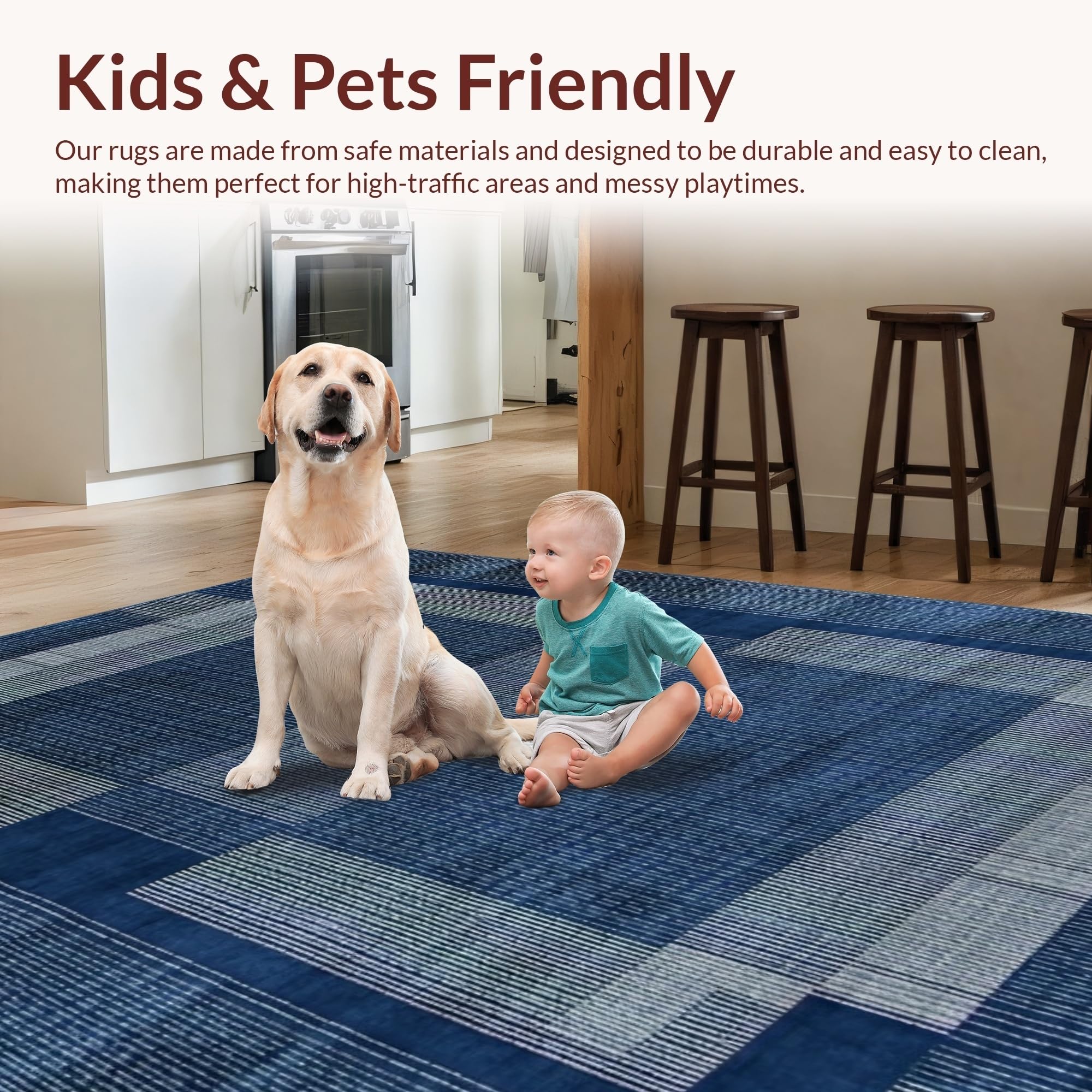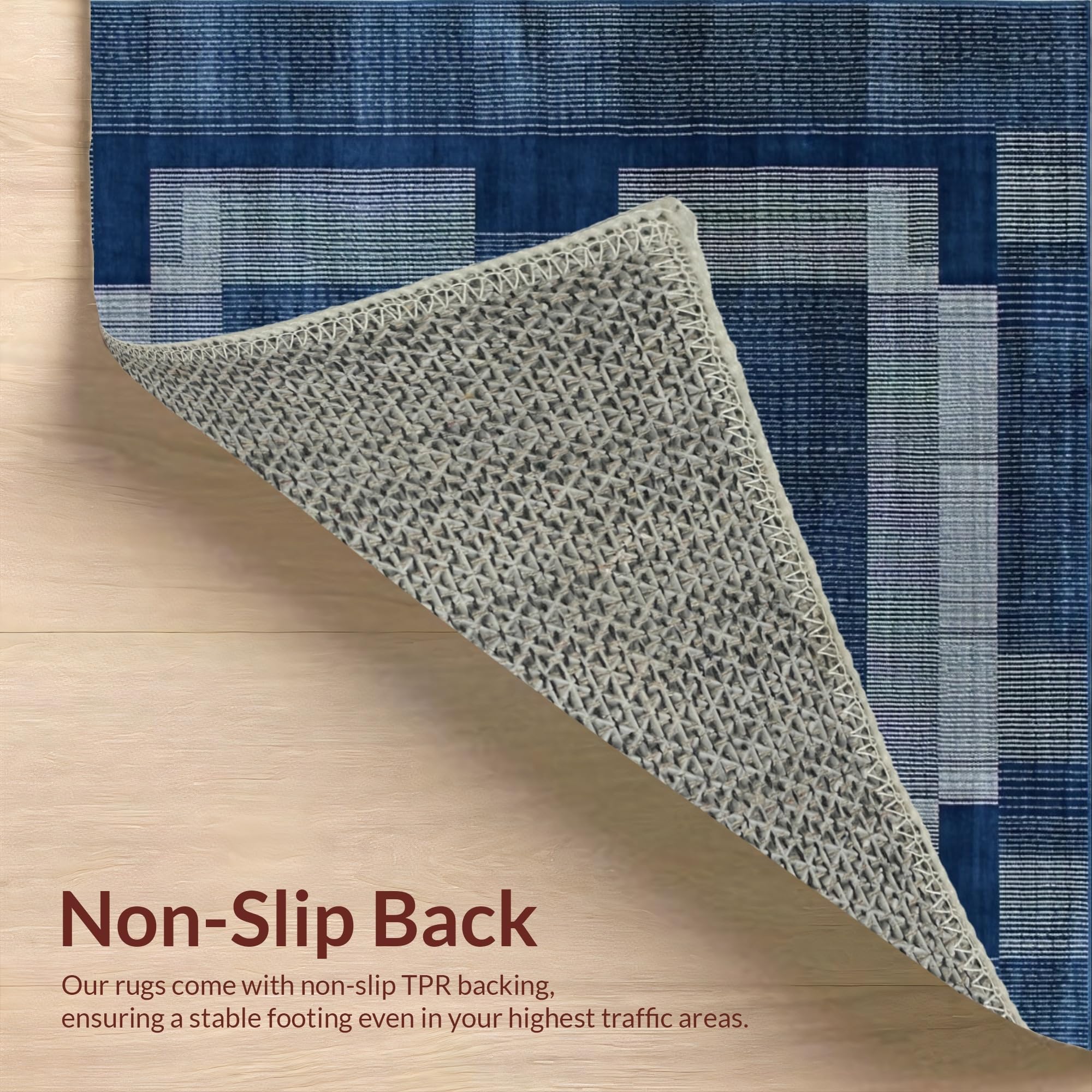 Ultra Soft Area Rug, Non Slip, Stain Resistant, Washable Area Rugs for Living Room, Bedroom, Elegant Trellis Arrangement in Silver(Blue) Overview: