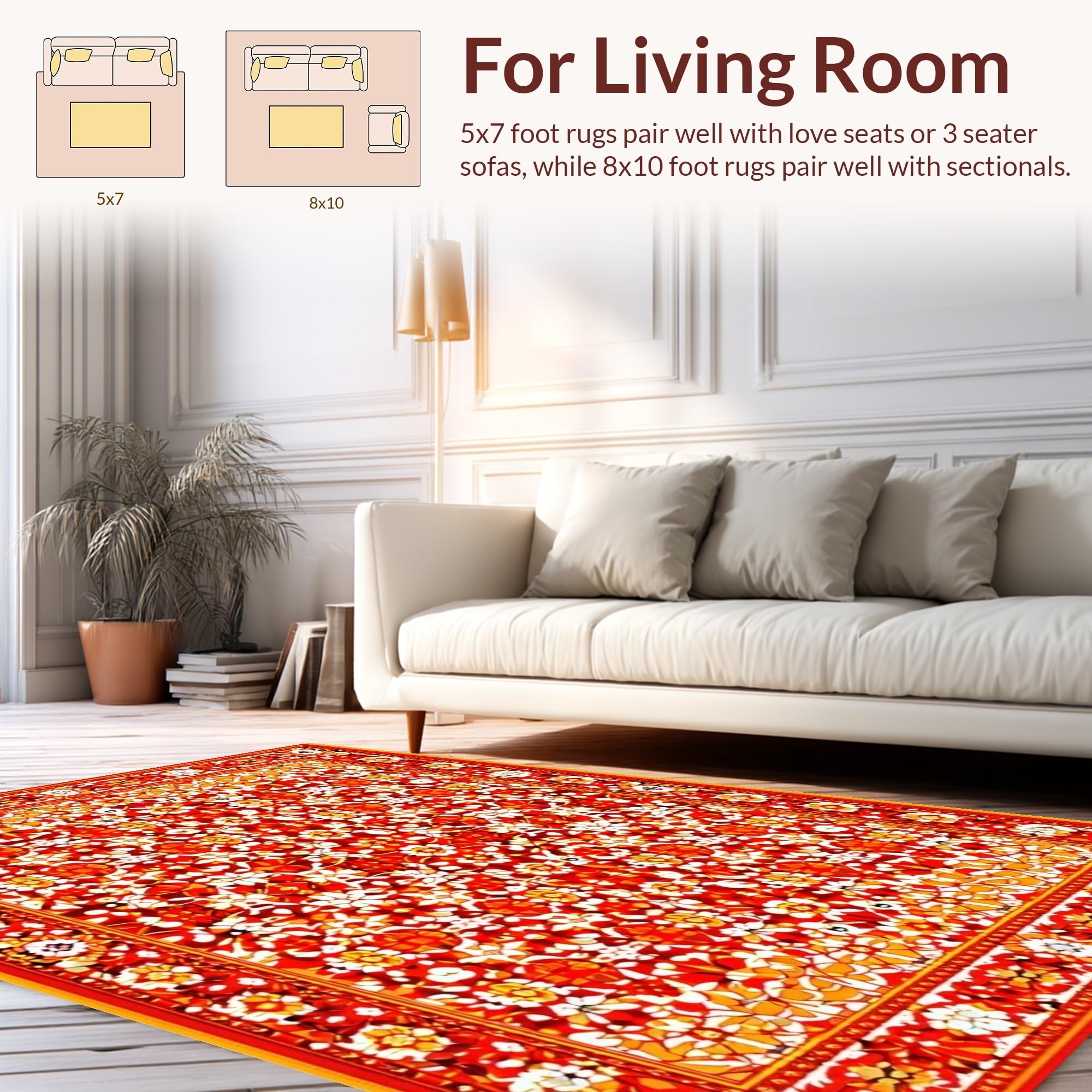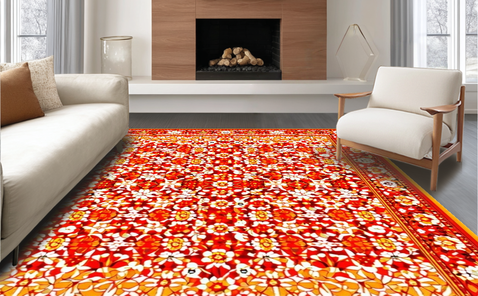 Ultra Soft Area Rug, Non Slip, Stain Resistant, Washable Area Rugs for Living Room, Bedroom, Elegant Tropical Blossom Aesthetic(Red) Overview: