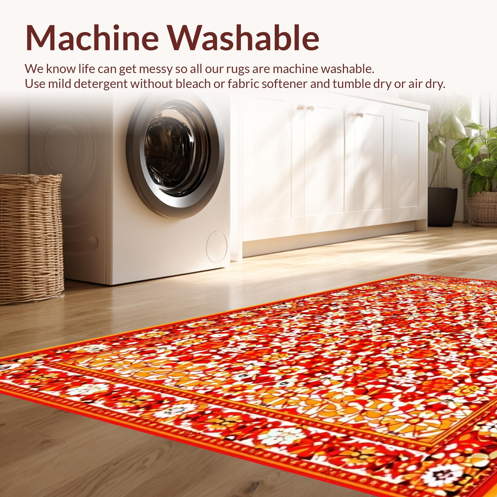 - Machine Washable: Our rugs can be easily thrown in the wash machine.
