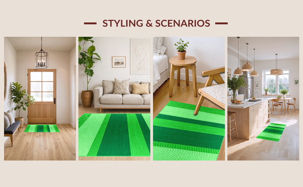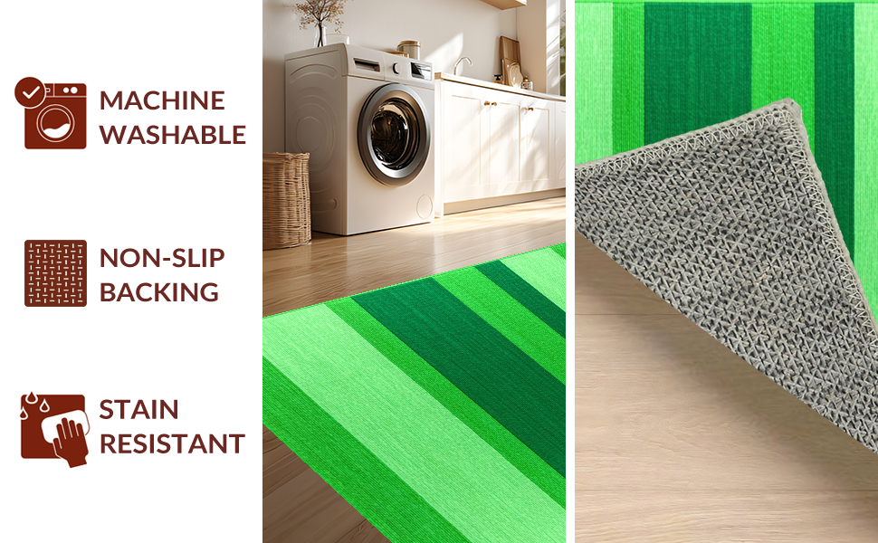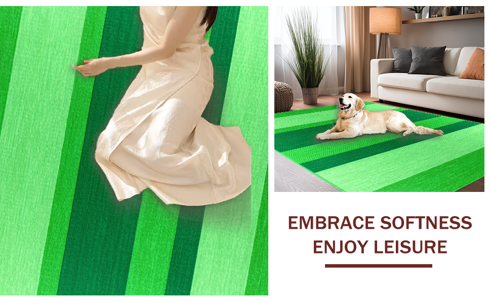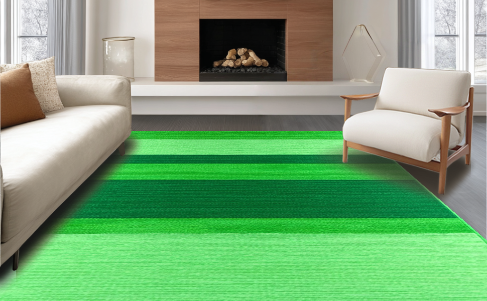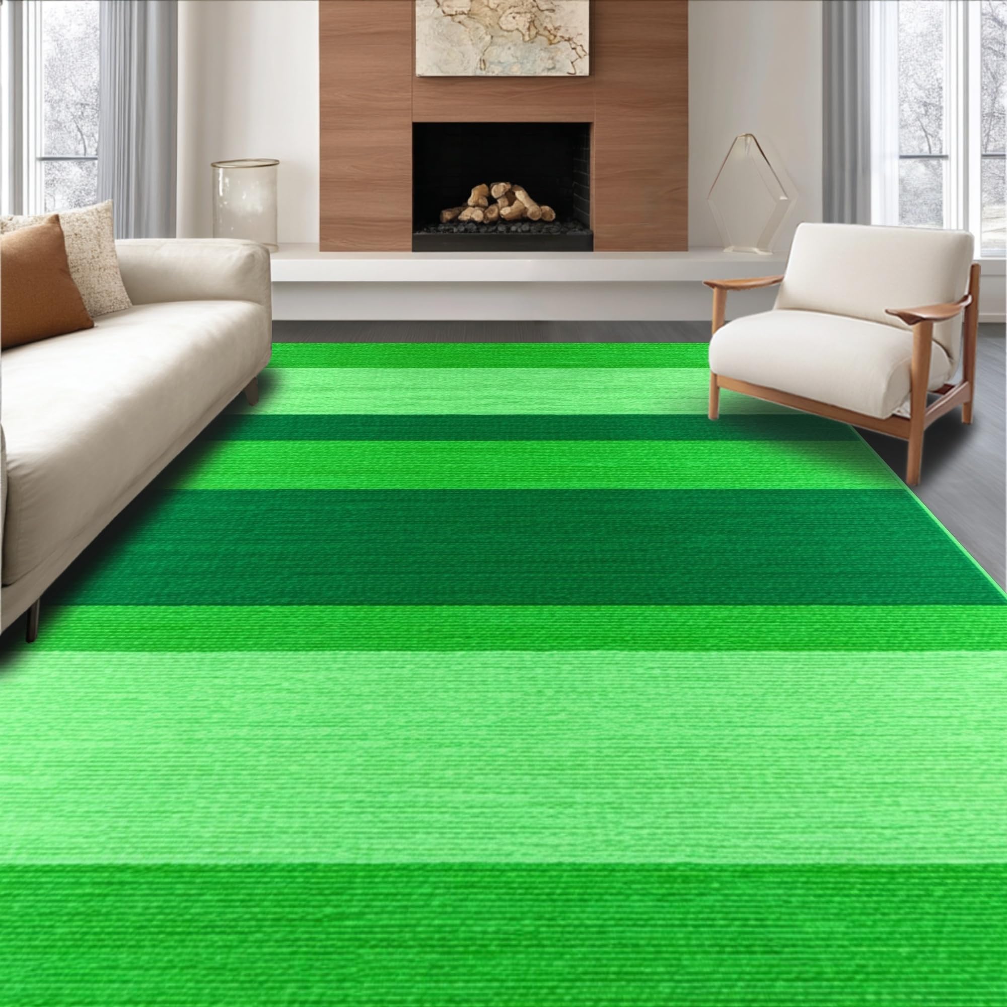 Ultra Soft Area Rug, Non Slip, Stain Resistant, Washable Area Rugs for Living Room, Bedroom, Elegant Tropical Inspired Stripe Motif(Green) Overview: