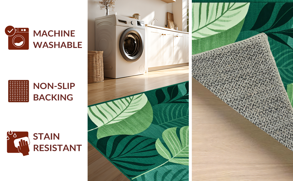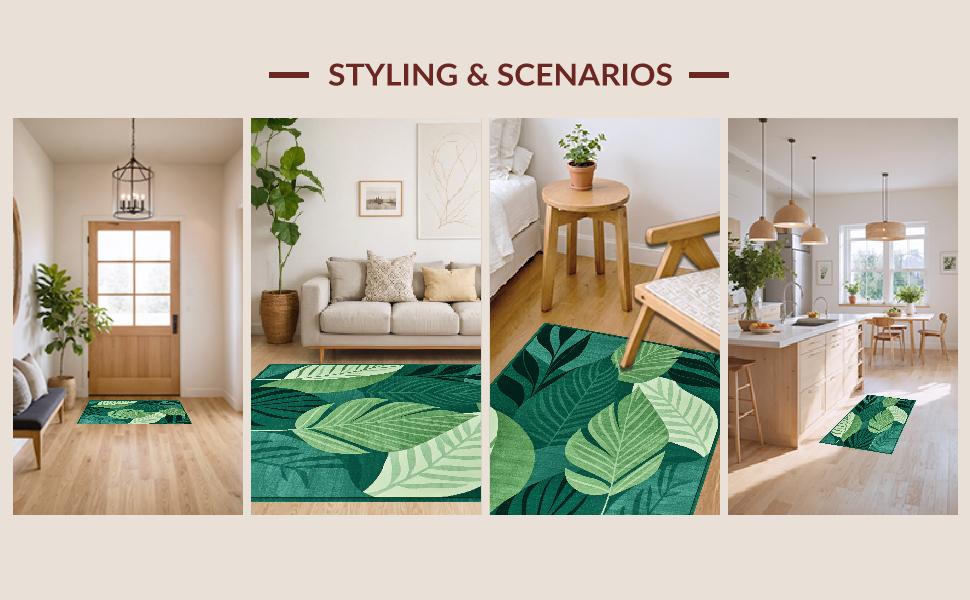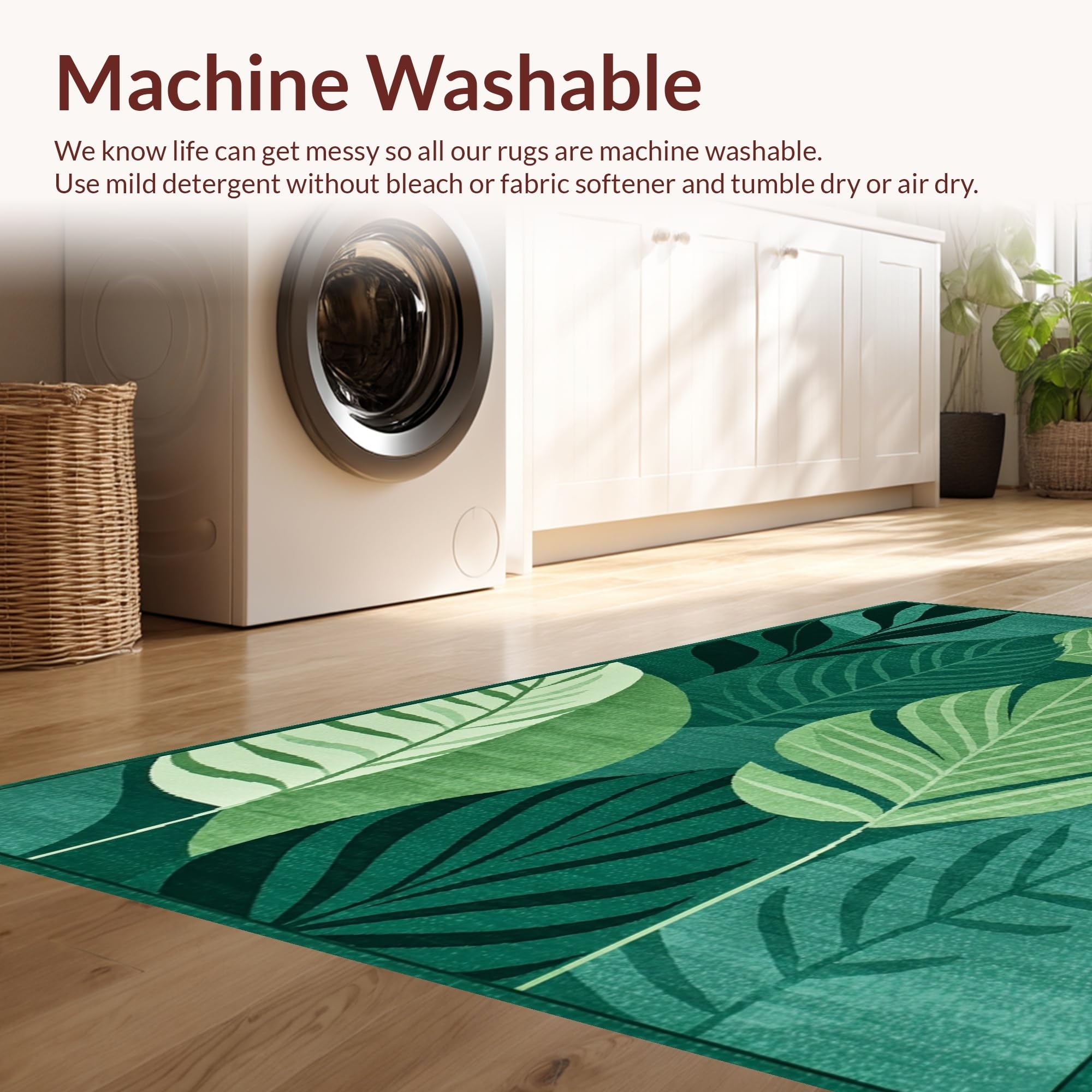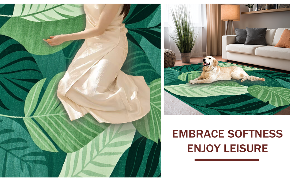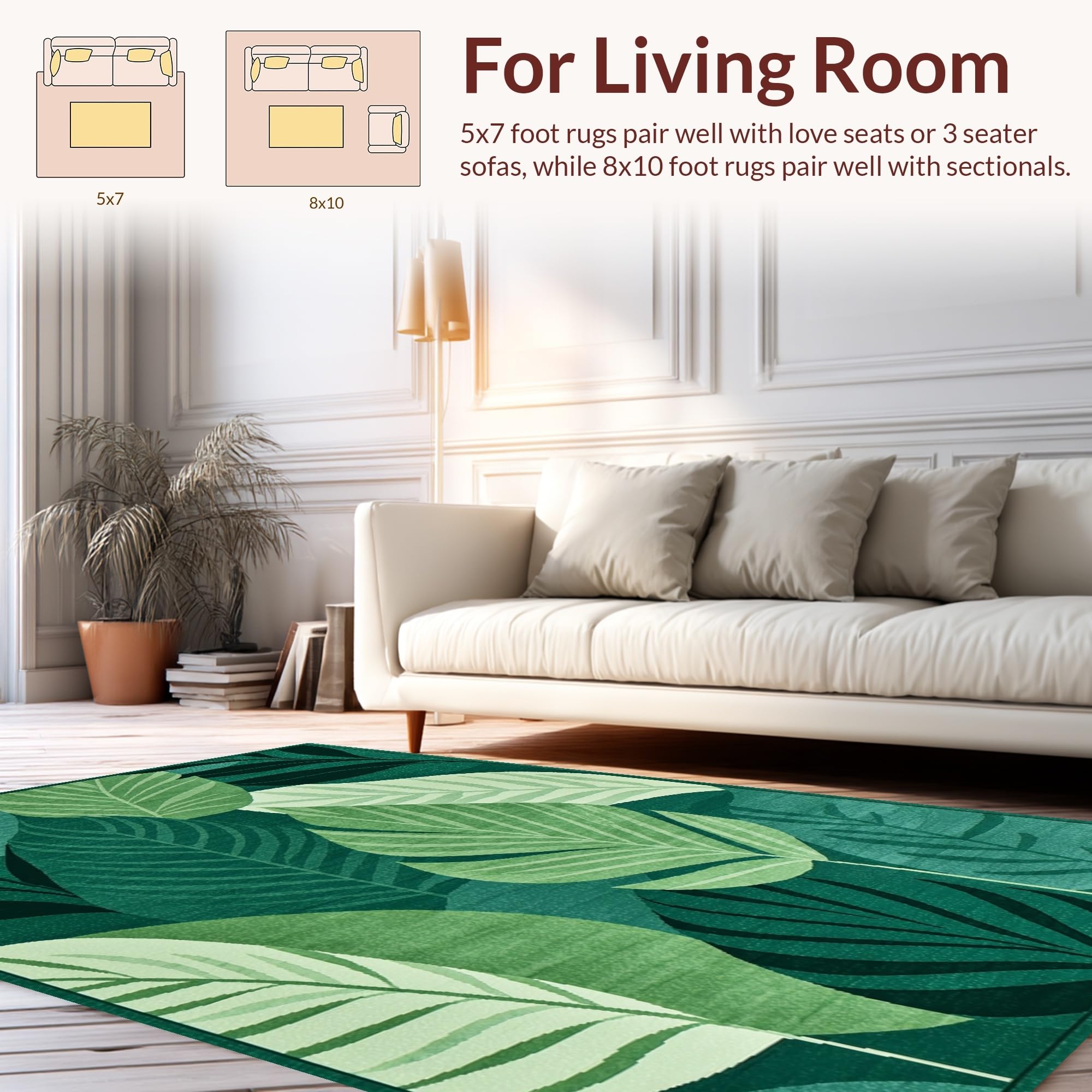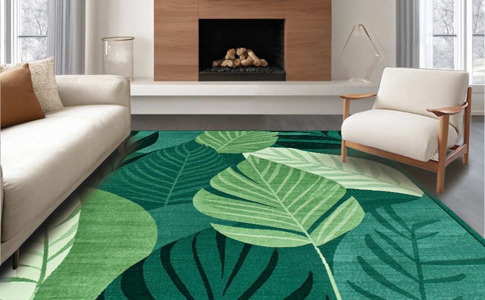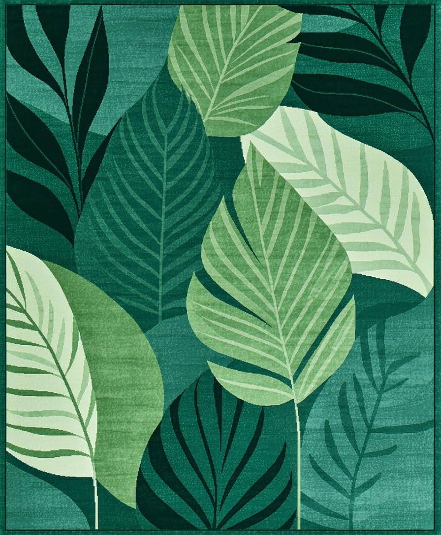Ultra Soft Area Rug, Non Slip, Stain Resistant, Washable Area Rugs for Living Room, Bedroom, Elegant Tropical Print Design(Green) Overview: