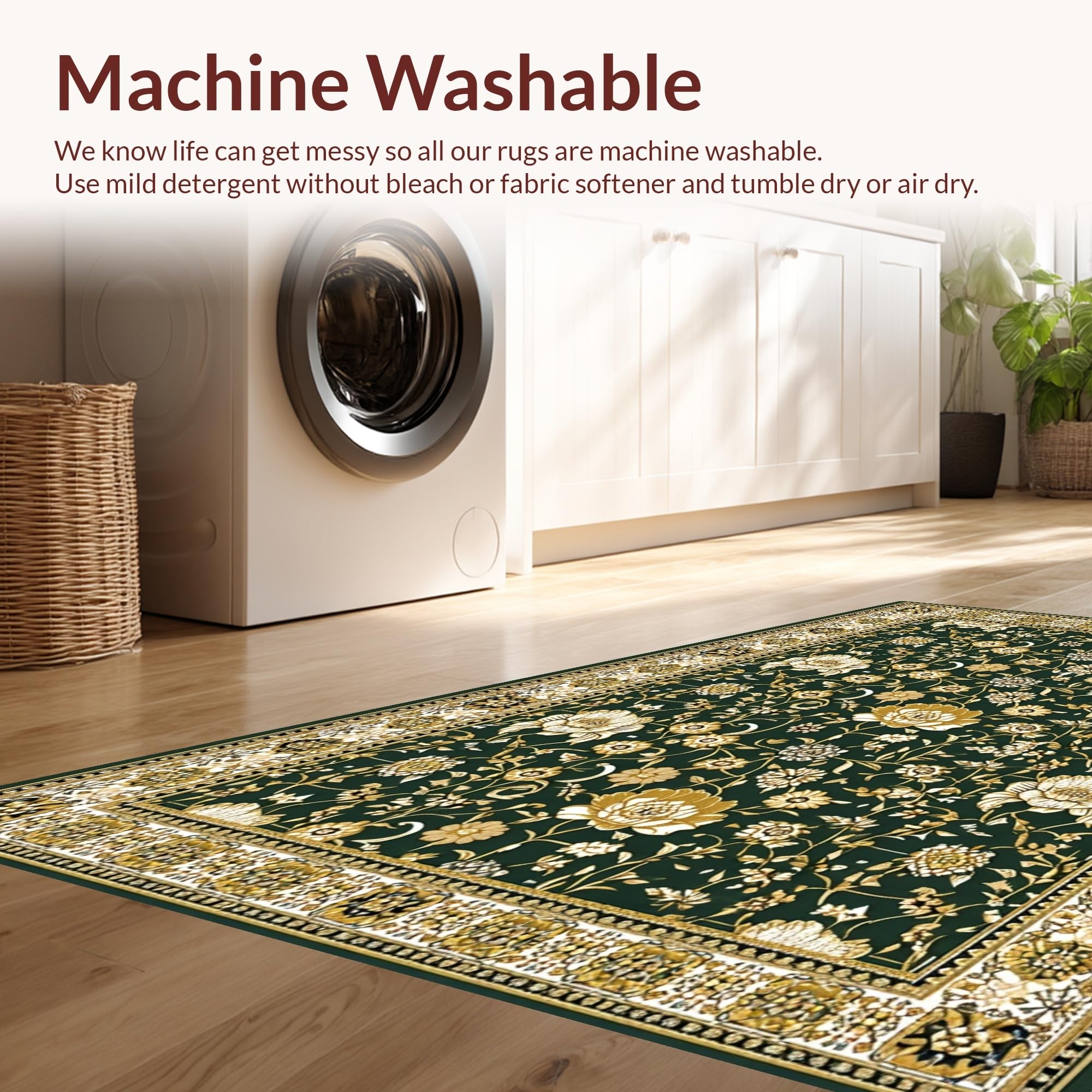 - Machine Washable: Our rugs can be easily thrown in the wash machine.