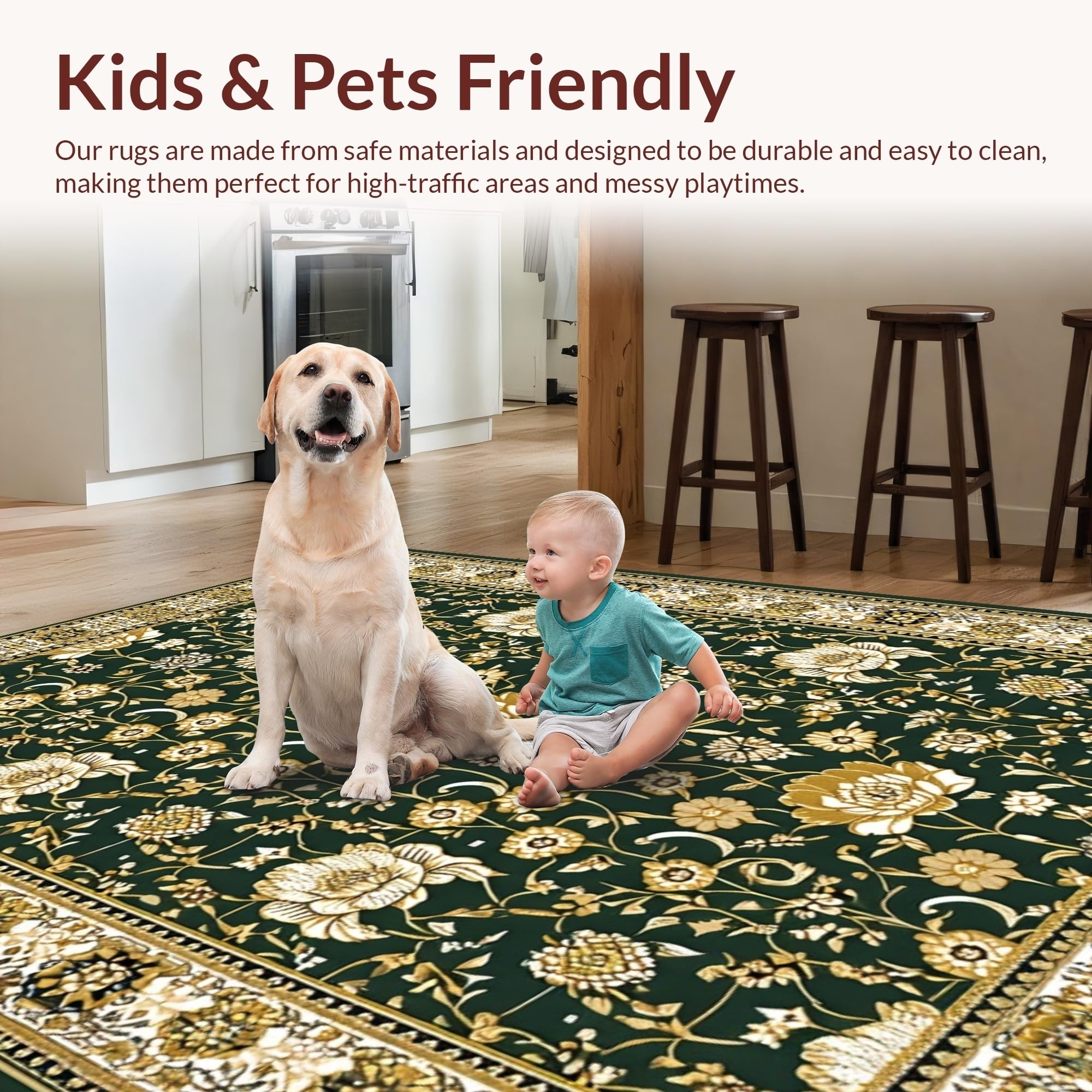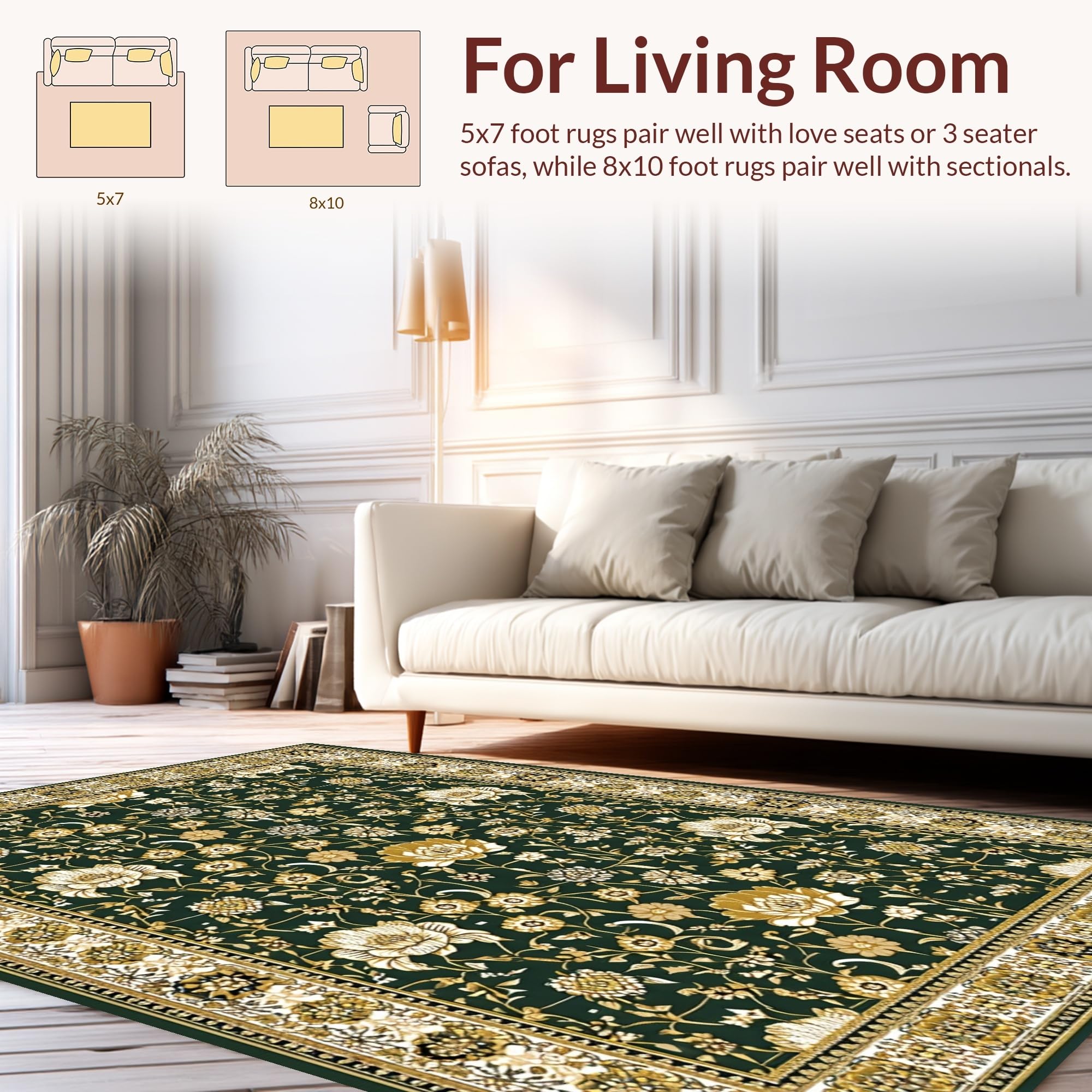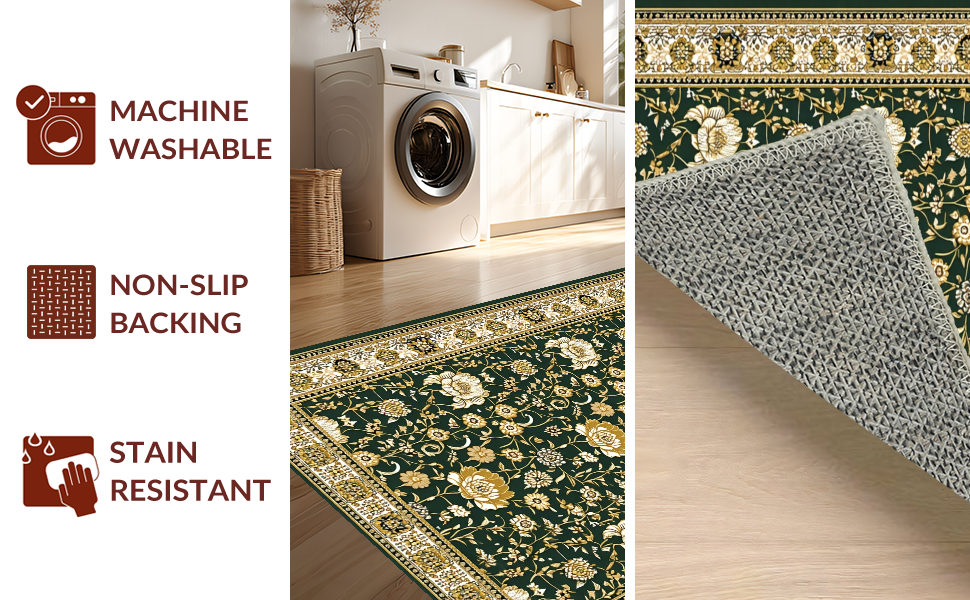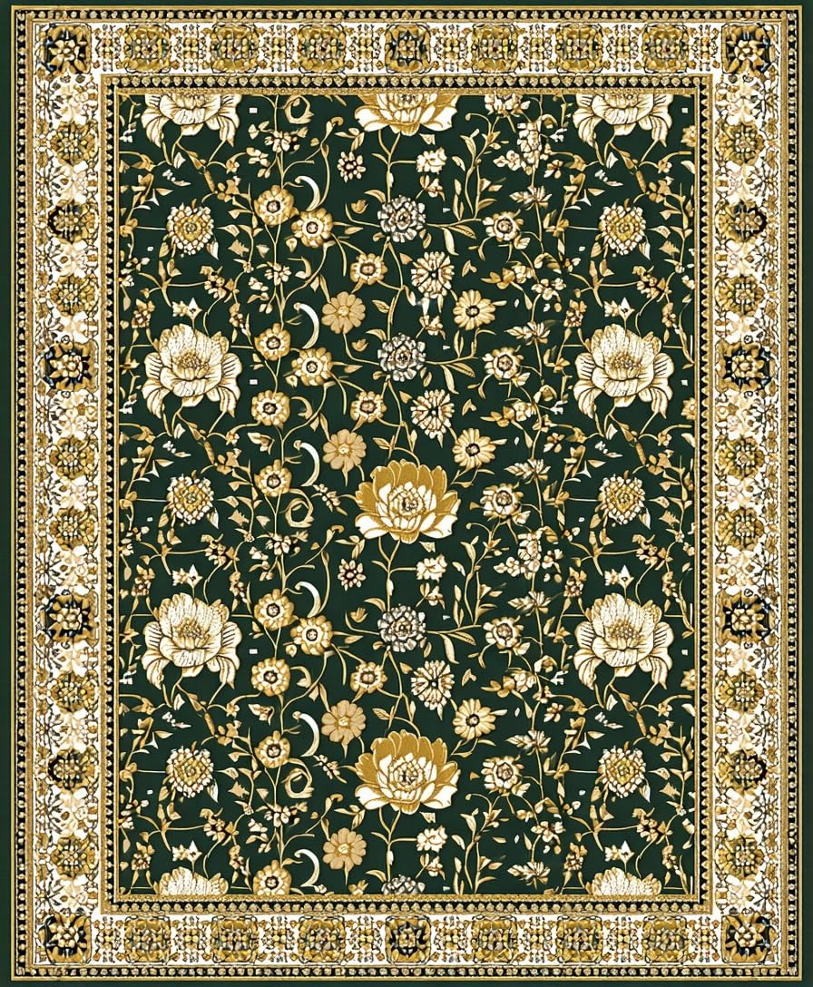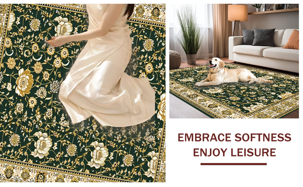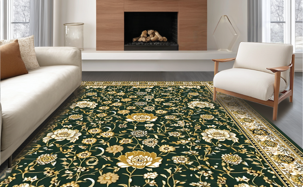 Ultra Soft Area Rug, Non Slip, Stain Resistant, Washable Area Rugs for Living Room, Bedroom, Elegant Vibrant Botanical Patterns(Green) Overview:
