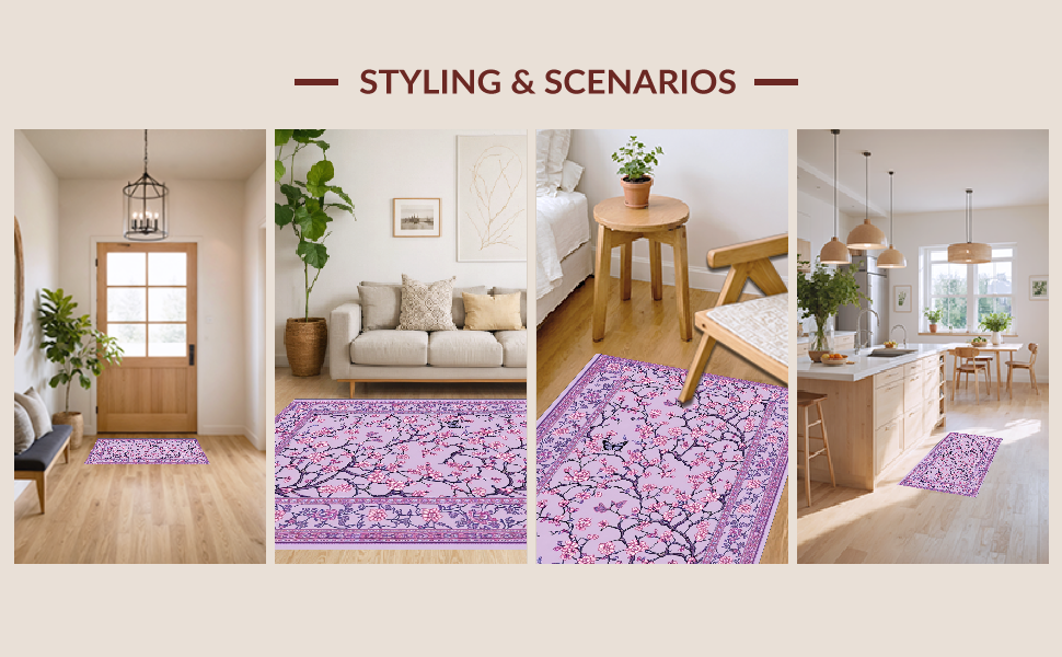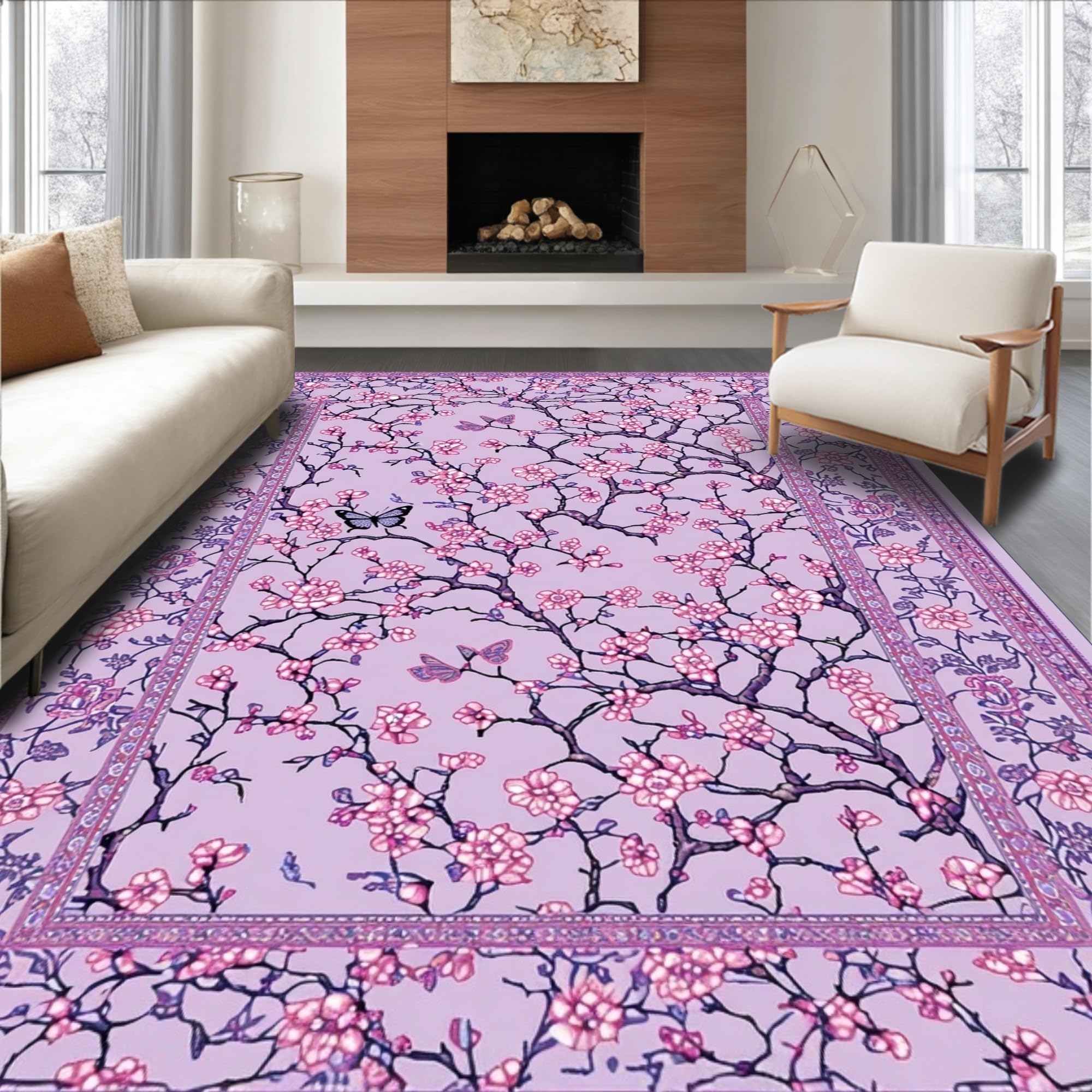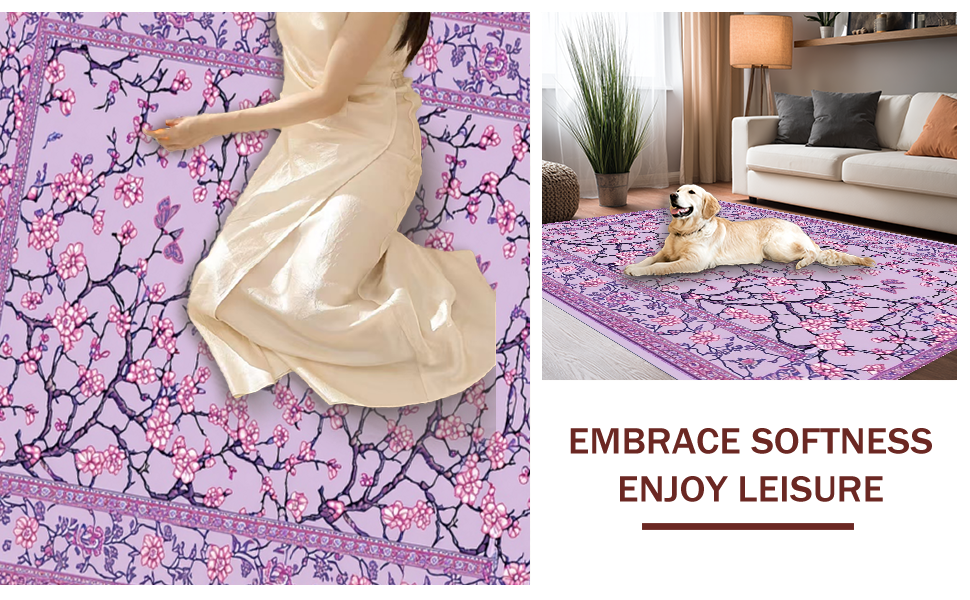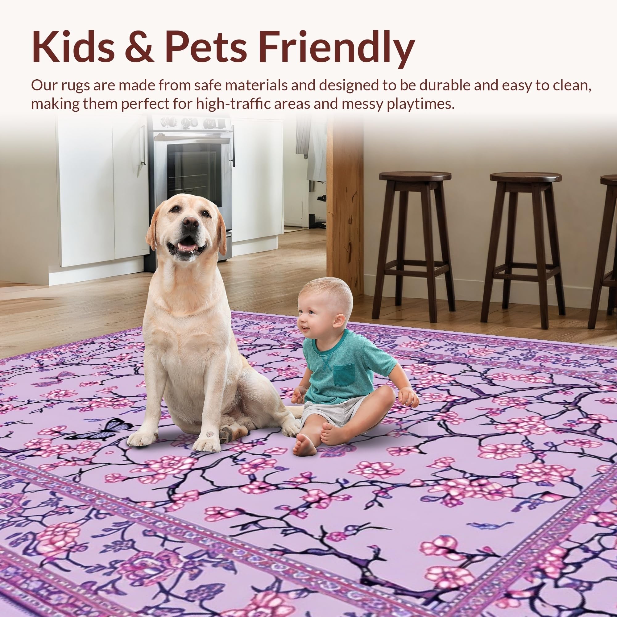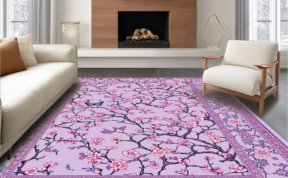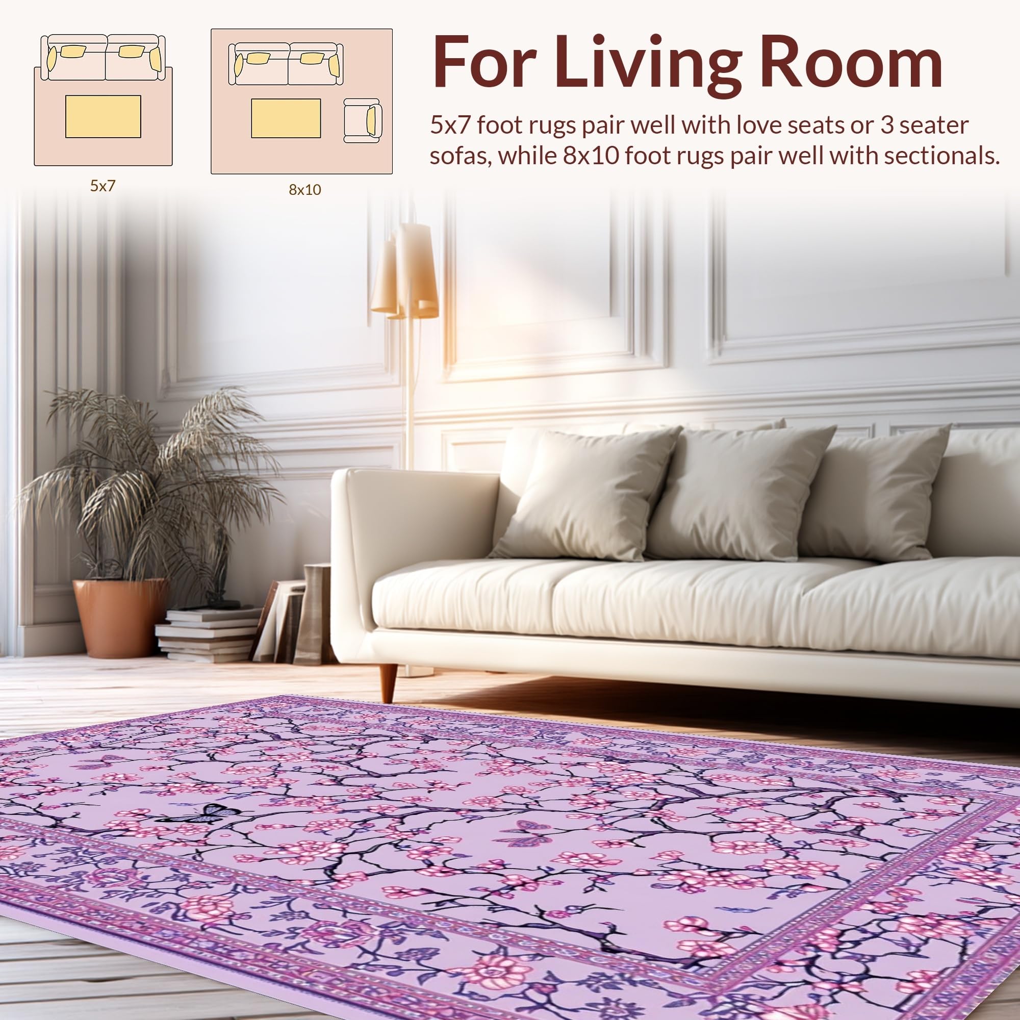 Ultra Soft Area Rug, Non Slip, Stain Resistant, Washable Area Rugs for Living Room, Bedroom, Elegant Vintage Blossom Design(Purple) Overview: