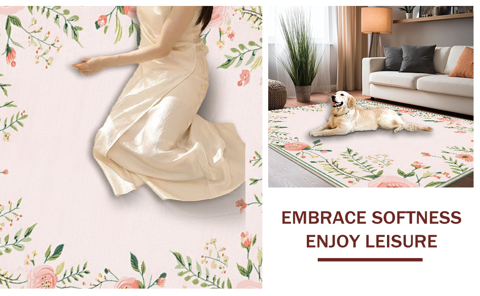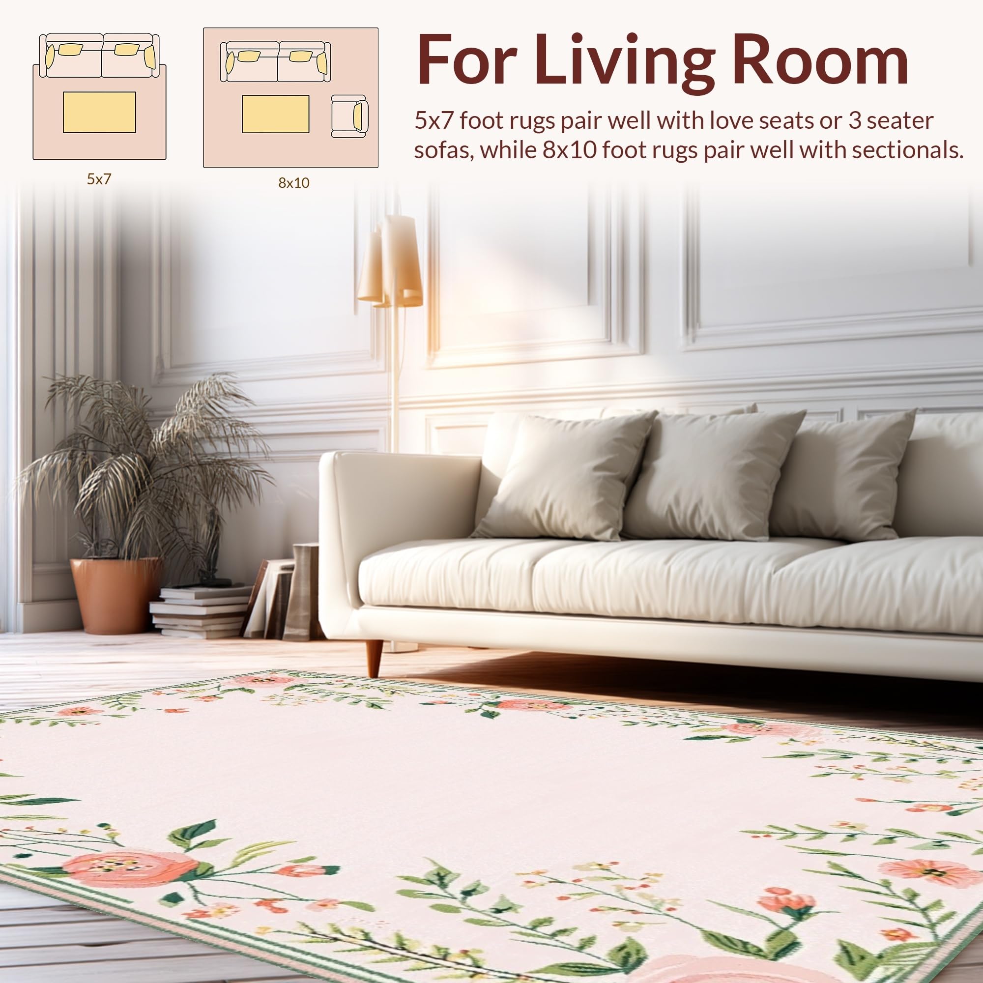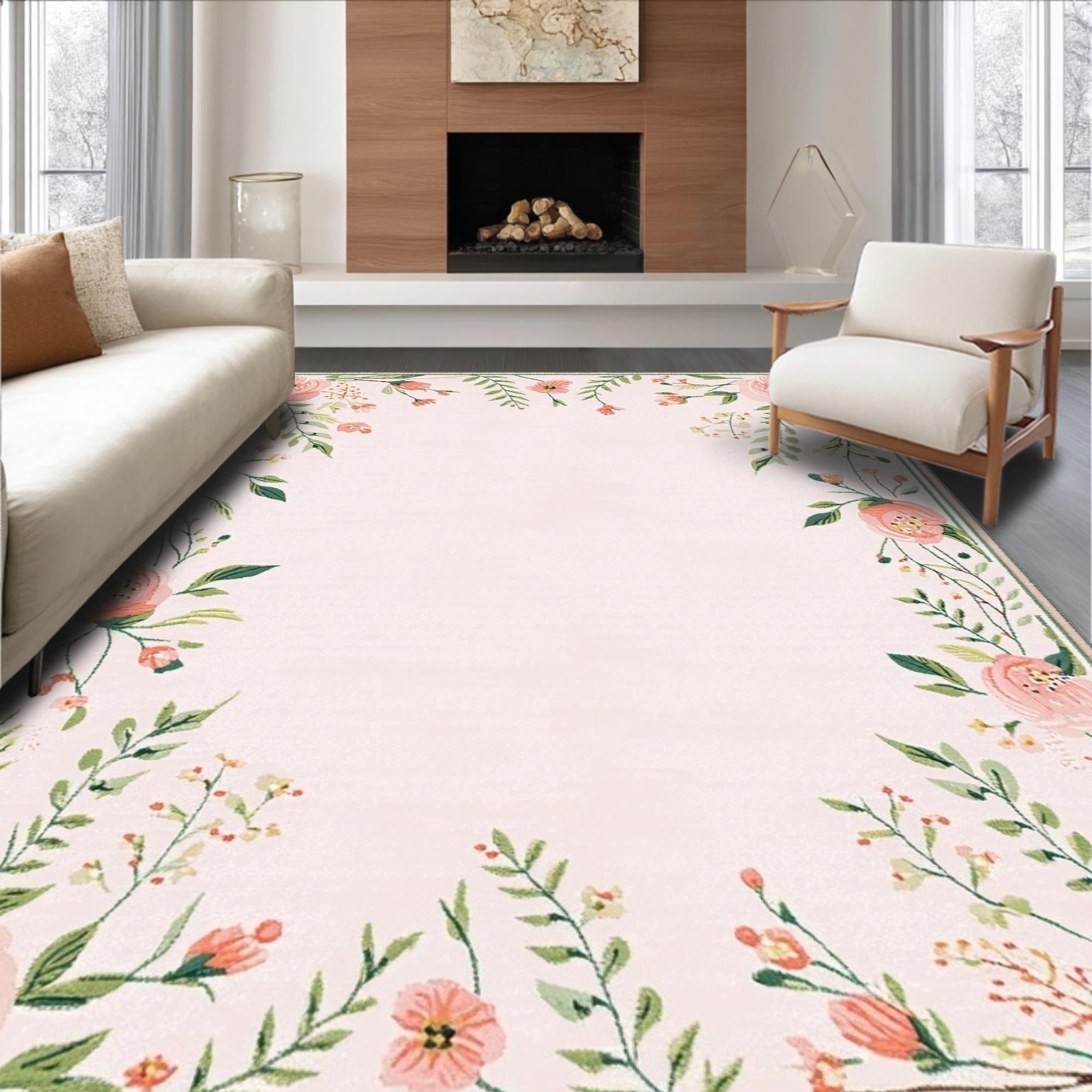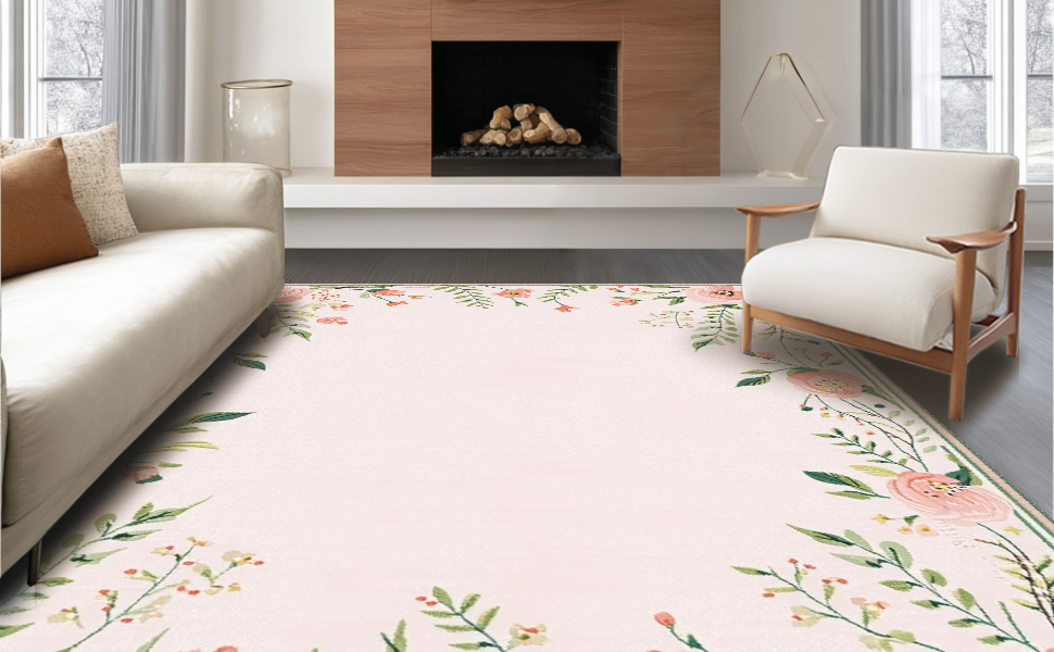 Ultra Soft Area Rug, Non Slip, Stain Resistant, Washable Area Rugs for Living Room, Bedroom, Elegant Vintage Flower Aesthetic(Pink) Overview: