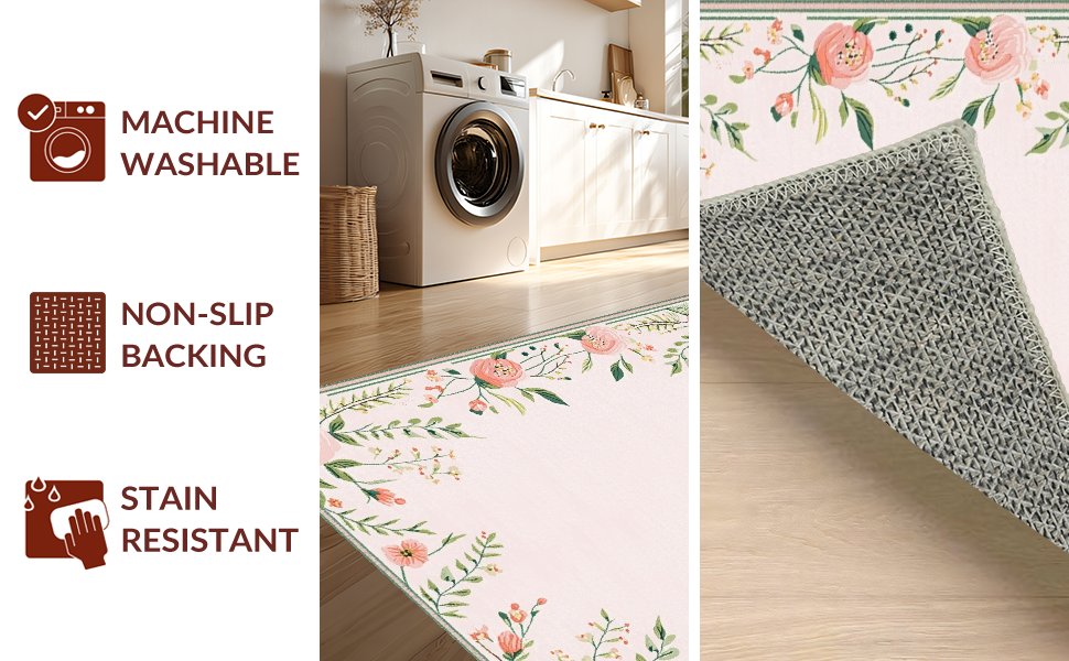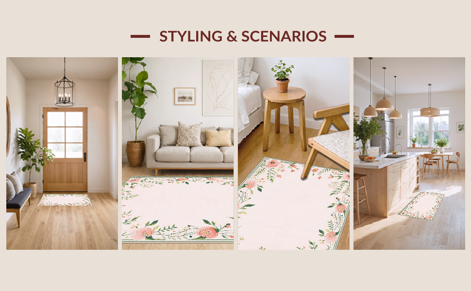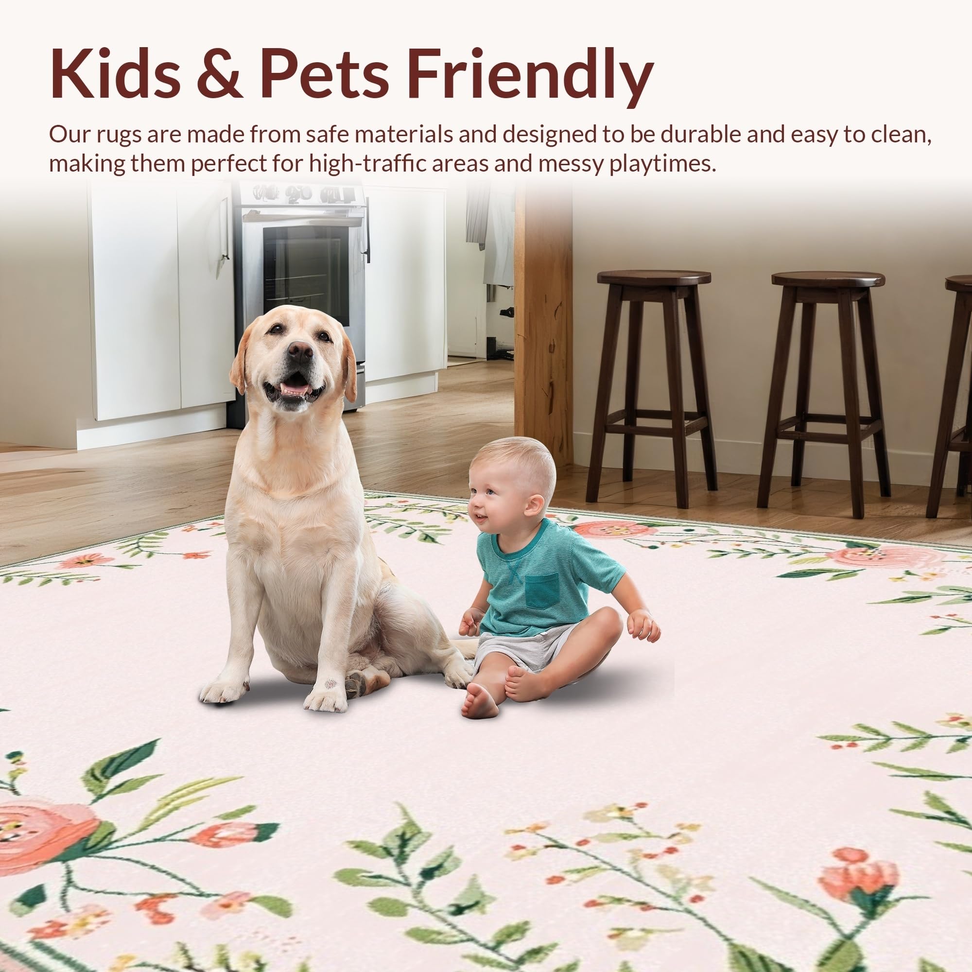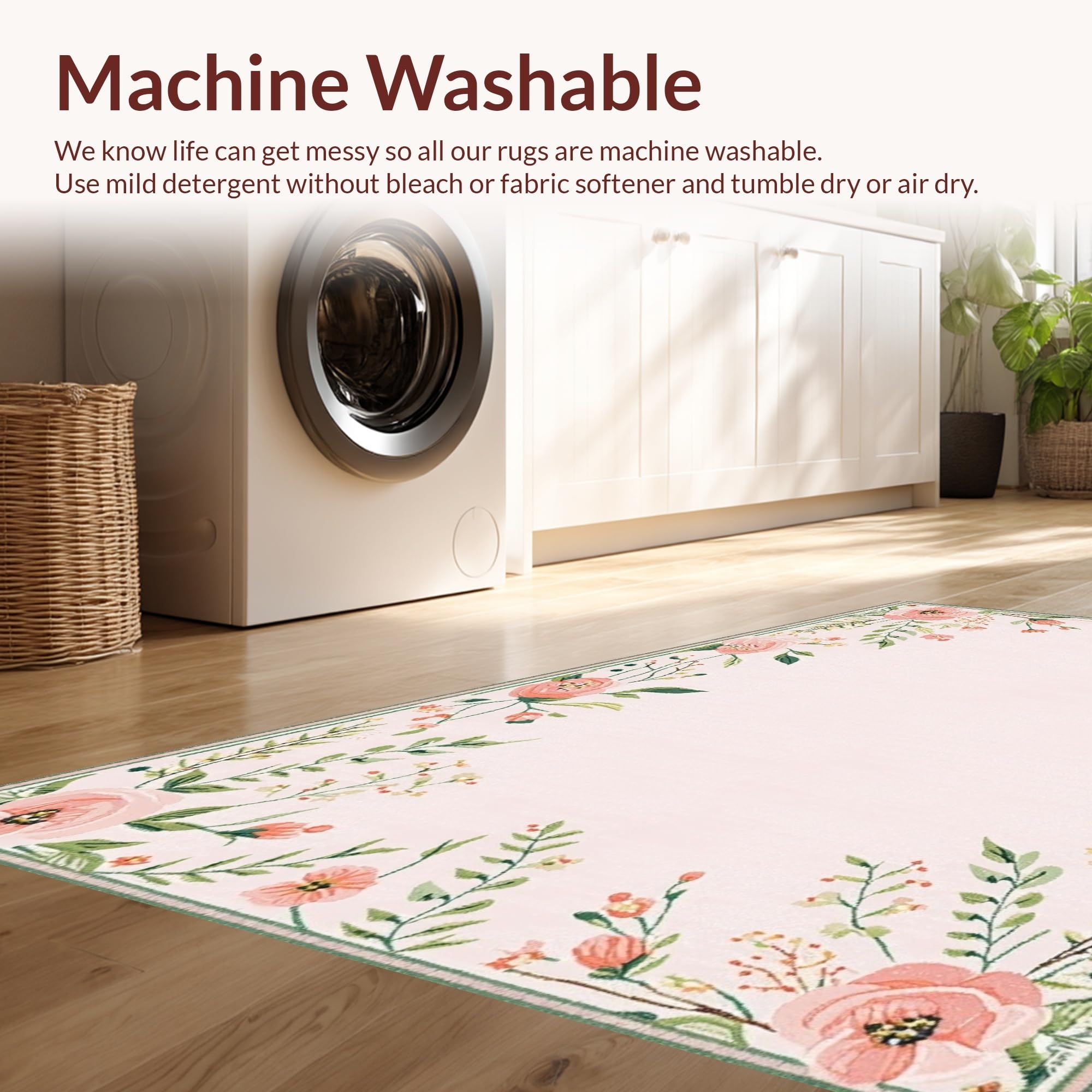 Ultra Soft Area Rug, Non Slip, Stain Resistant, Washable Area Rugs for Living Room, Bedroom, Elegant Vintage Flower Aesthetic(Pink) Overview:
