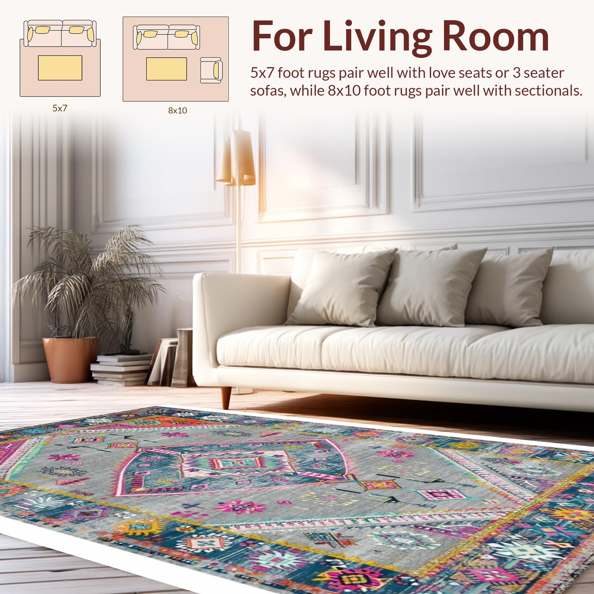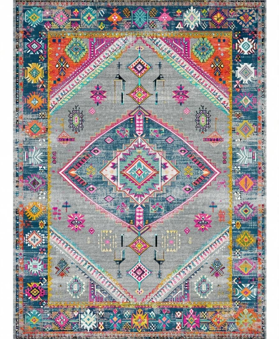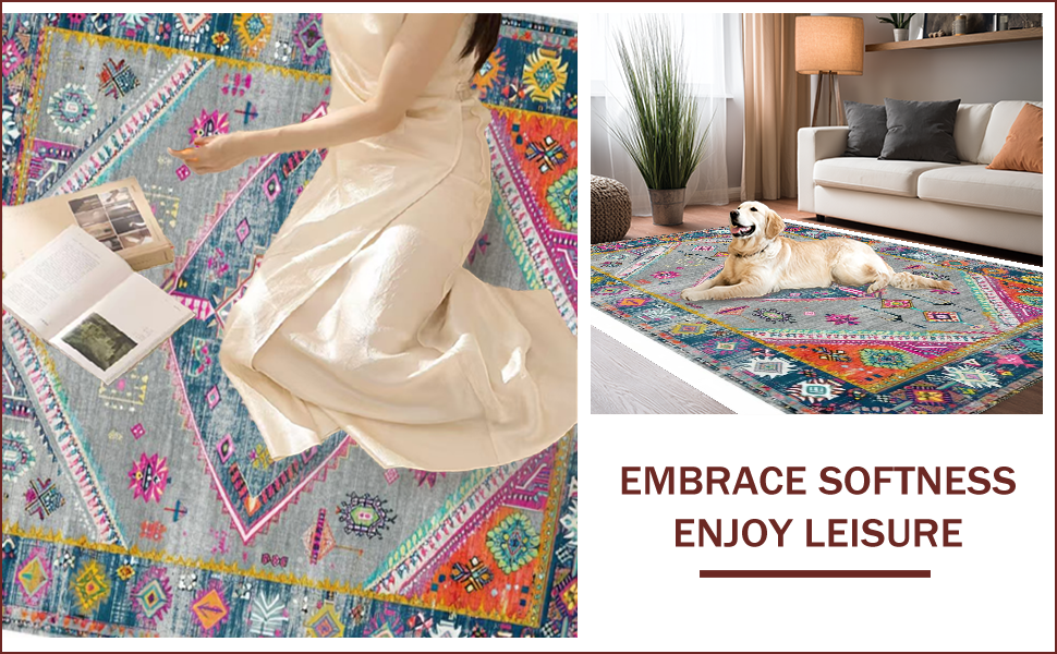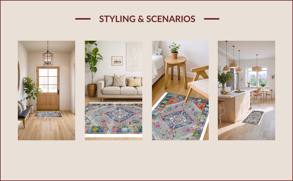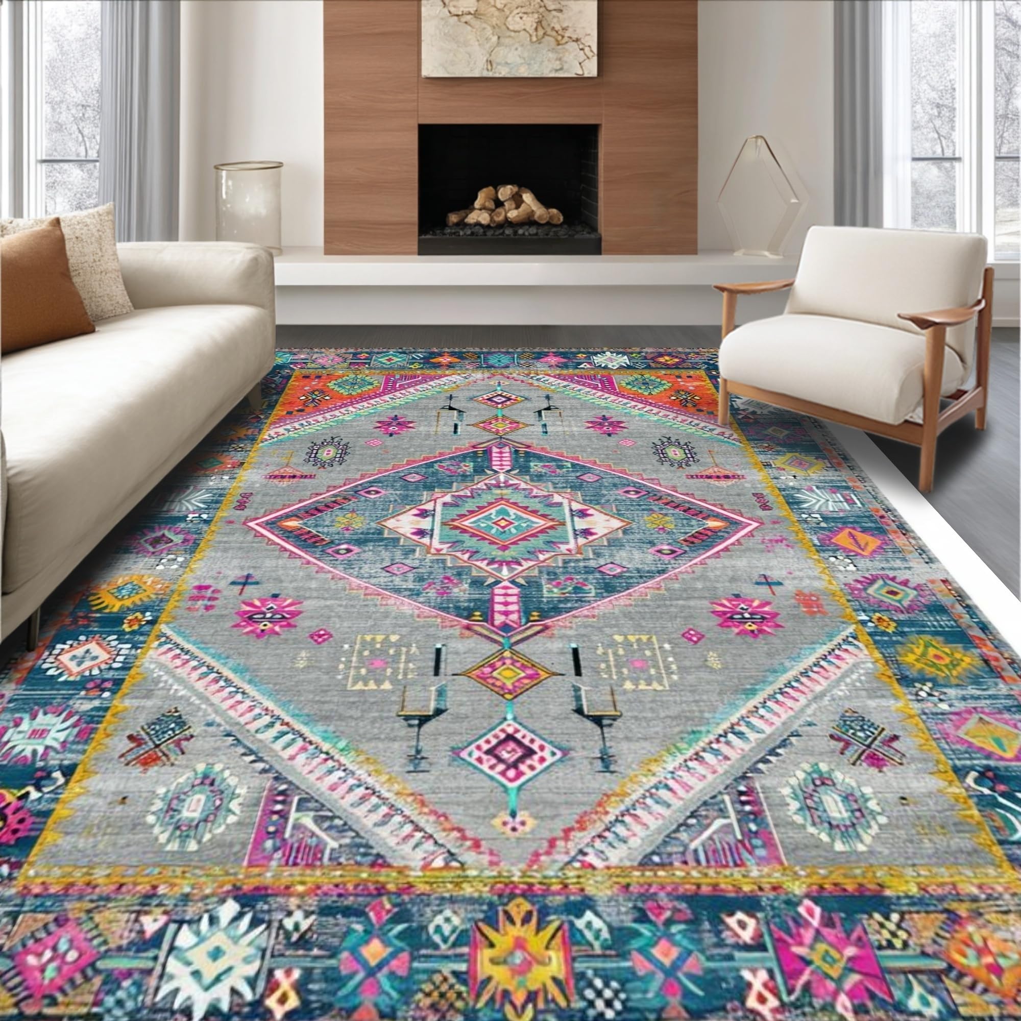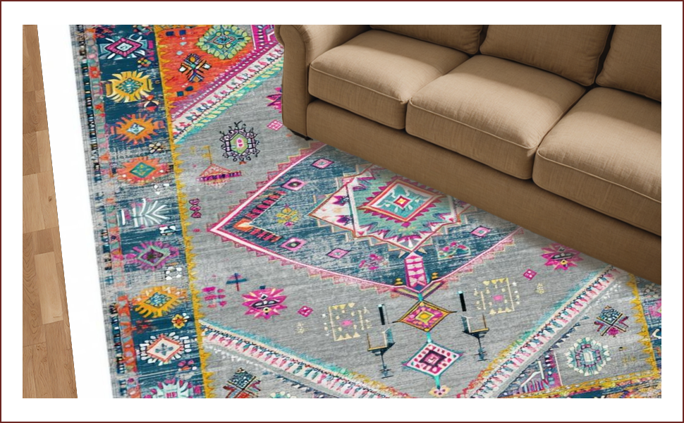 Ultra Soft Area Rug, Non Slip, Stain Resistant, Washable Area Rugs for Living Room, Bedroom, Elegant Vintage Geometric Aesthetic(Gray) Overview: