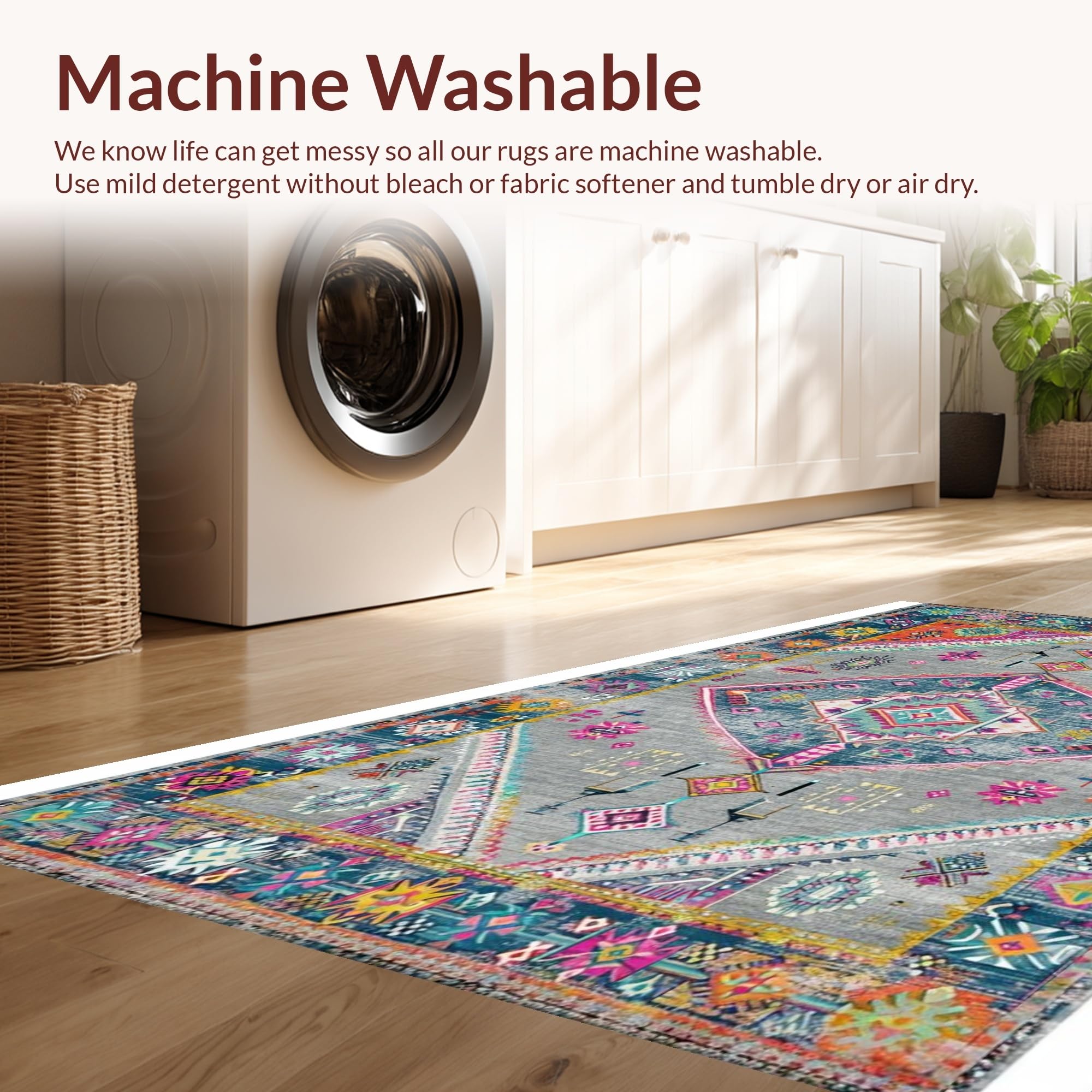 - Machine Washable: Our rugs can be easily thrown in the wash machine.