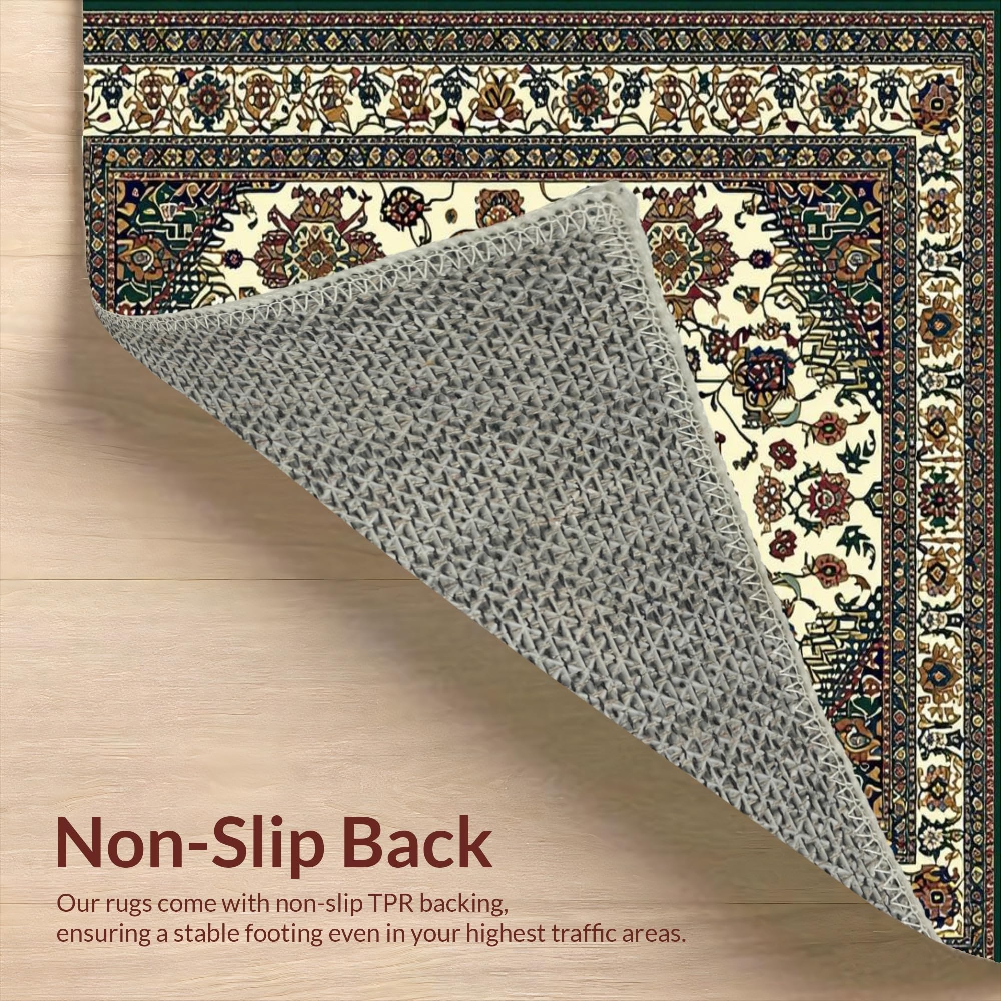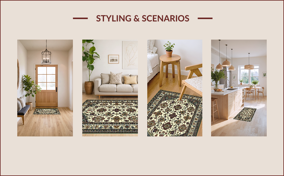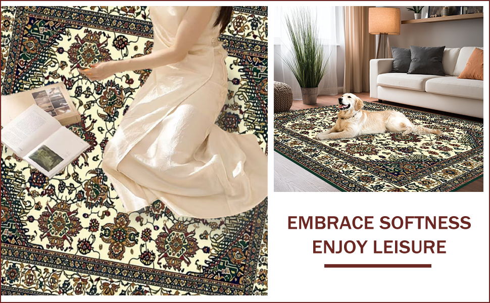 Ultra Soft Area Rug, Non Slip, Stain Resistant, Washable Area Rugs for Living Room, Bedroom, Elegant Vintage Paisley Motif(Beige) Overview: