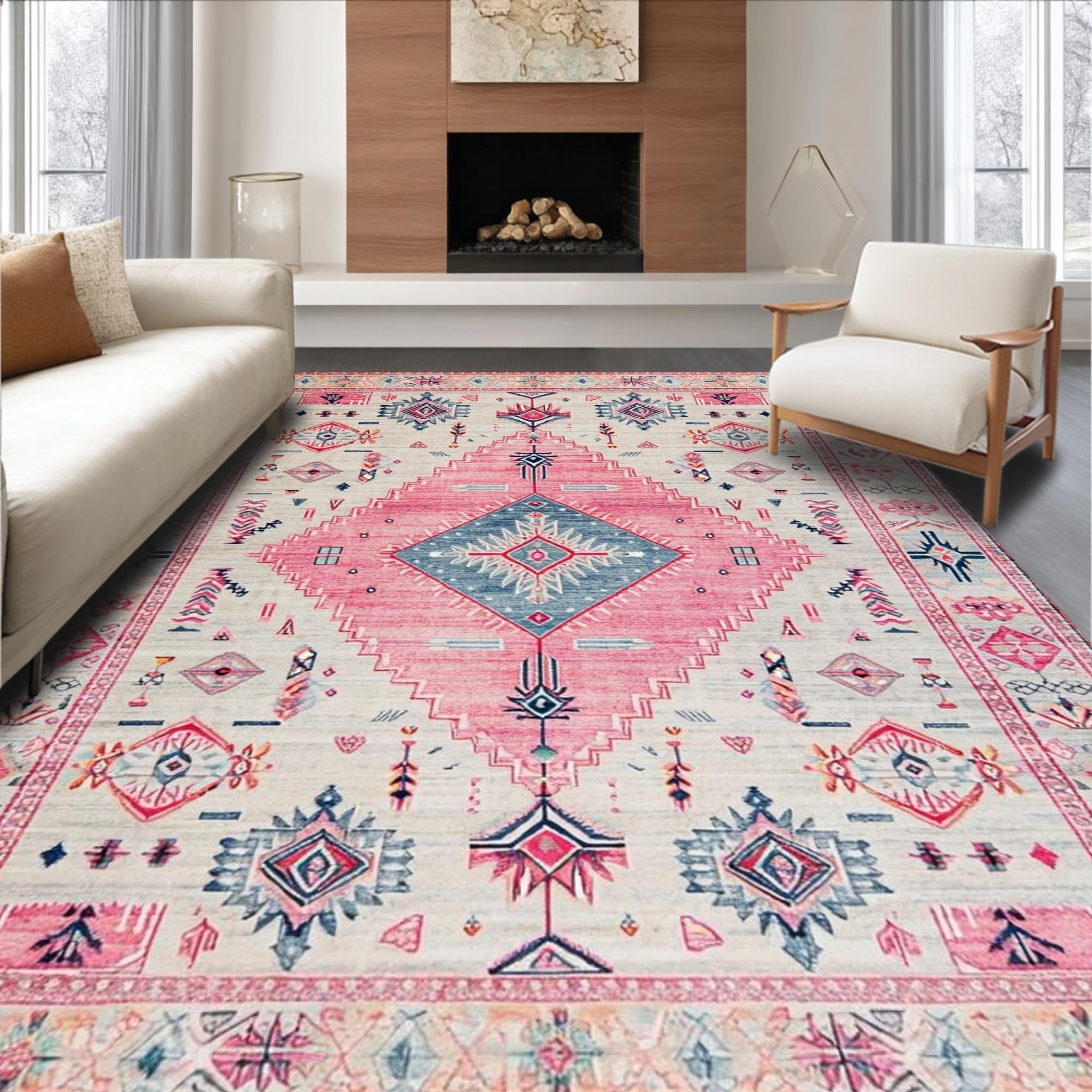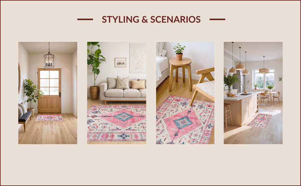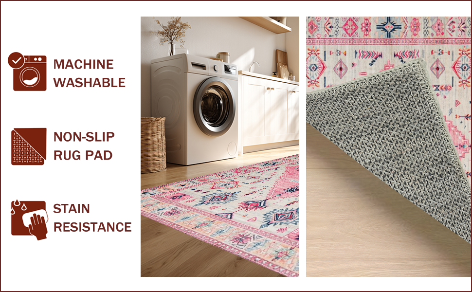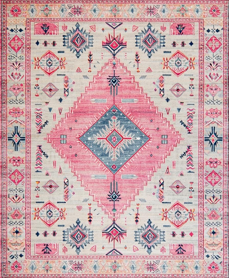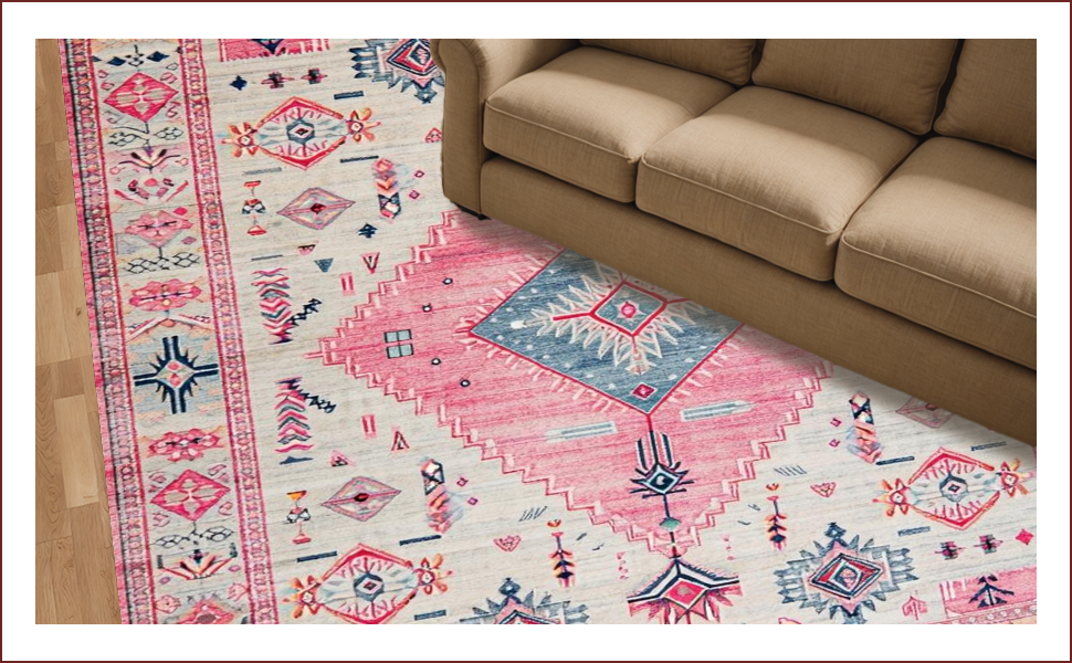 Ultra Soft Area Rug, Non Slip, Stain Resistant, Washable Area Rugs for Living Room, Bedroom, Elegant Vintage Tiled Composition(Pink) Overview: