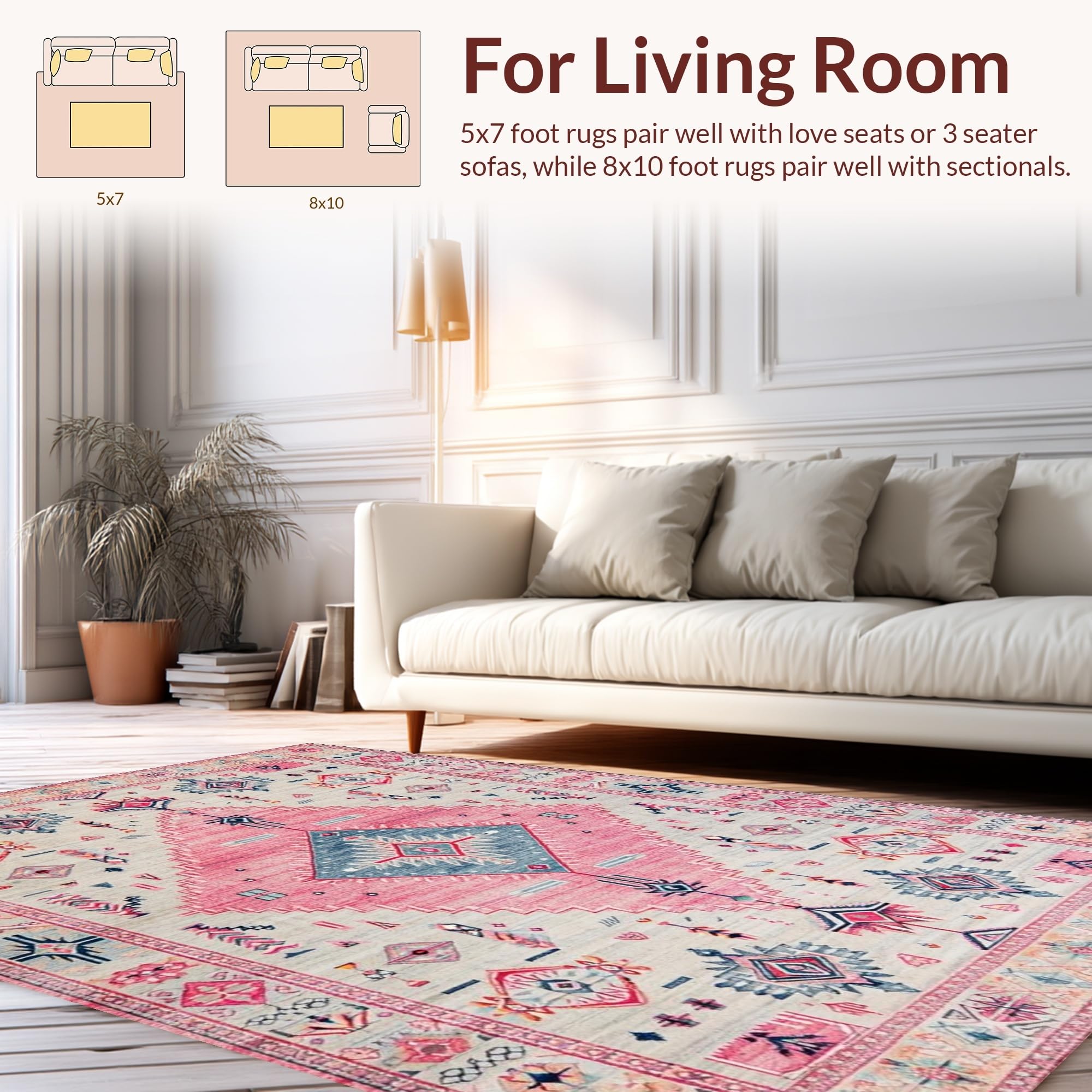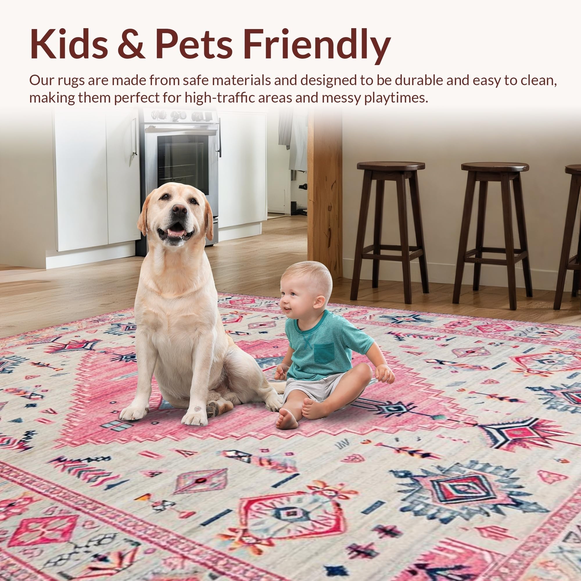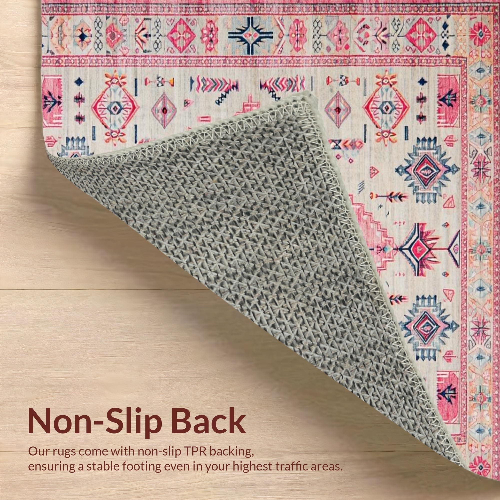 Ultra Soft Area Rug, Non Slip, Stain Resistant, Washable Area Rugs for Living Room, Bedroom, Elegant Vintage Tiled Composition(Pink) Overview: