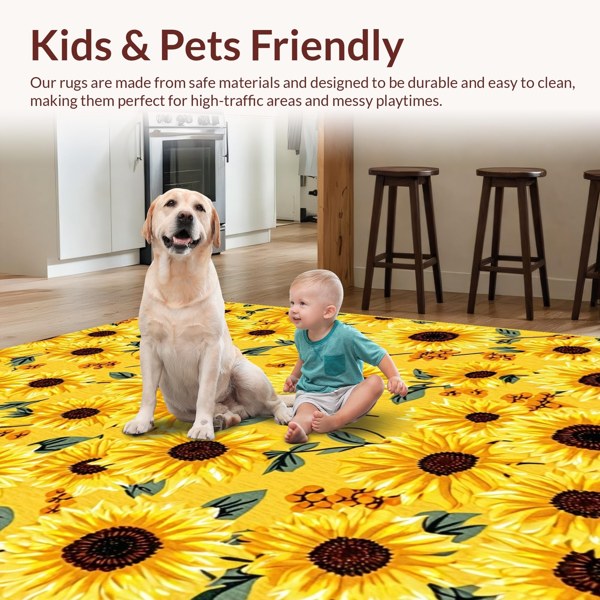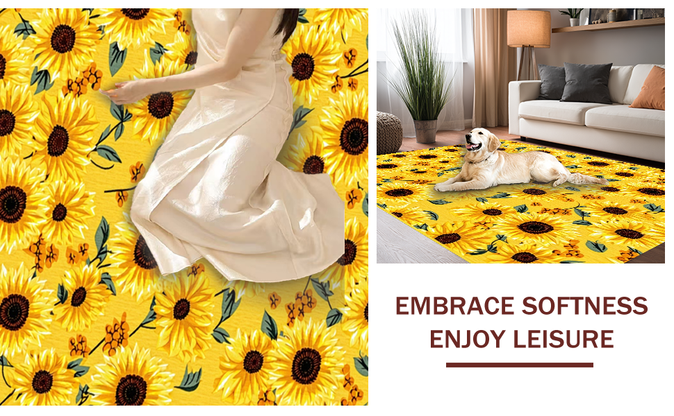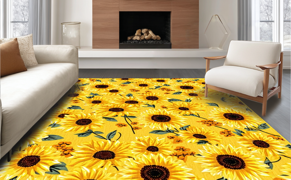 Ultra Soft Area Rug, Non Slip, Stain Resistant, Washable Area Rugs for Living Room, Bedroom, Elegant Warm-Toned Nature Pattern(Yellow) Overview: