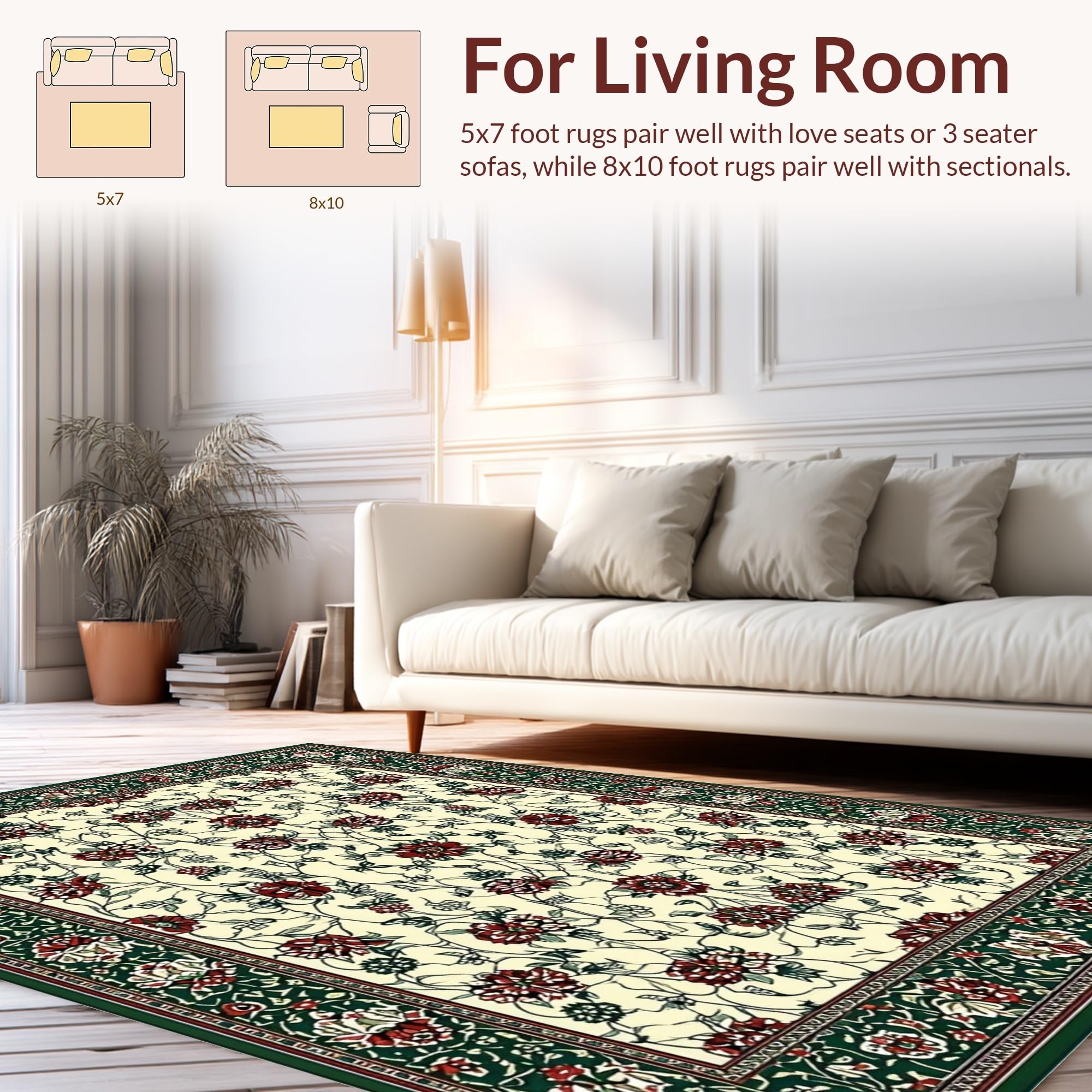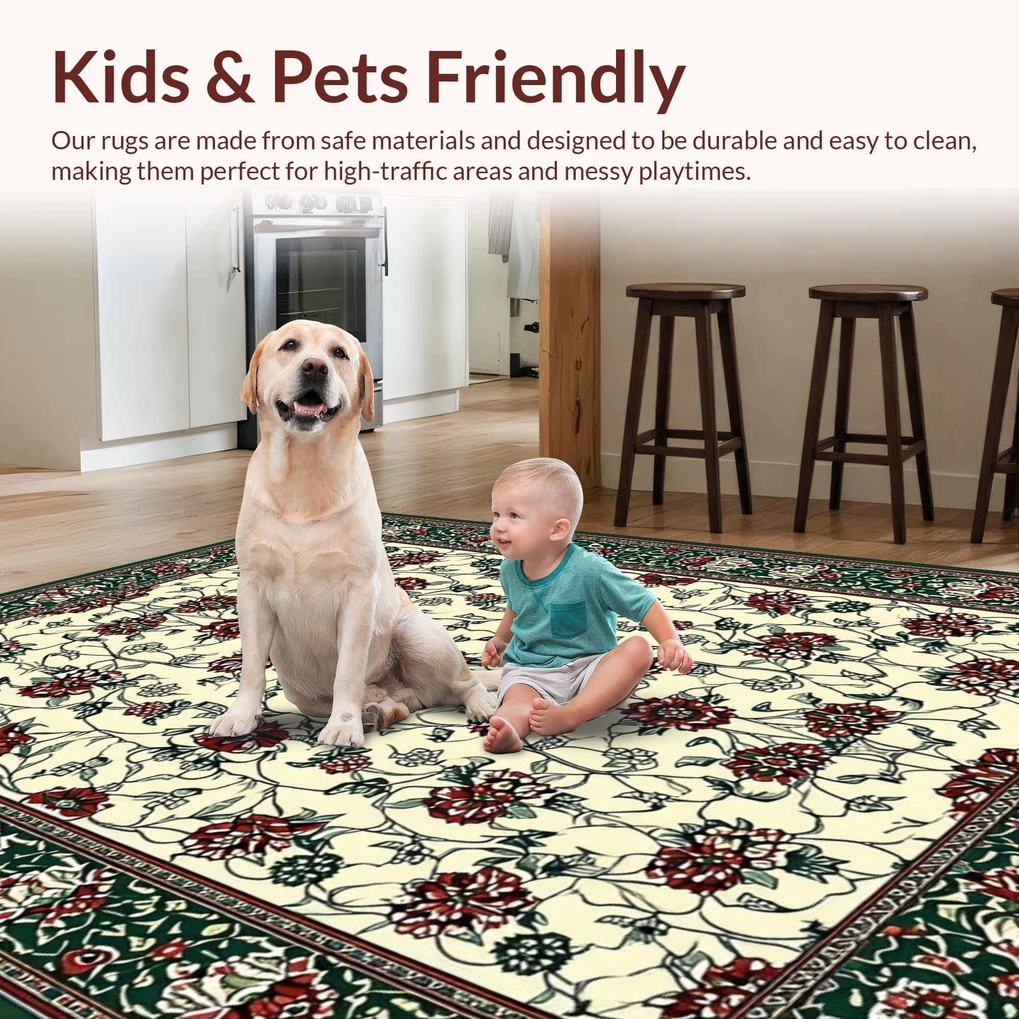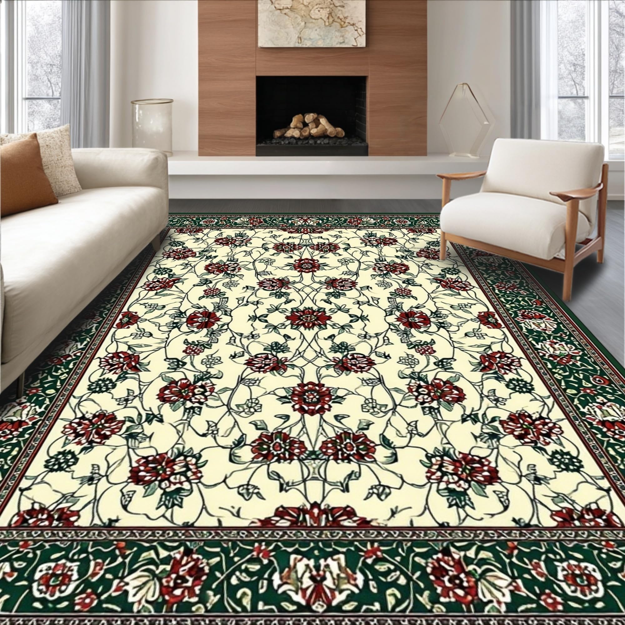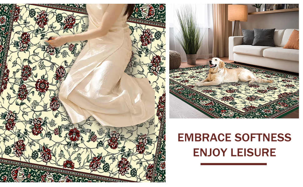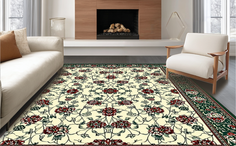 Ultra Soft Area Rug, Non Slip, Stain Resistant, Washable Area Rugs for Living Room, Bedroom, Elegant Whimsical Floral Composition(Ivory) Overview: