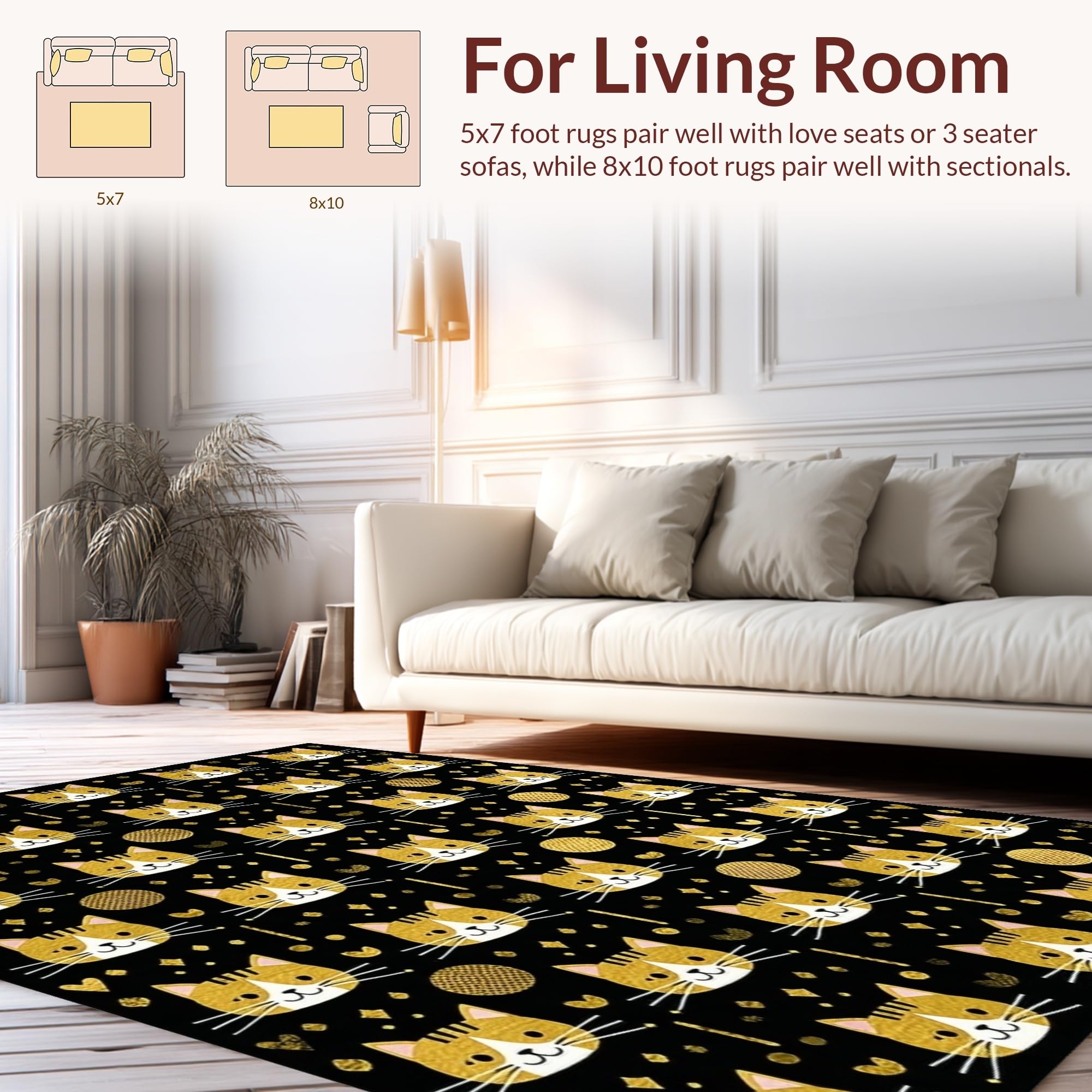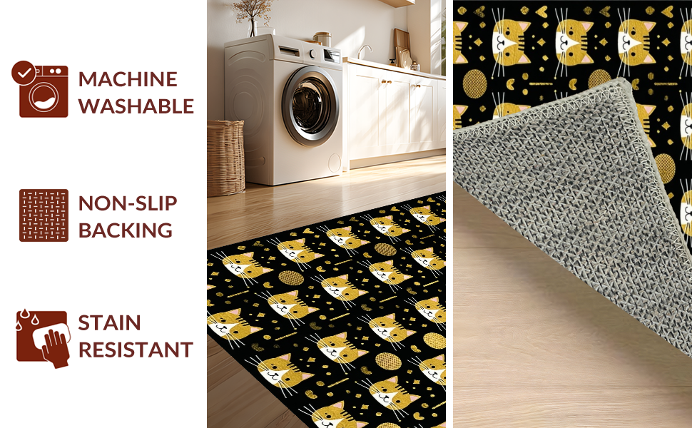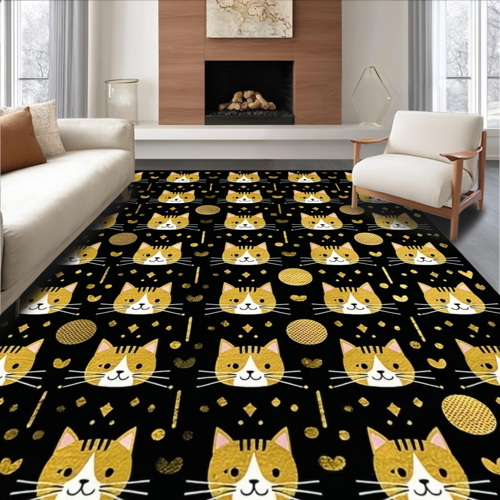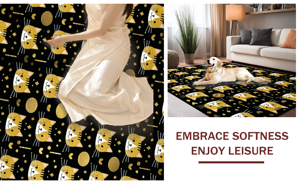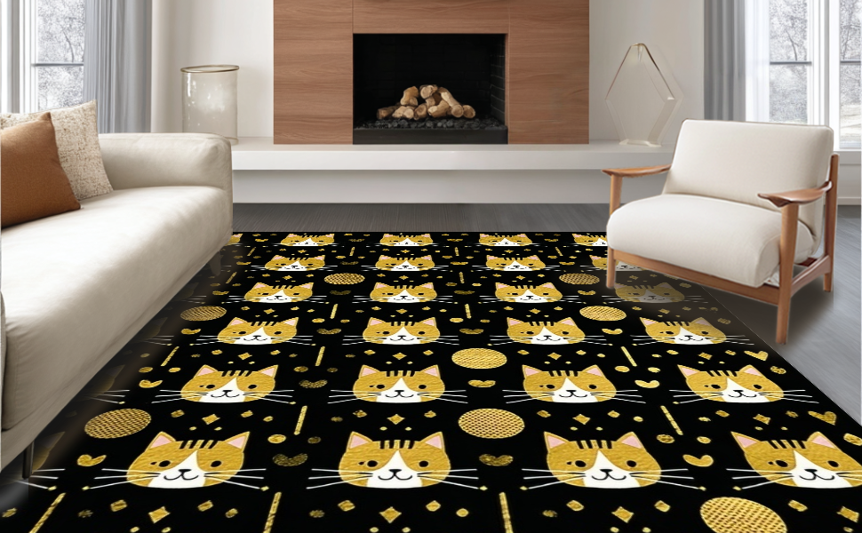 Ultra Soft Area Rug, Non Slip, Stain Resistant, Washable Area Rugs for Living Room, Bedroom, Elegant Whimsical Pet Design Piece(Black) Overview: