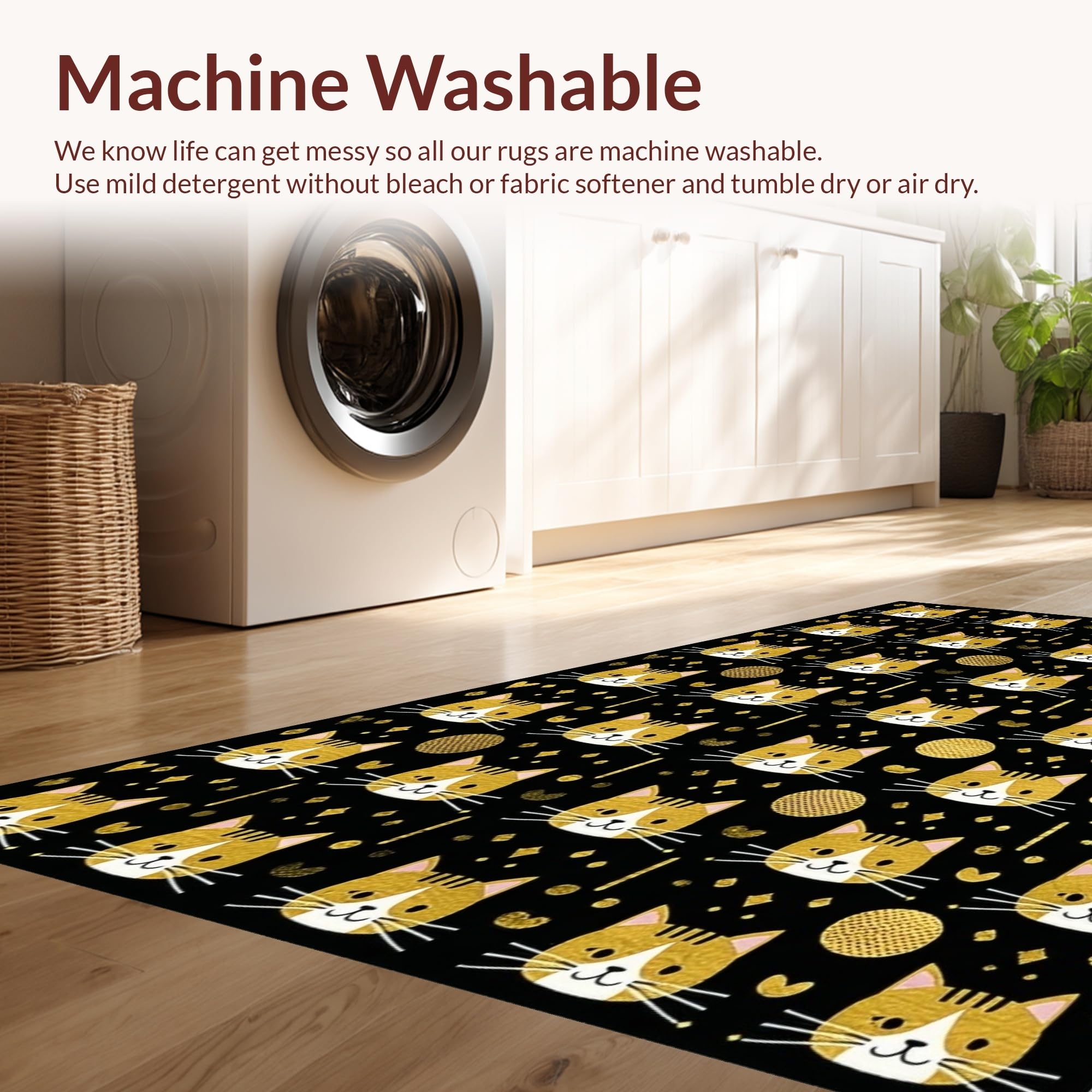 - Machine Washable: Our rugs can be easily thrown in the wash machine.