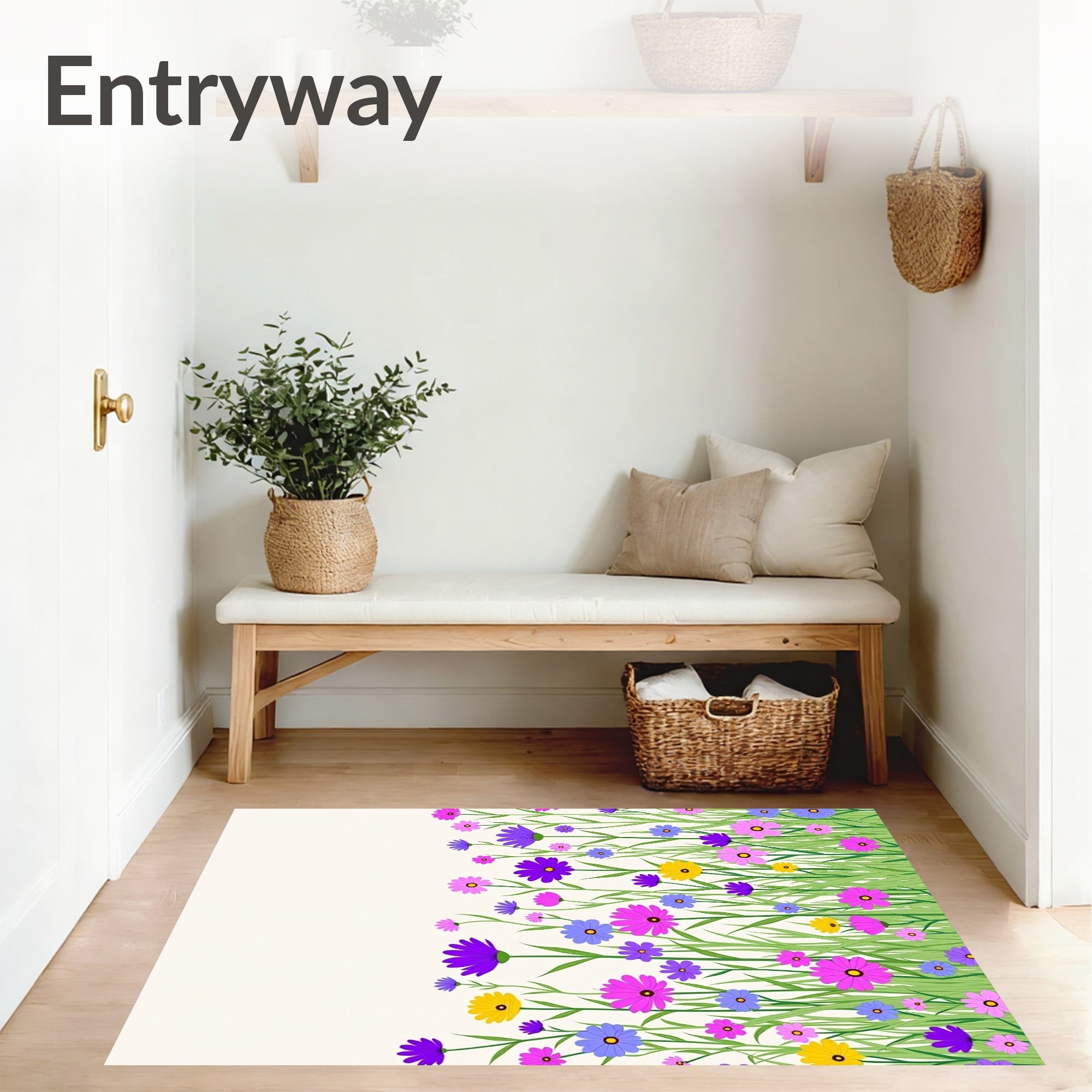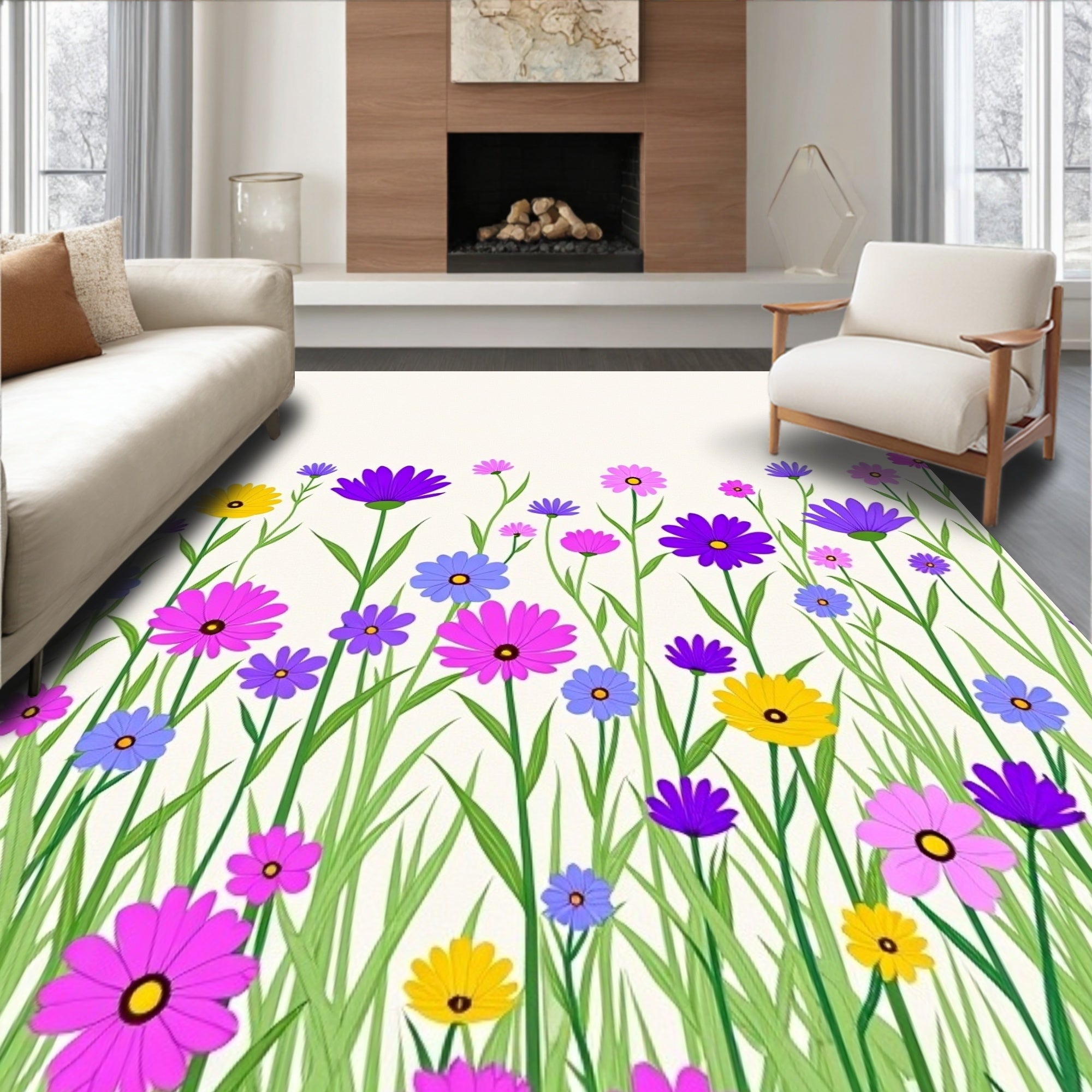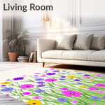 Ultra Soft Area Rug, Non Slip, Stain Resistant, Washable Area Rugs for Living Room, Bedroom, Elegant Wildflower Meadow Symphony Heirloom Artwork(Pink) Overview: