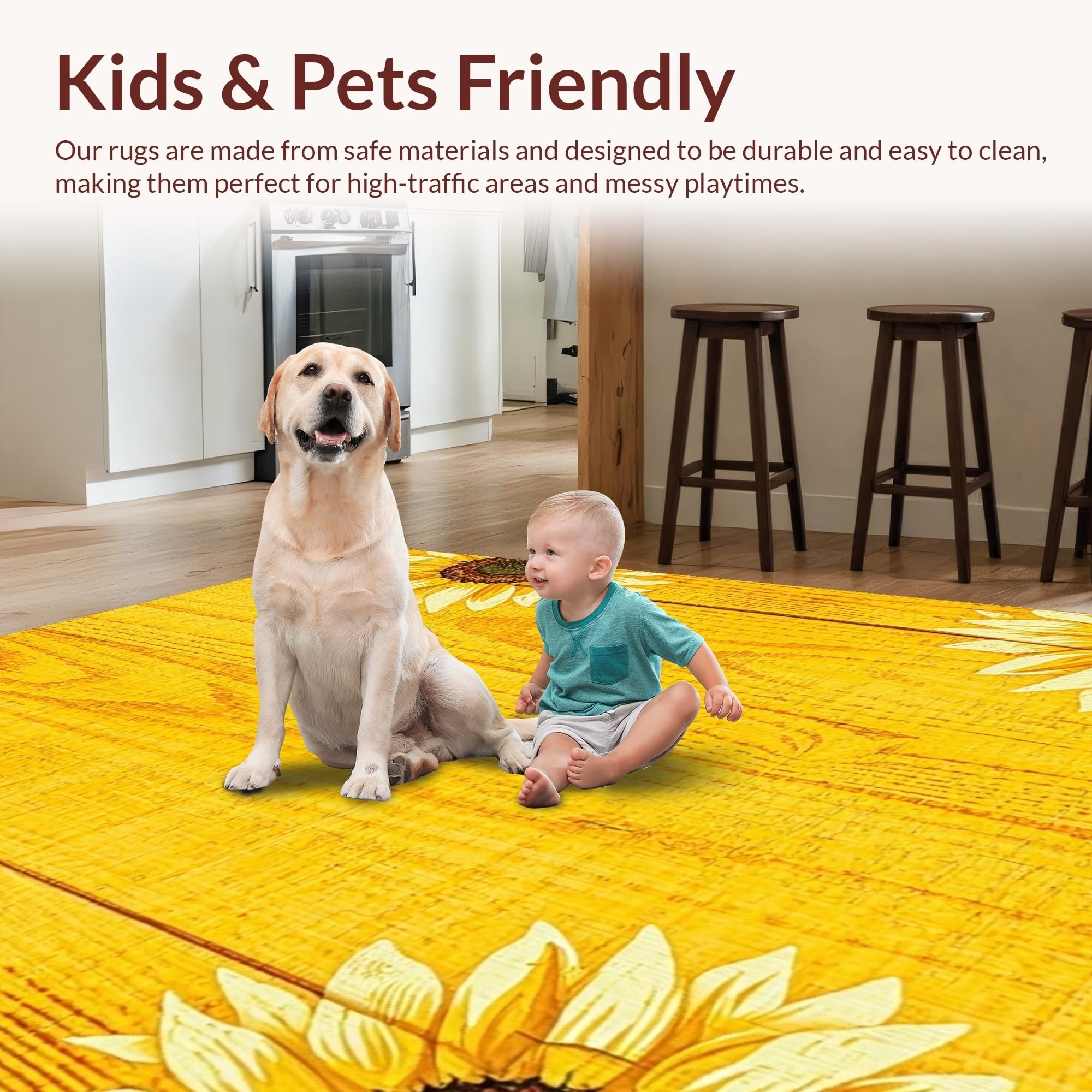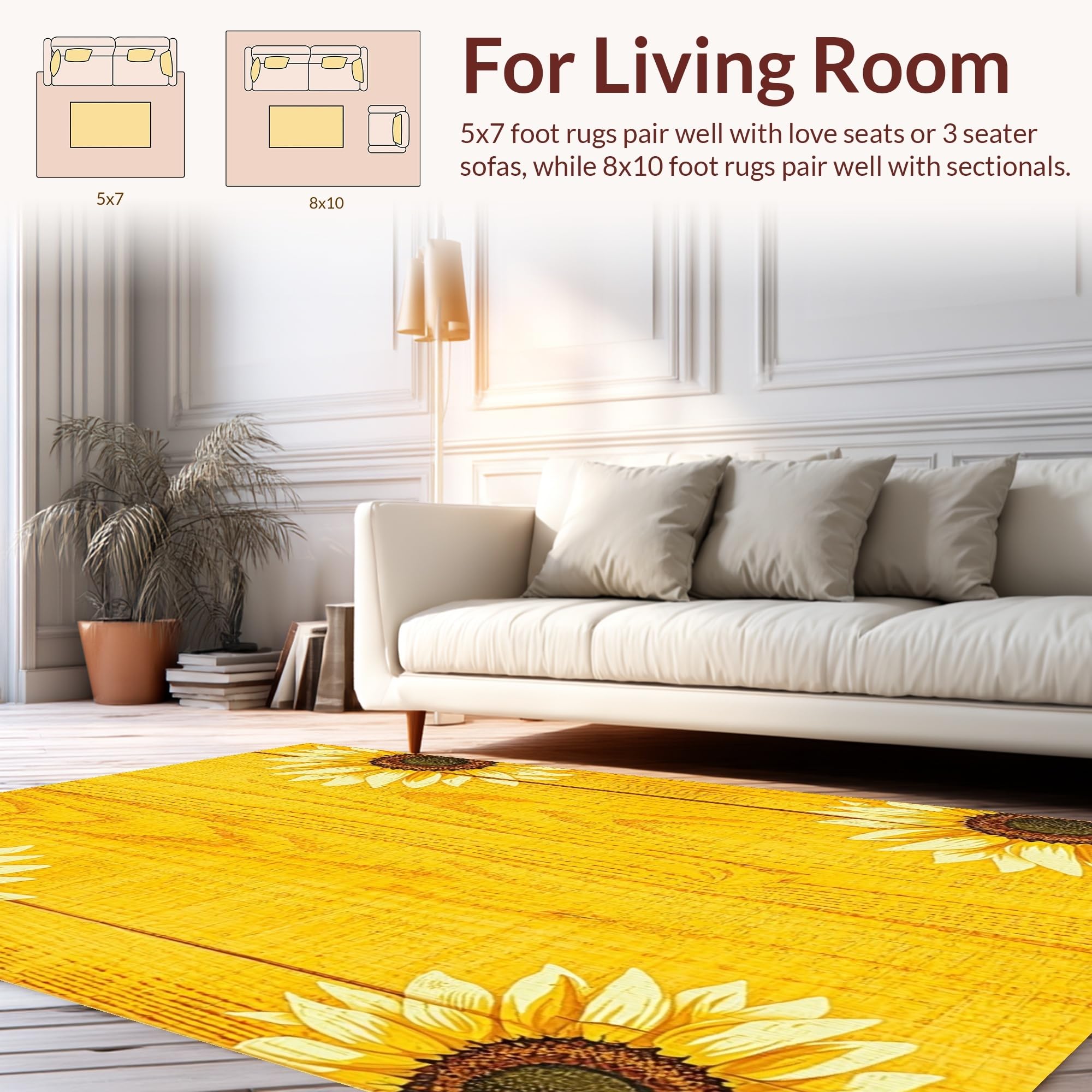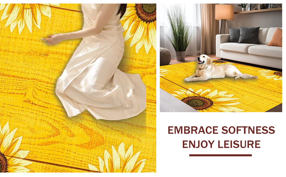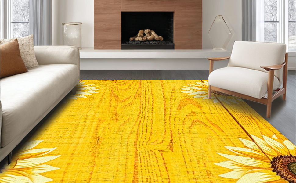 Ultra Soft Area Rug, Non Slip, Stain Resistant, Washable Area Rugs for Living Room, Bedroom, Elegant Wooden Board Floral Art(Yellow) Overview: