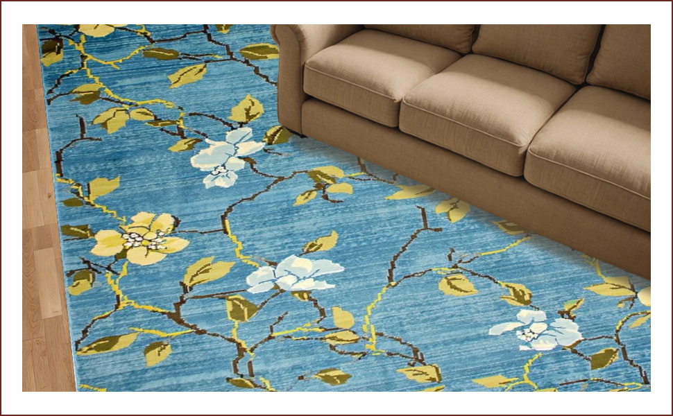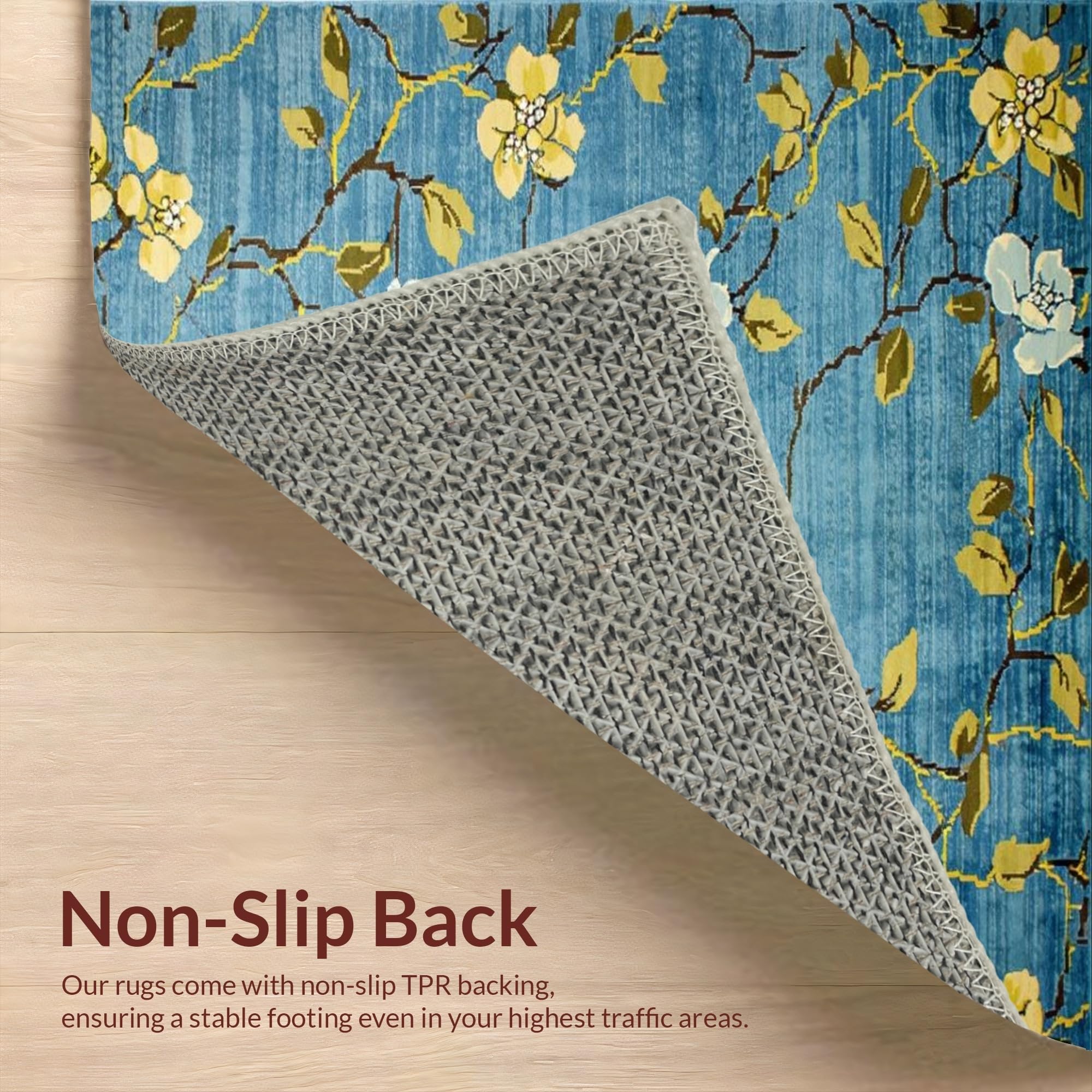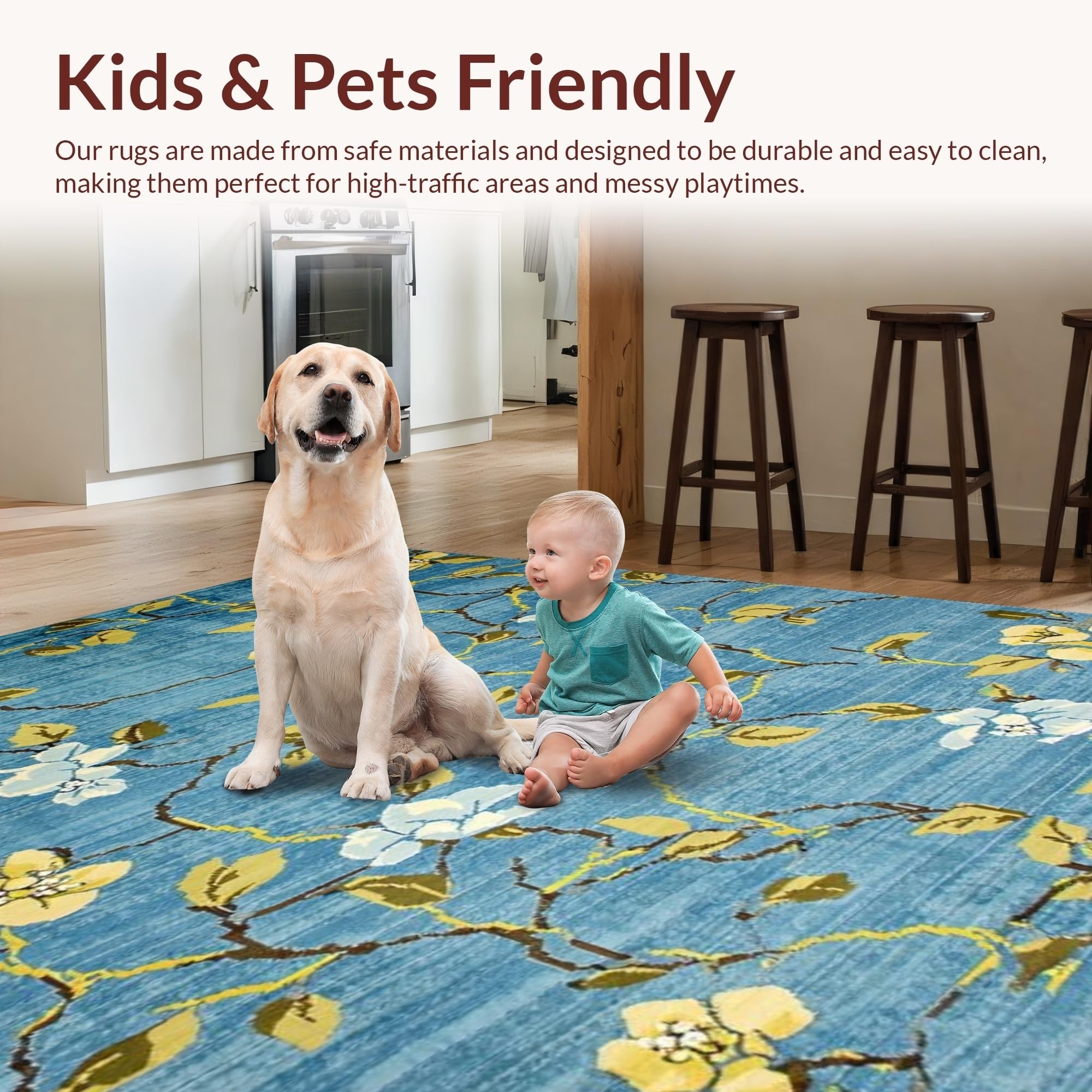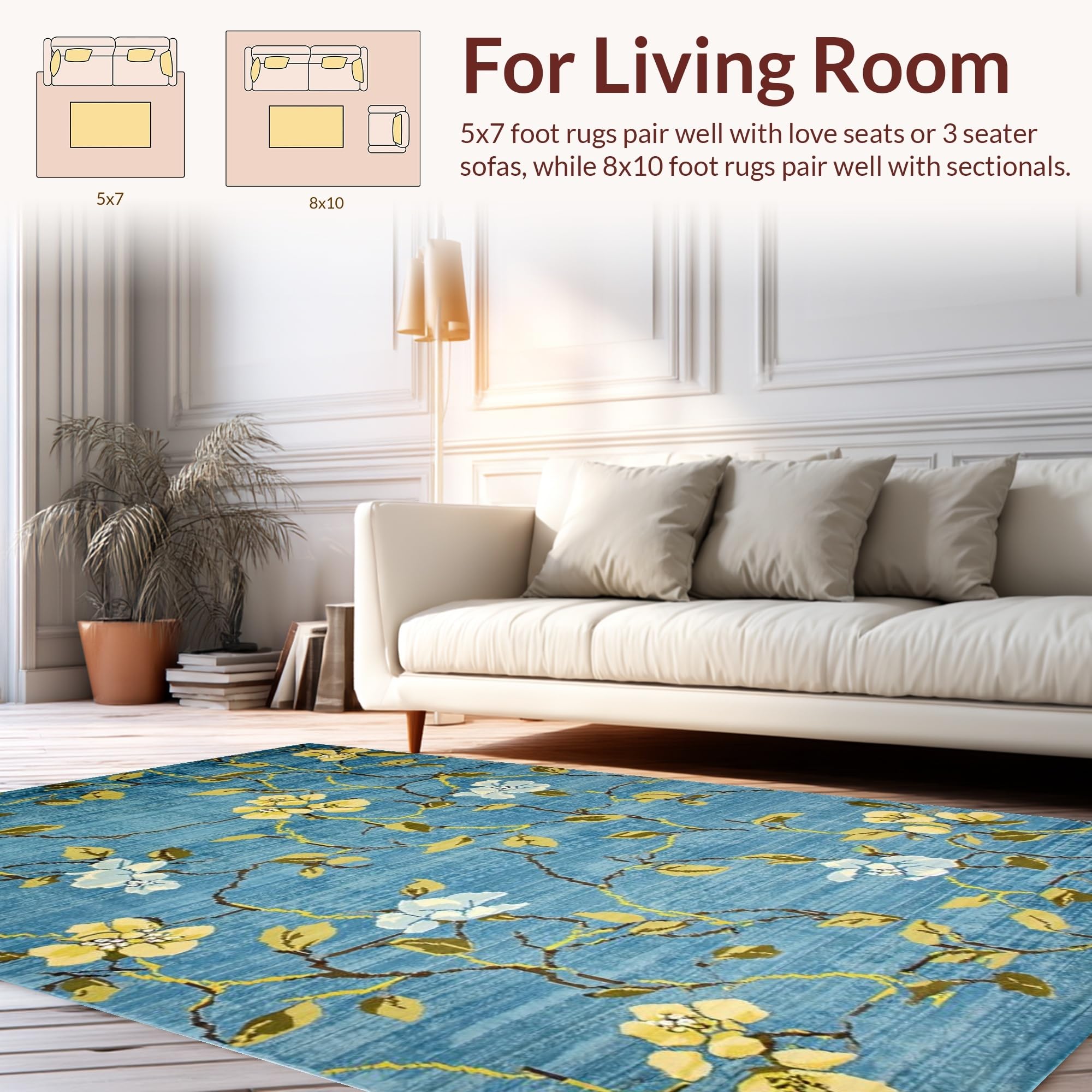 Ultra Soft Area Rug, Non Slip, Stain Resistant, Washable Area Rugs for Living Room, Bedroom, Elegant Yellow Trellis Pattern(Blue) Overview: