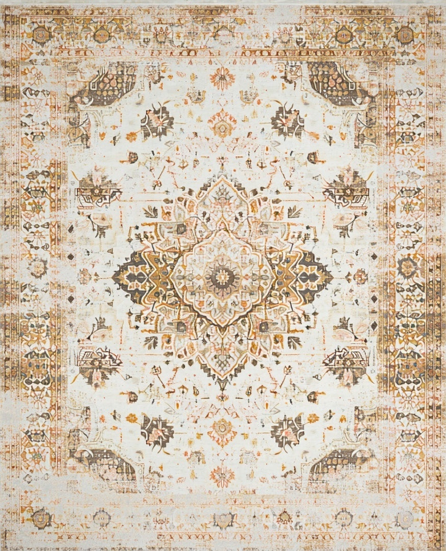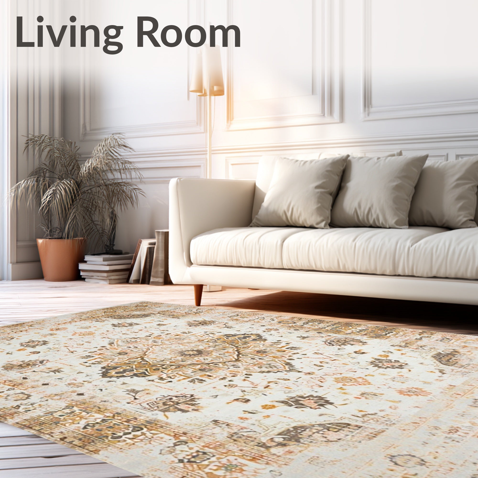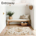 Ultra Soft Area Rug, Non Slip, Stain Resistant, Washable Area Rugs for Living Room, Bedroom, Elodie Collection Elegant Medallion Area with Distressed Vintage Charm(Beige) Overview: