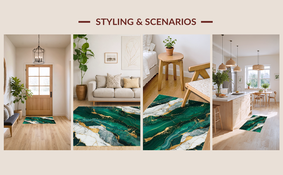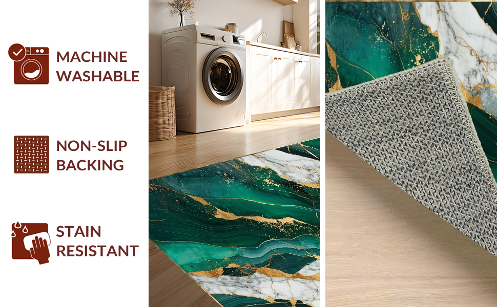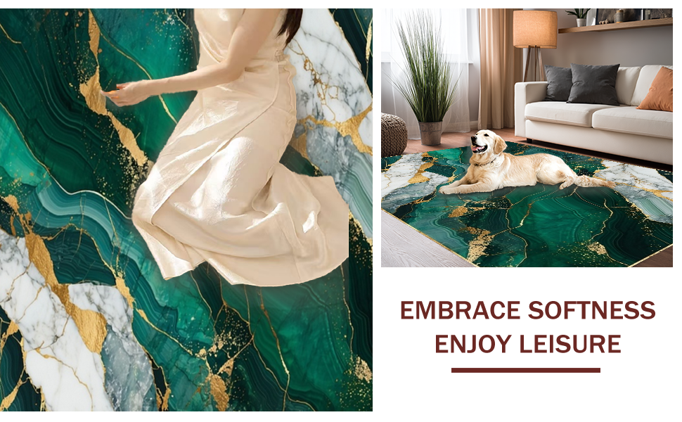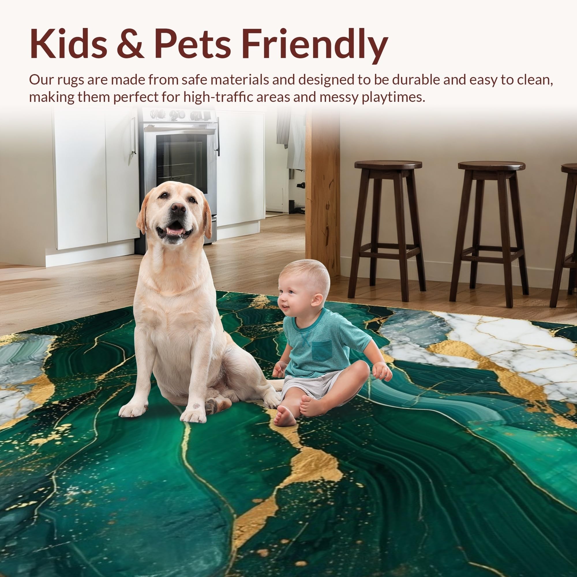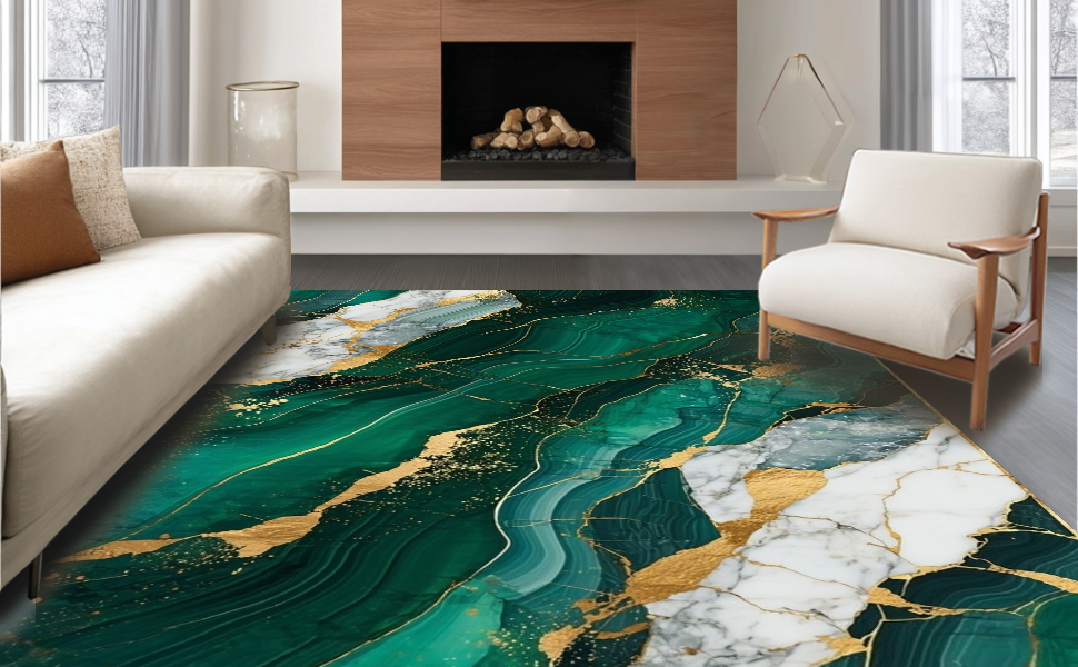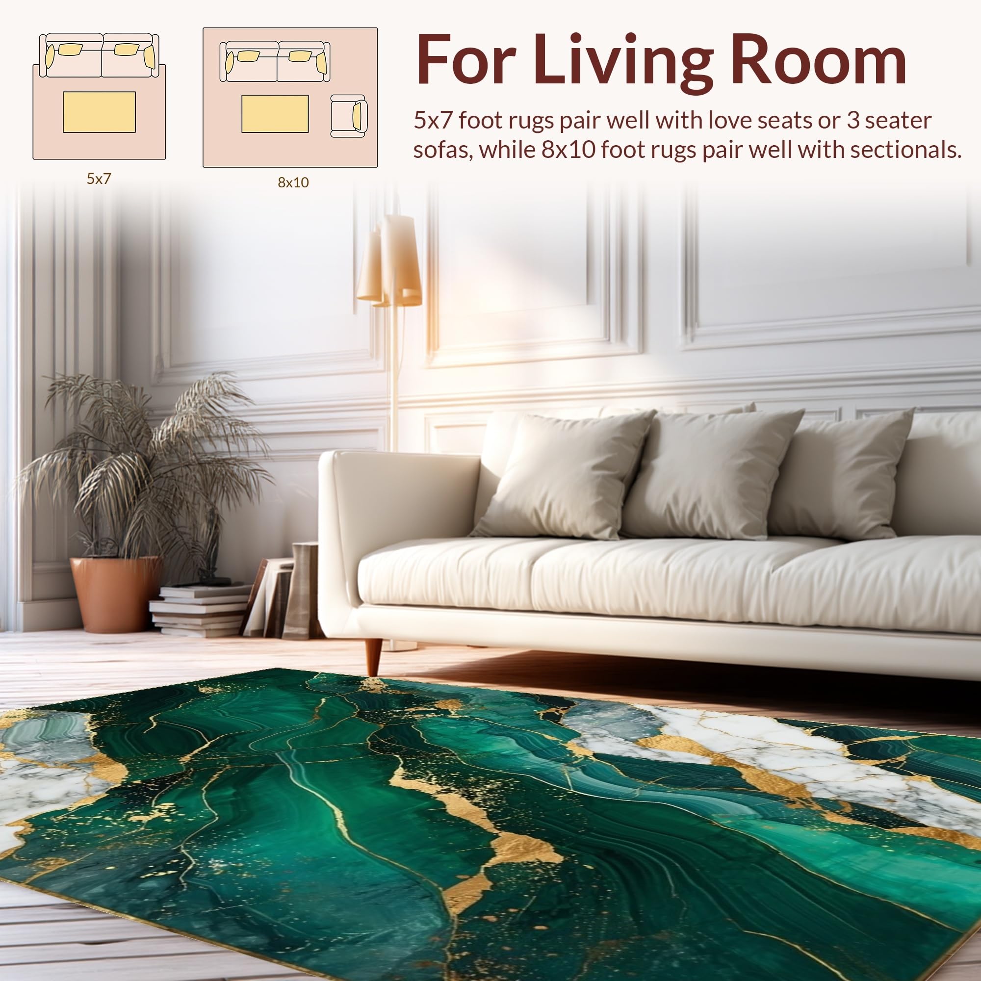 Ultra Soft Area Rug, Non Slip, Stain Resistant, Washable Area Rugs for Living Room, Bedroom, Emerald Abstract Artistry Motif(Green) Overview: