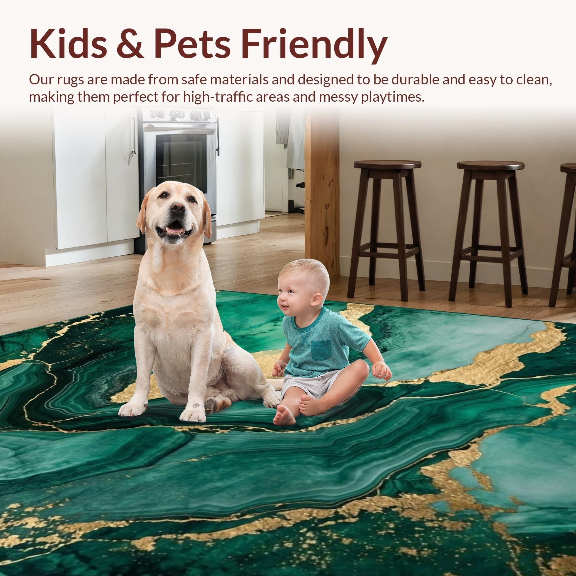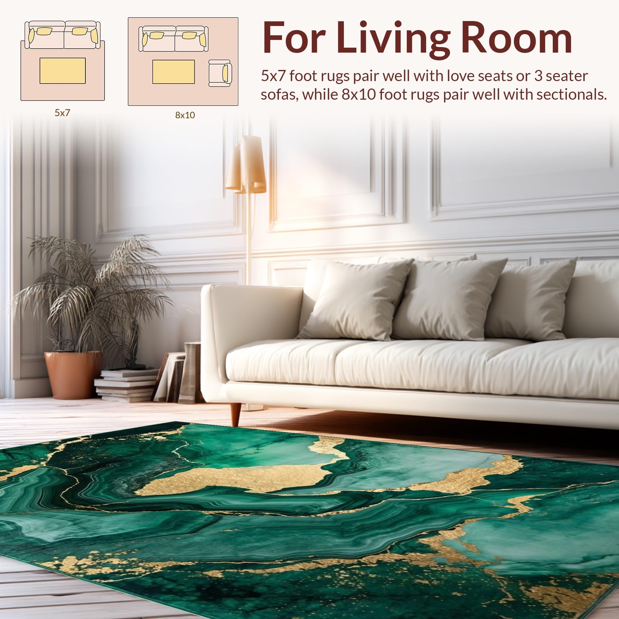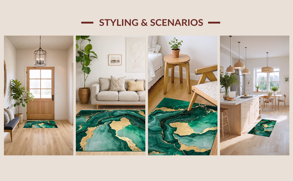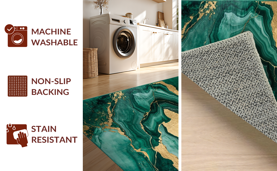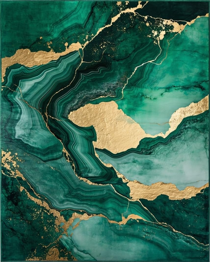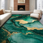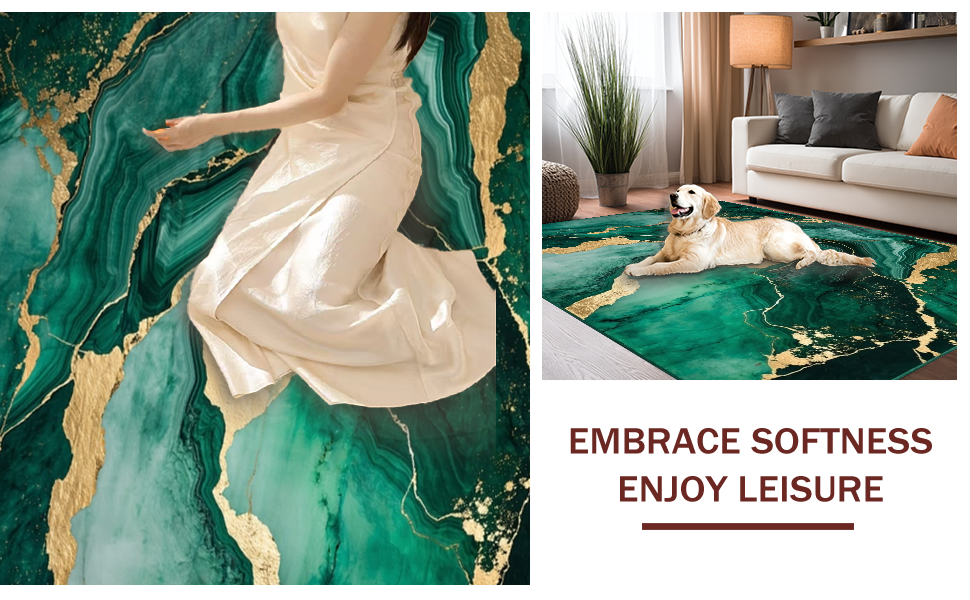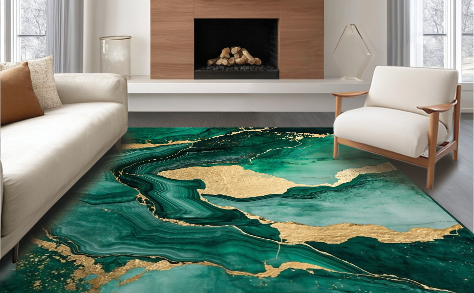 Ultra Soft Area Rug, Non Slip, Stain Resistant, Washable Area Rugs for Living Room, Bedroom, Emerald Gold Abstract Swirl Design(Green) Overview: