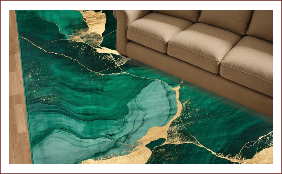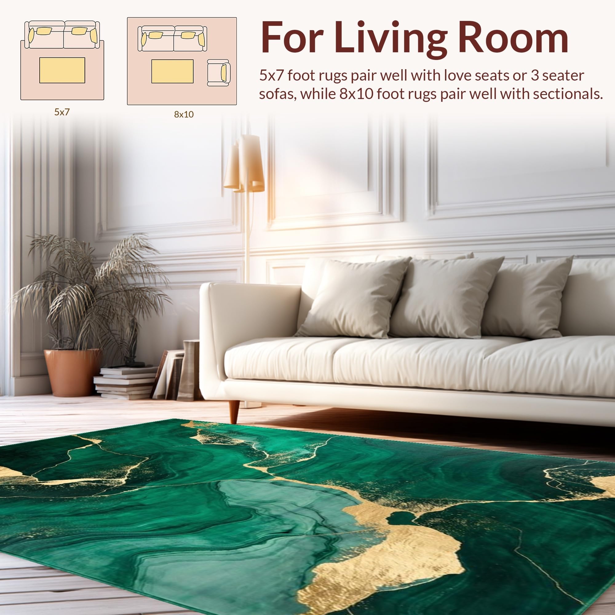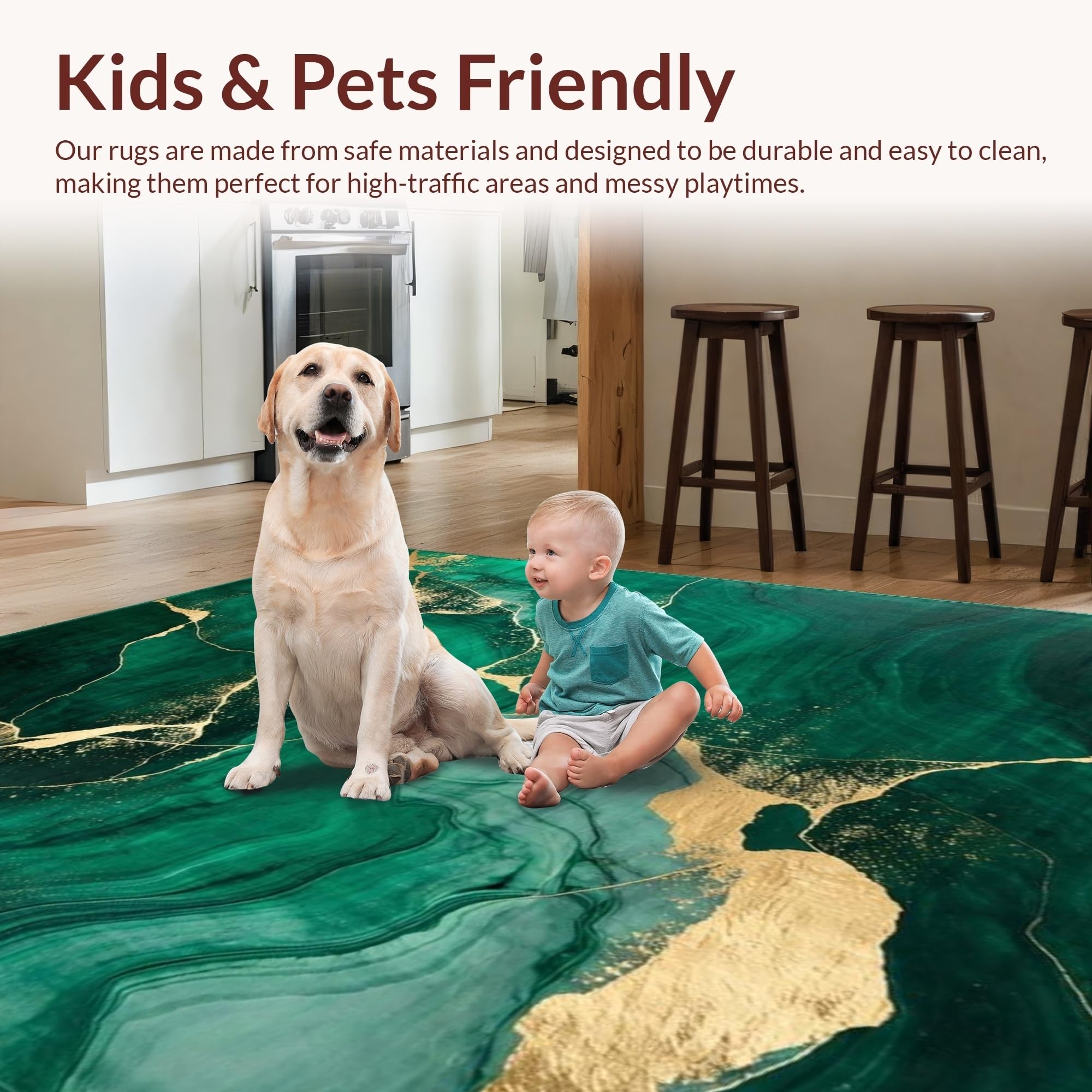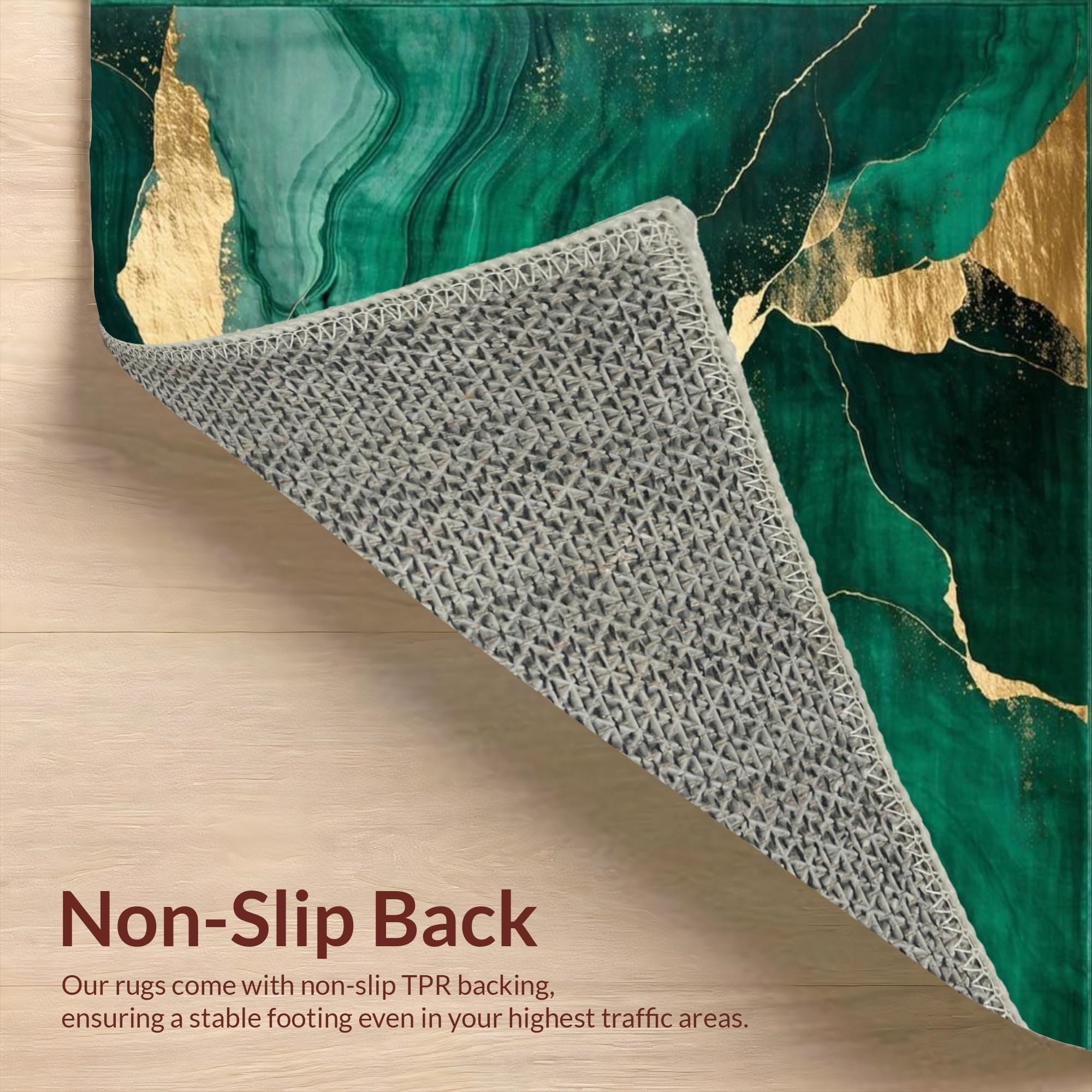 Ultra Soft Area Rug, Non Slip, Stain Resistant, Washable Area Rugs for Living Room, Bedroom, Emerald Green Abstract Elegance(Green) Overview: