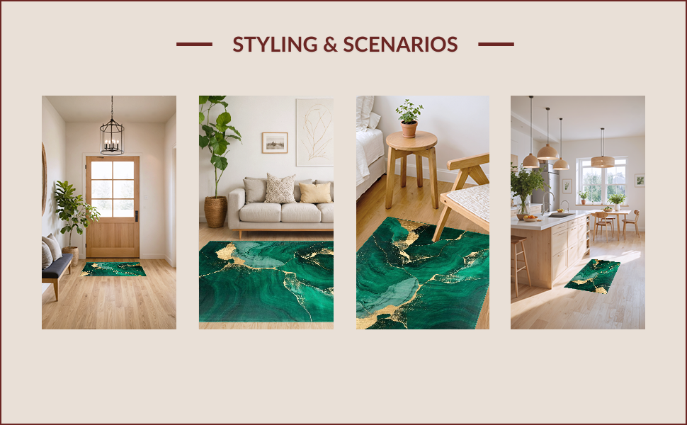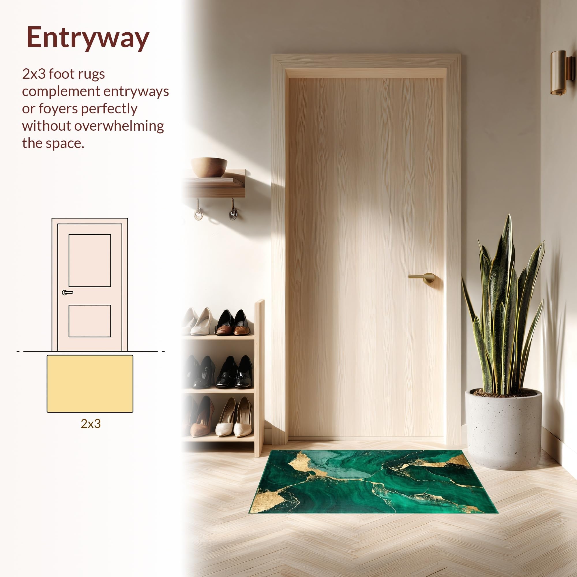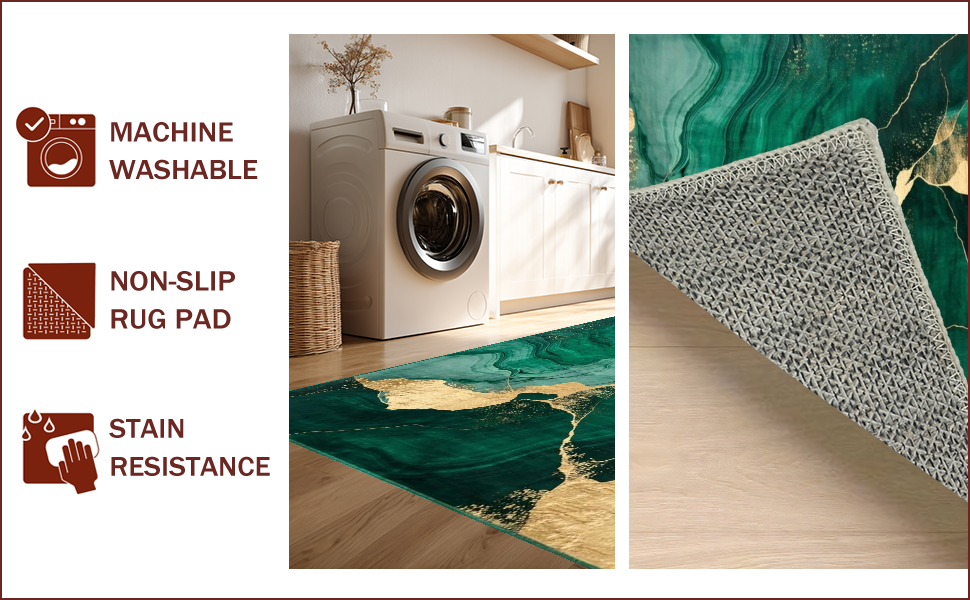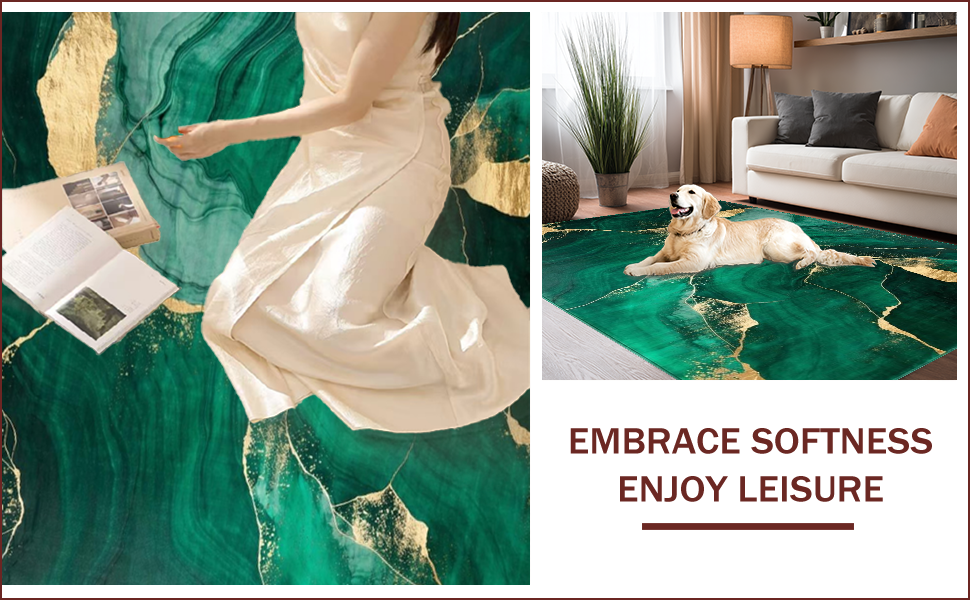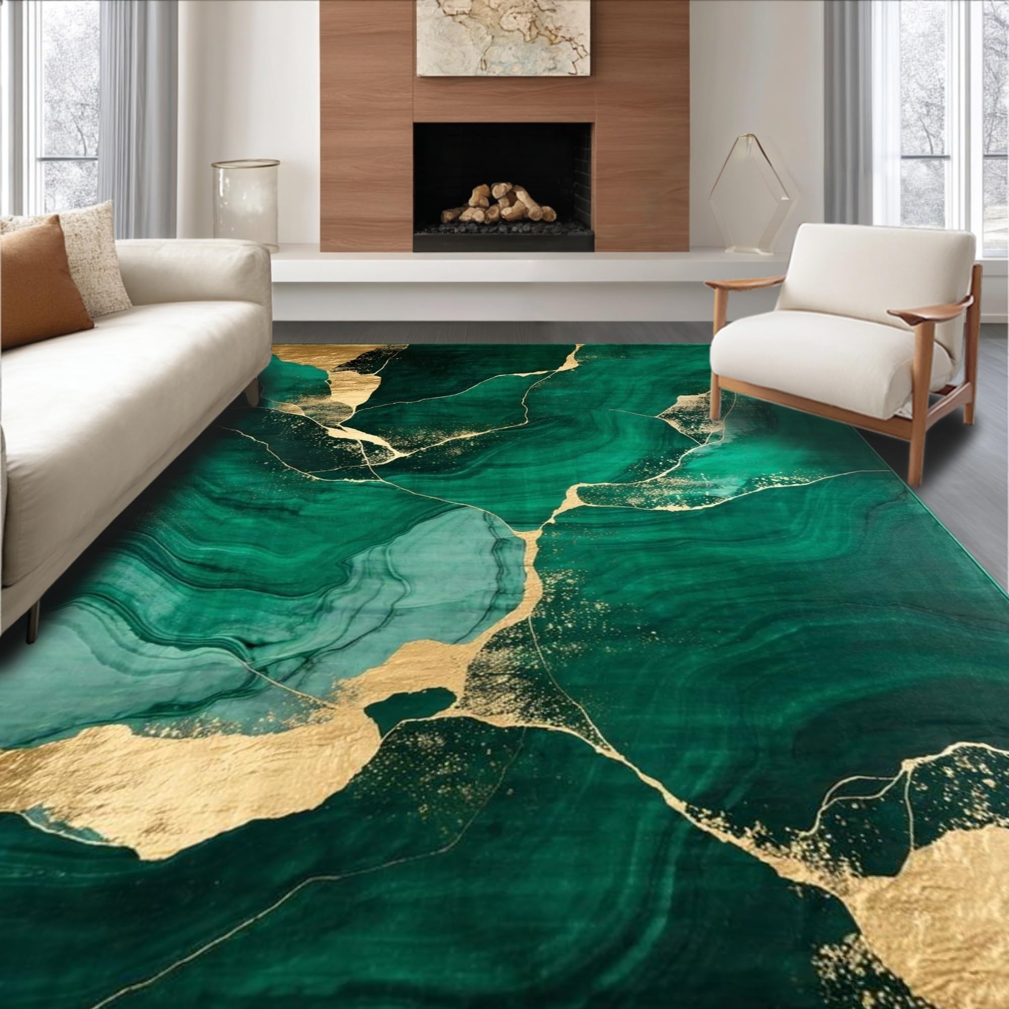 Ultra Soft Area Rug, Non Slip, Stain Resistant, Washable Area Rugs for Living Room, Bedroom, Emerald Green Abstract Elegance(Green) Overview: