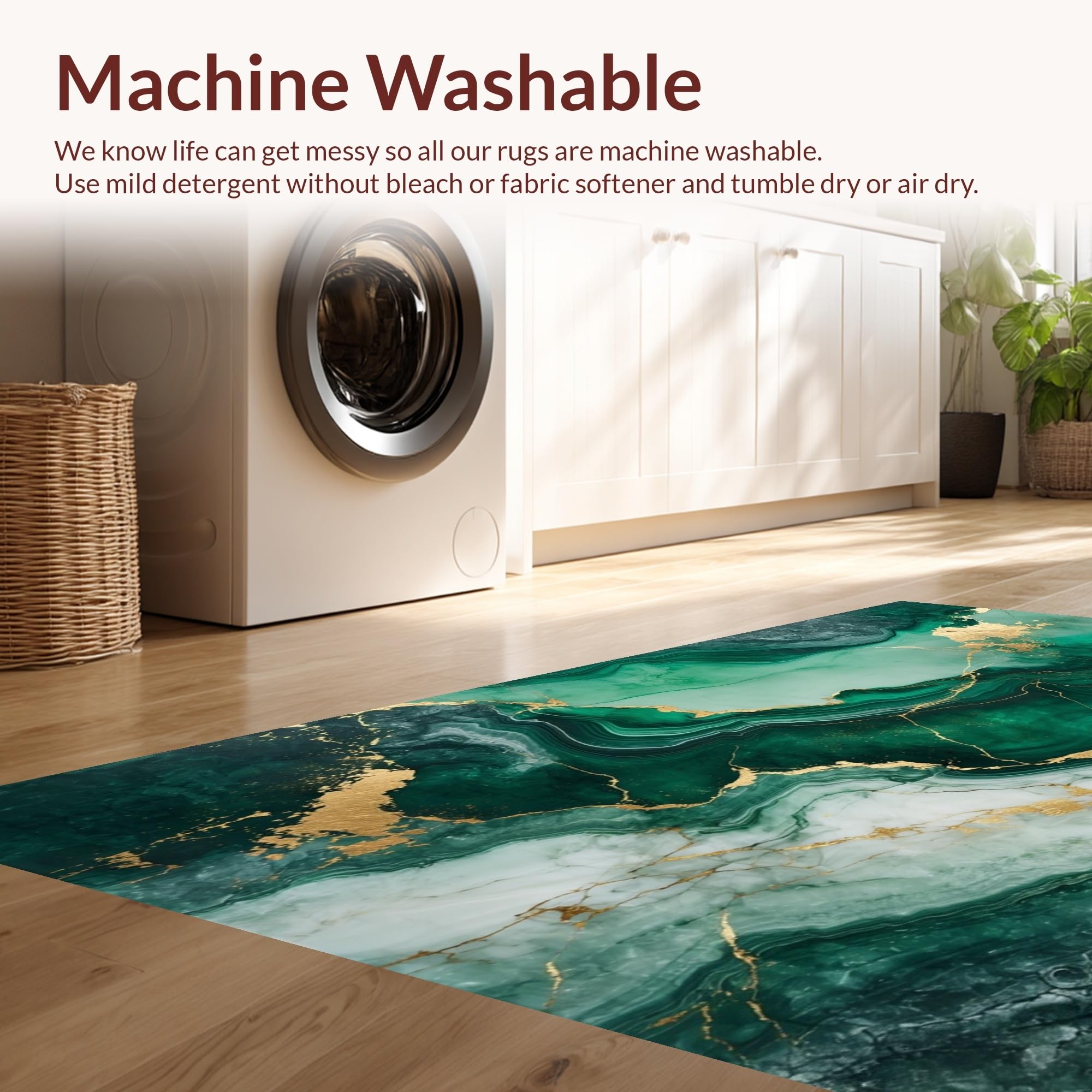 - Machine Washable: Our rugs can be easily thrown in the wash machine.