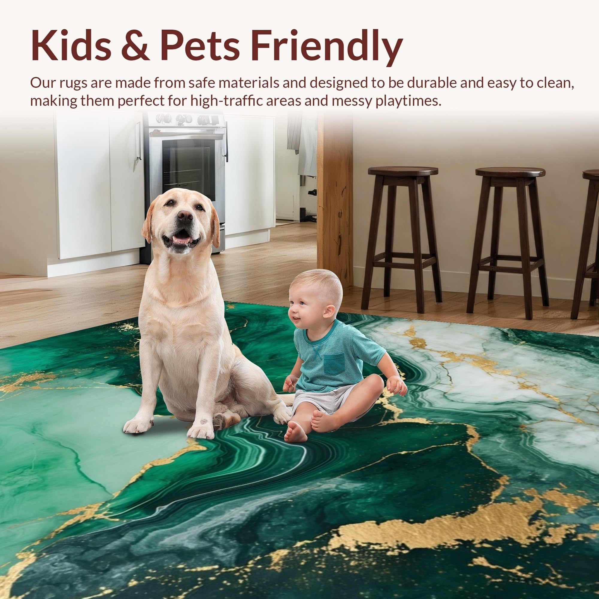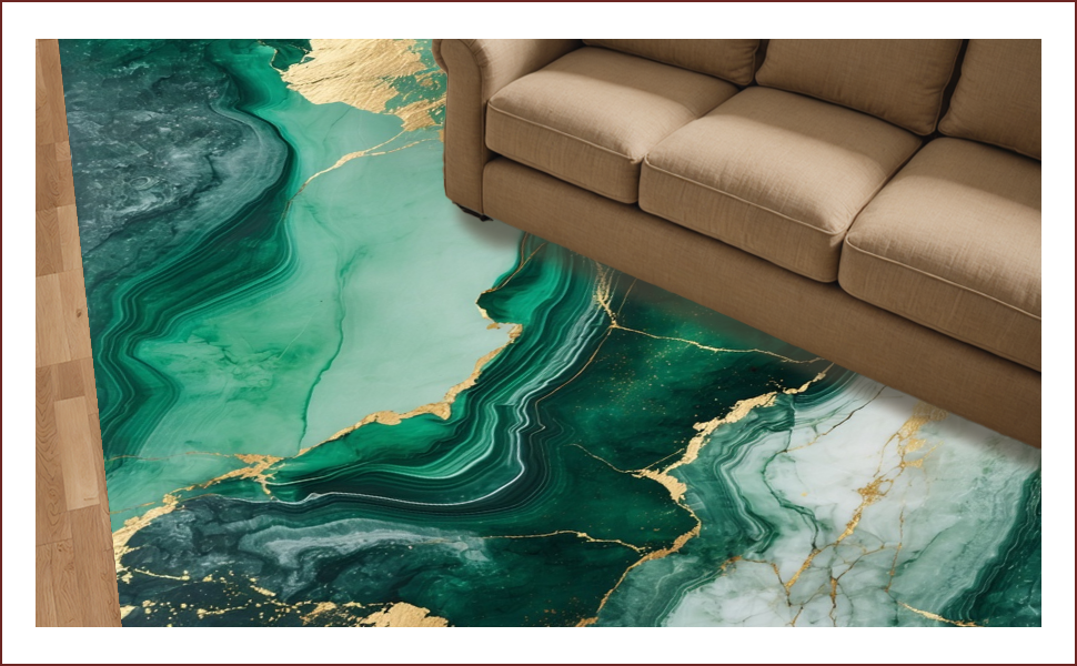 Ultra Soft Area Rug, Non Slip, Stain Resistant, Washable Area Rugs for Living Room, Bedroom, Emerald Grey Marble Abstract Elegance(Green) Overview: