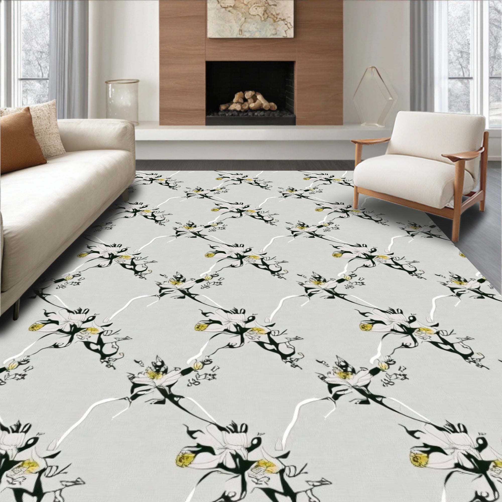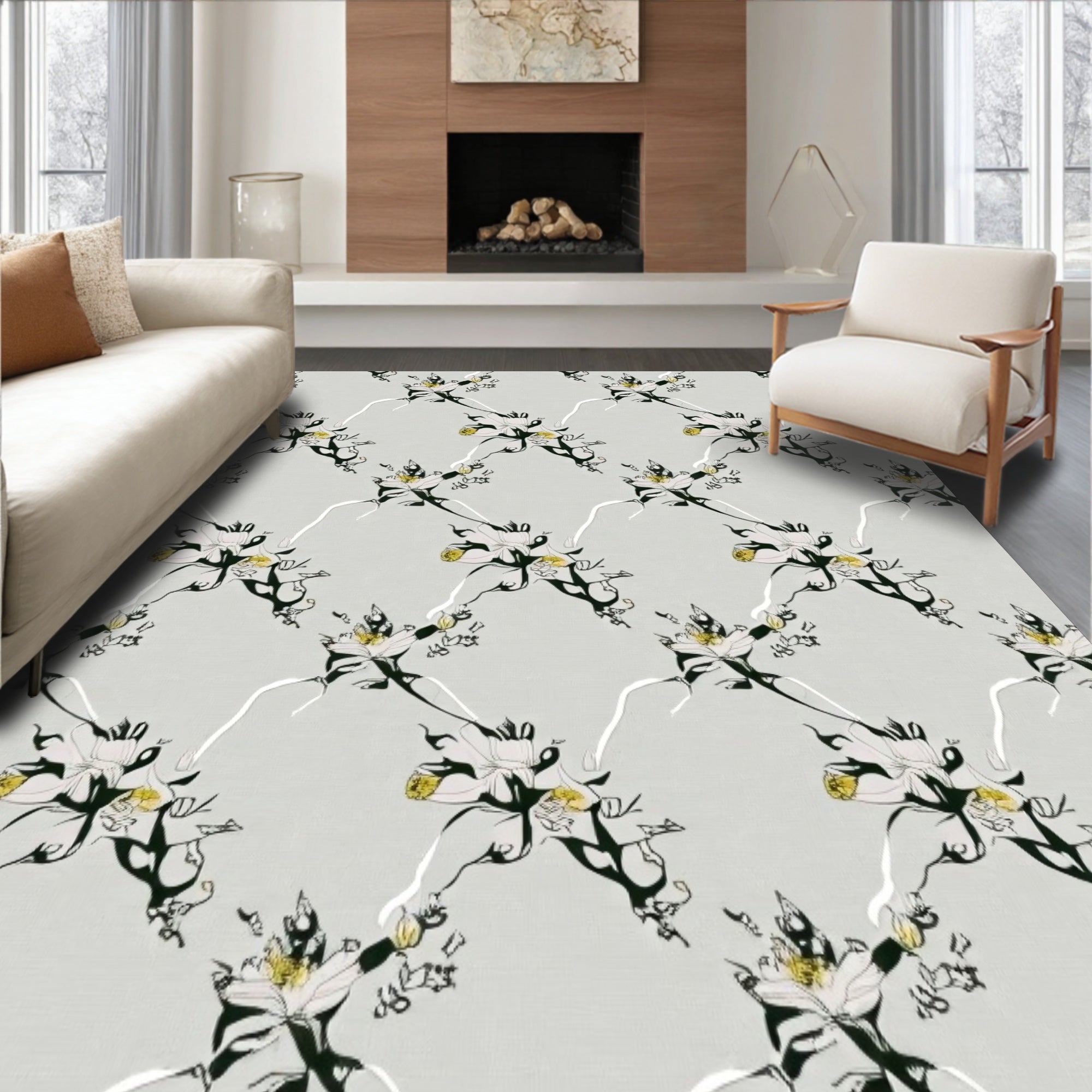 Ultra Soft Area Rug, Non Slip, Stain Resistant, Washable Area Rugs for Living Room, Bedroom, Enchanted Blossom Lattice Sophisticated Contemporary(Gray) Overview: