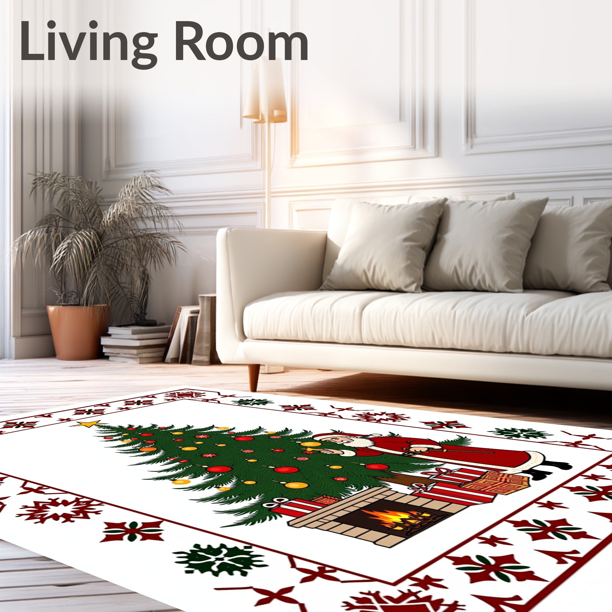 Ultra Soft Area Rug, Non Slip, Stain Resistant, Washable Area Rugs for Living Room, Bedroom, Enchanted Evergreen Yuletide Wonderland Hearth Family Gathering(Green) Overview: