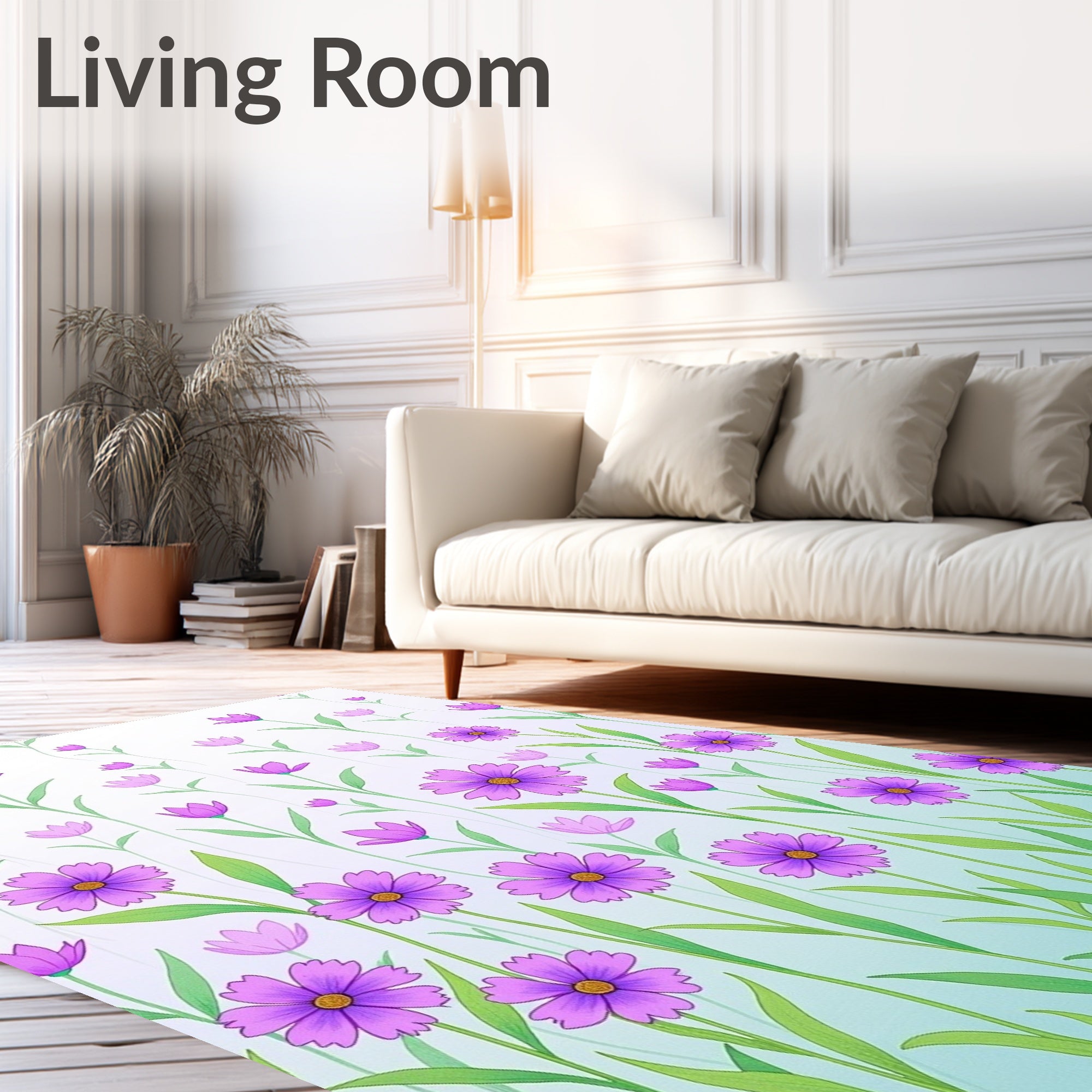Flatwoven High Traffic Area Rug, Enchanted Floral Meadow Dreamy Whimsical Wonderland Fantasy, Non Slip, Stain Resistant, Washable Area Rugs for Living Room, Bedroom (Purple) Overview: