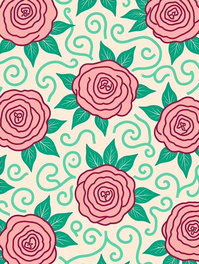 Enchanted Flower Field with Dancing Rose and Hydrangea Motifs(Pink)