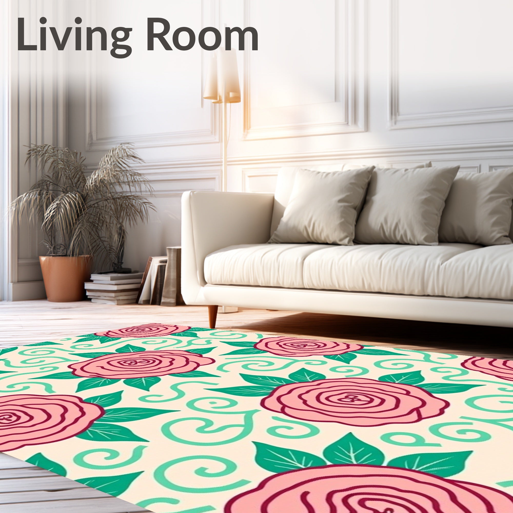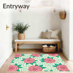 Ultra Soft Area Rug, Non Slip, Stain Resistant, Washable Area Rugs for Living Room, Bedroom, Enchanted Flower Field with Dancing Rose and Hydrangea Motifs(Pink) Overview: