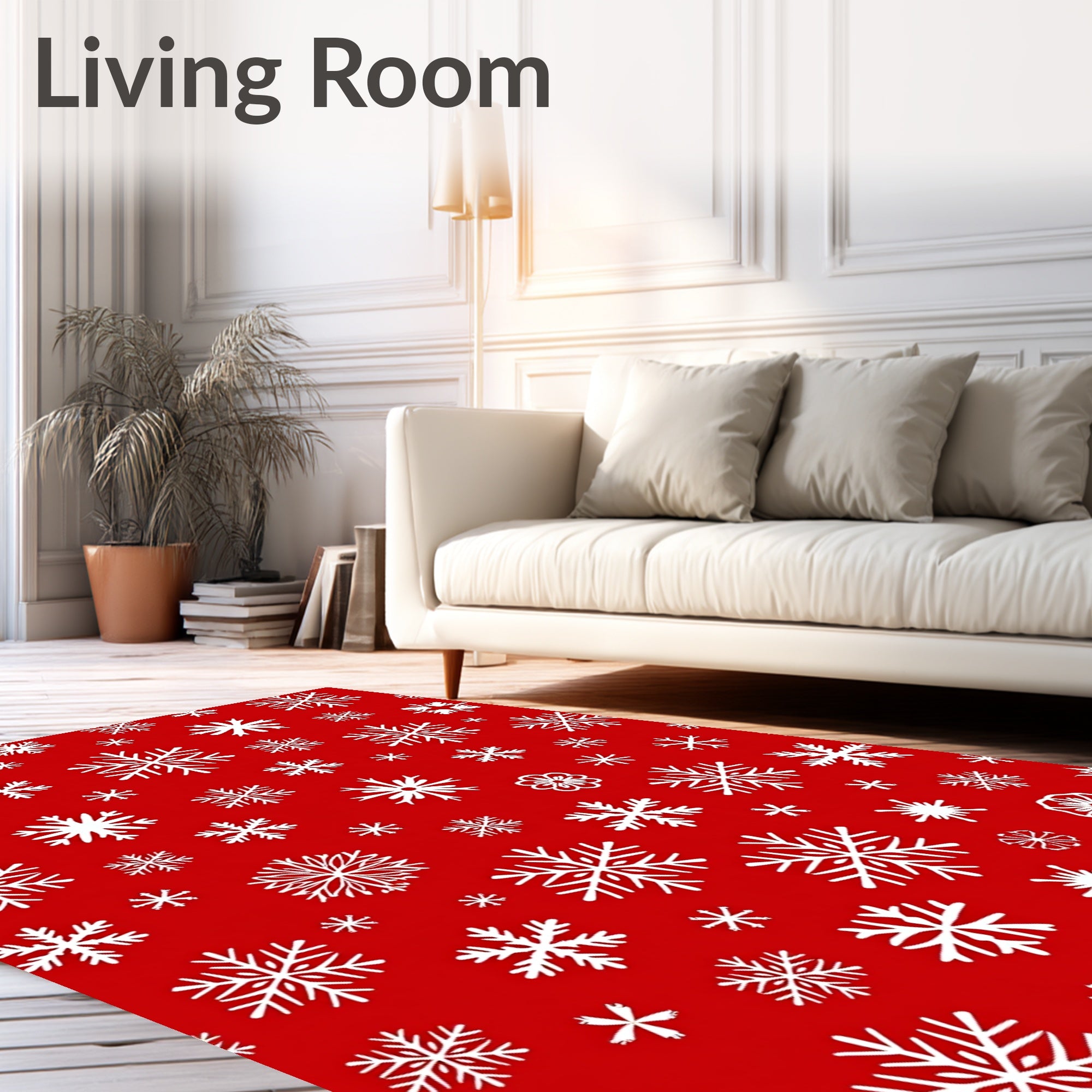 Ultra Soft Area Rug, Non Slip, Stain Resistant, Washable Area Rugs for Living Room, Bedroom, Enchanted Flurry Wintry Seasonal Accent(Red) Overview: