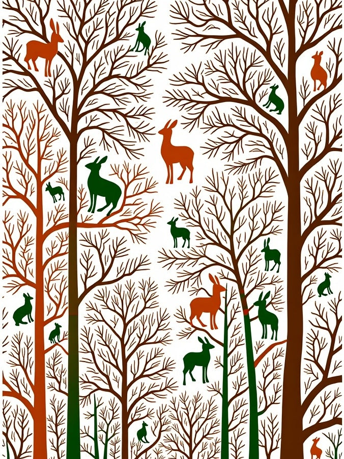 Enchanted Forest Canopy with Wildlife Silhouettes(Brown)