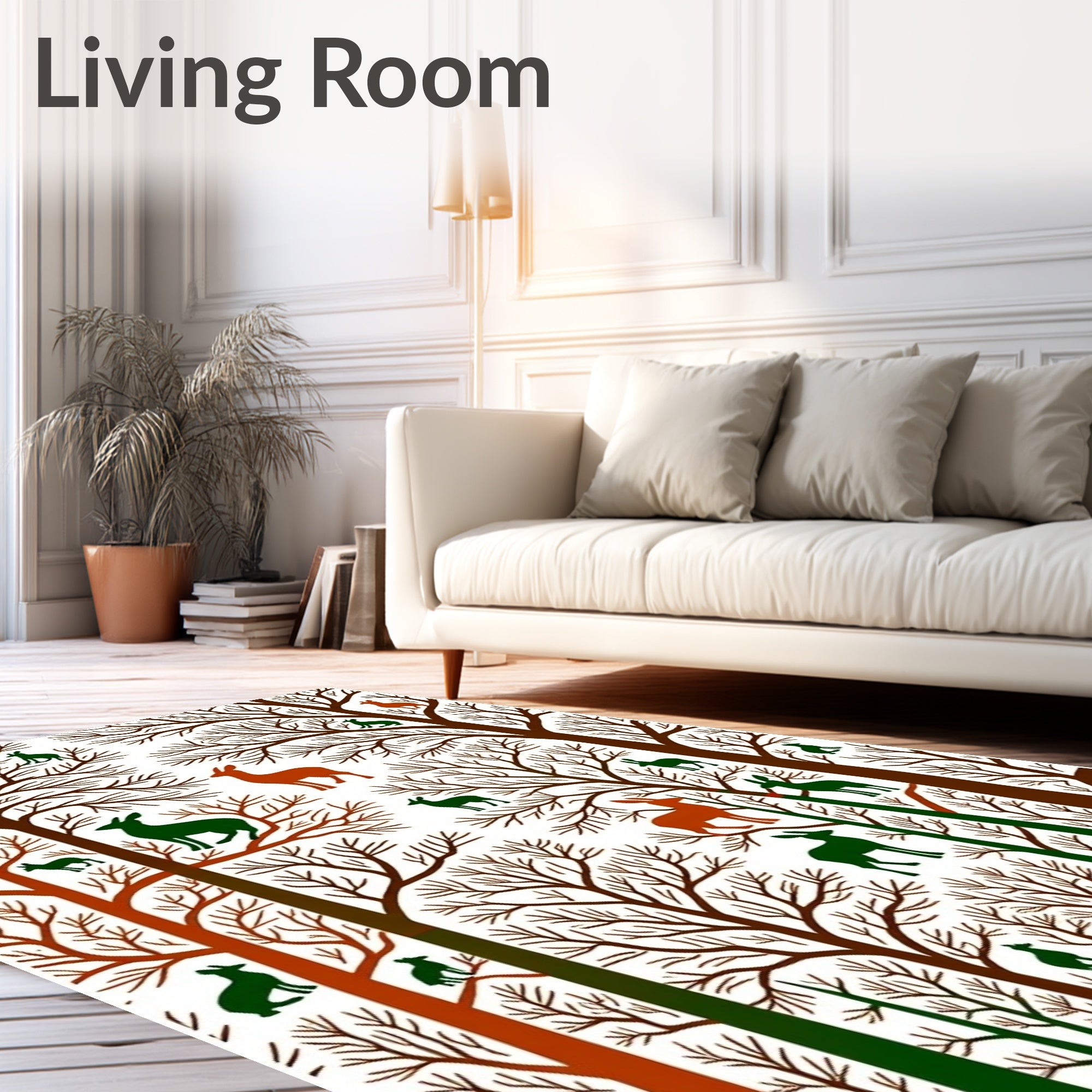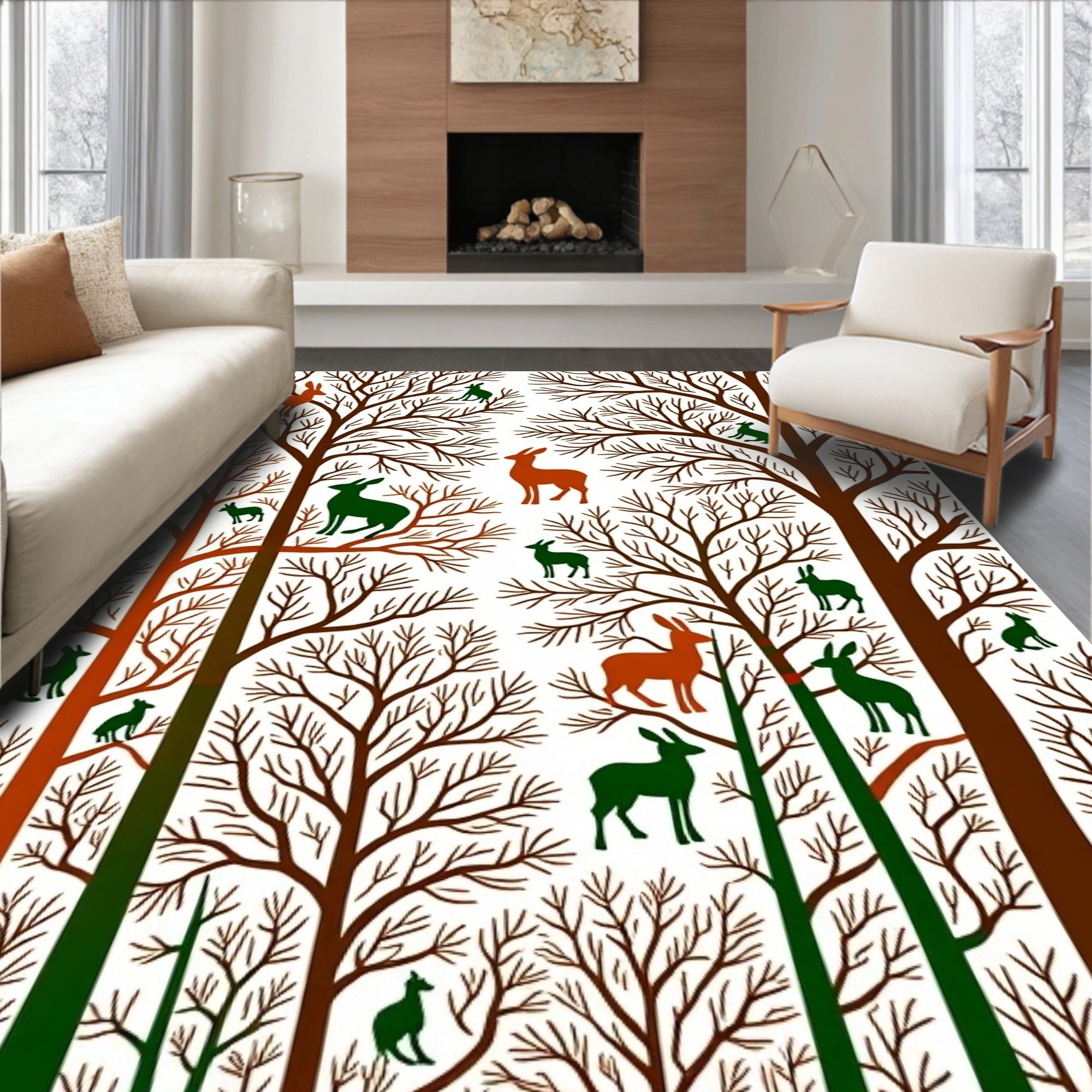 Flatwoven High Traffic Area Rug, Enchanted Forest Canopy with Wildlife Silhouettes, Non Slip, Stain Resistant, Washable Area Rugs for Living Room, Bedroom (Brown) Overview: